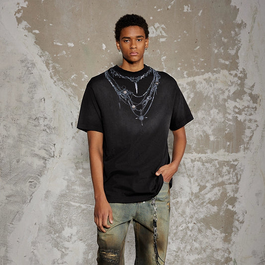 PU Leather Armor Mix Patch Damage Long Sleeve T-Shirt WN22643