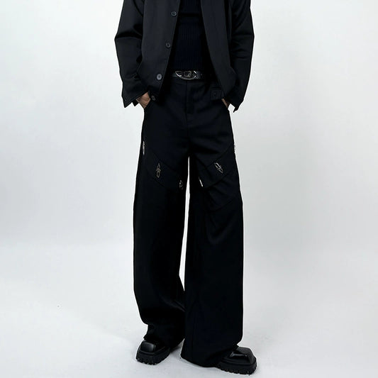 Asymmetric Mix Patch Wide Leg Trousers WN22339