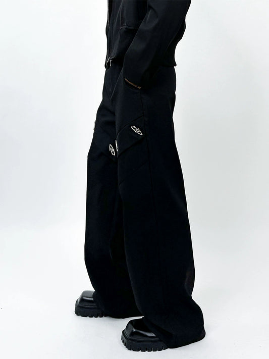 Shoulder-Pad Metal Brooch Tailored Jacket & Trousers Setup WN21796