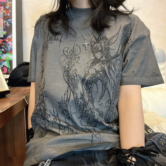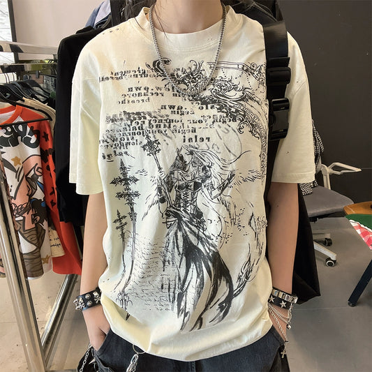 Ilustration Print Damage Oversize Short Sleeve T-Shirt WN16737