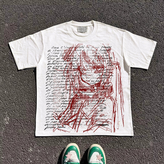 Sketch Design Oversize Short Sleeve T-Shirt WN16722