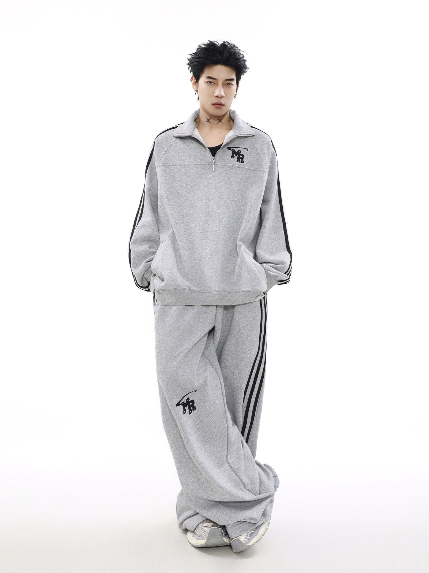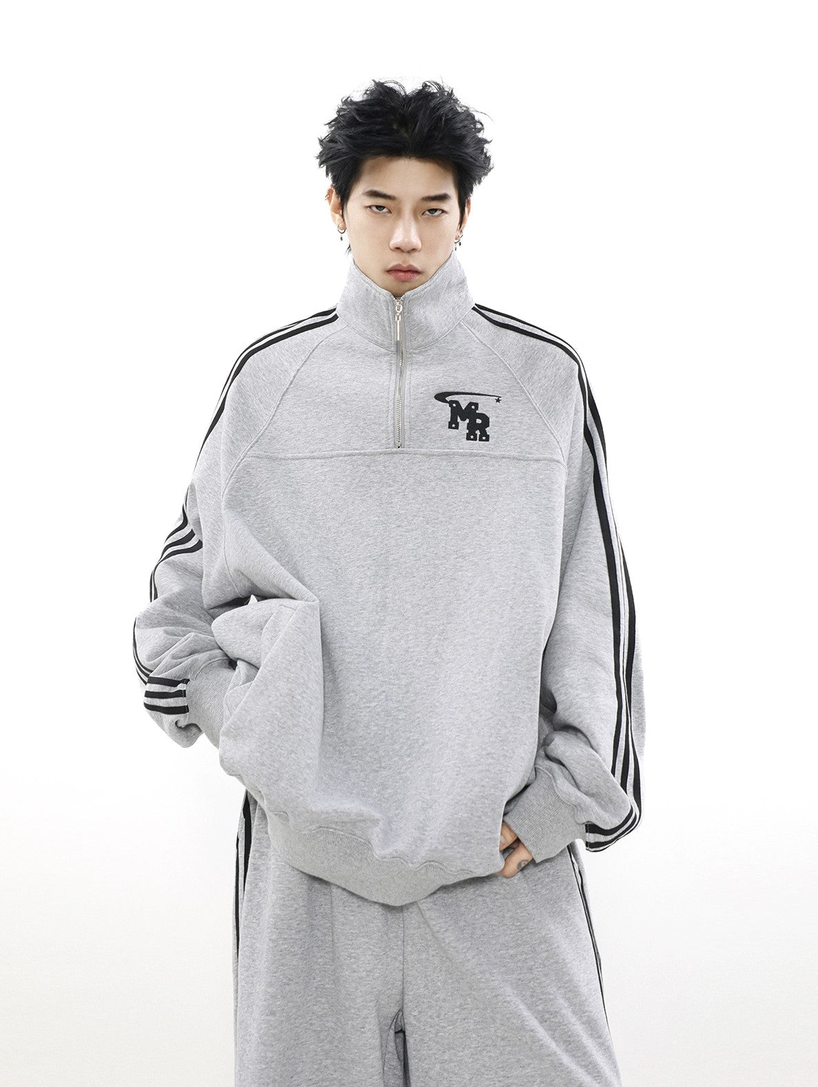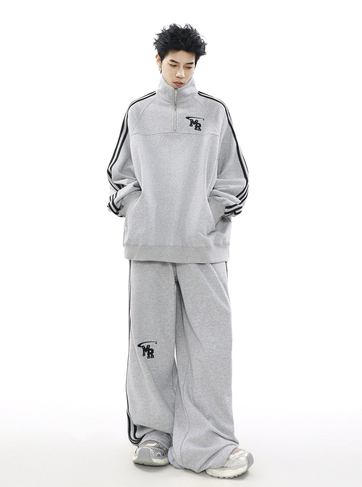 Oversize Zipper Raglan-sleeve Sweatshirt & Wide-leg Sweatpants Setup WN3066