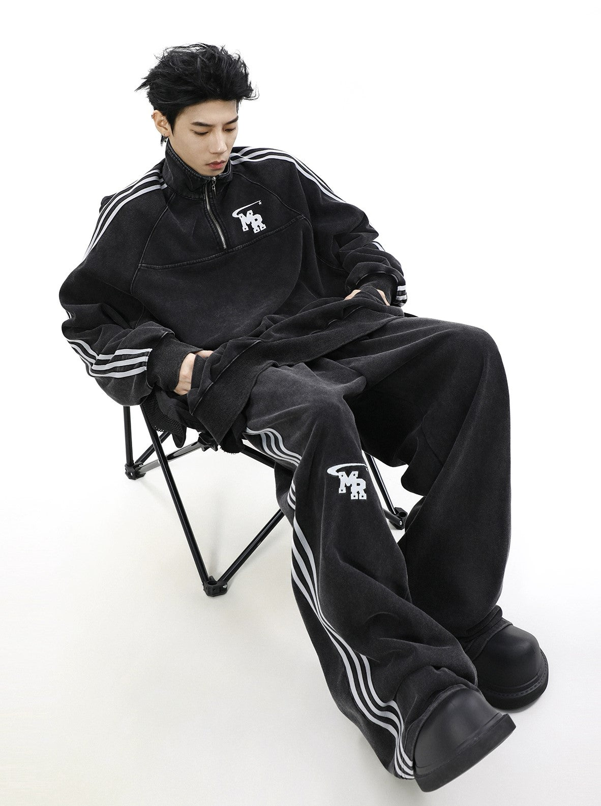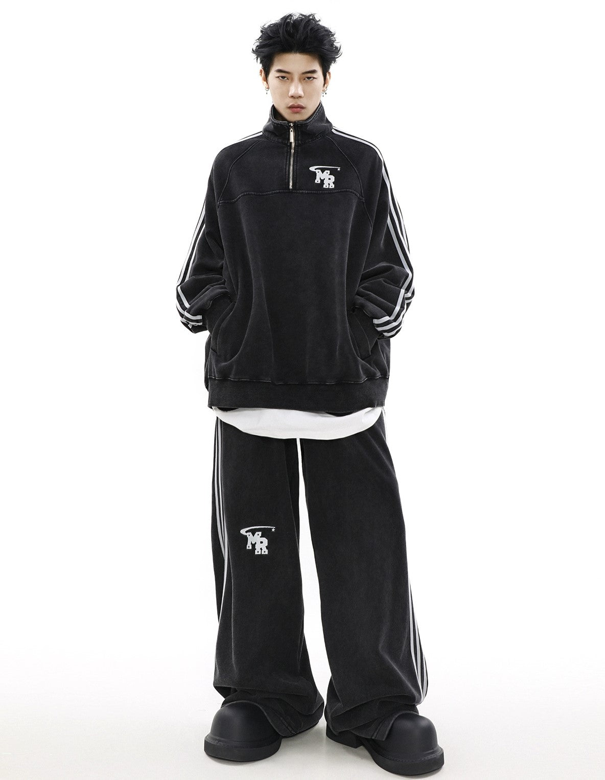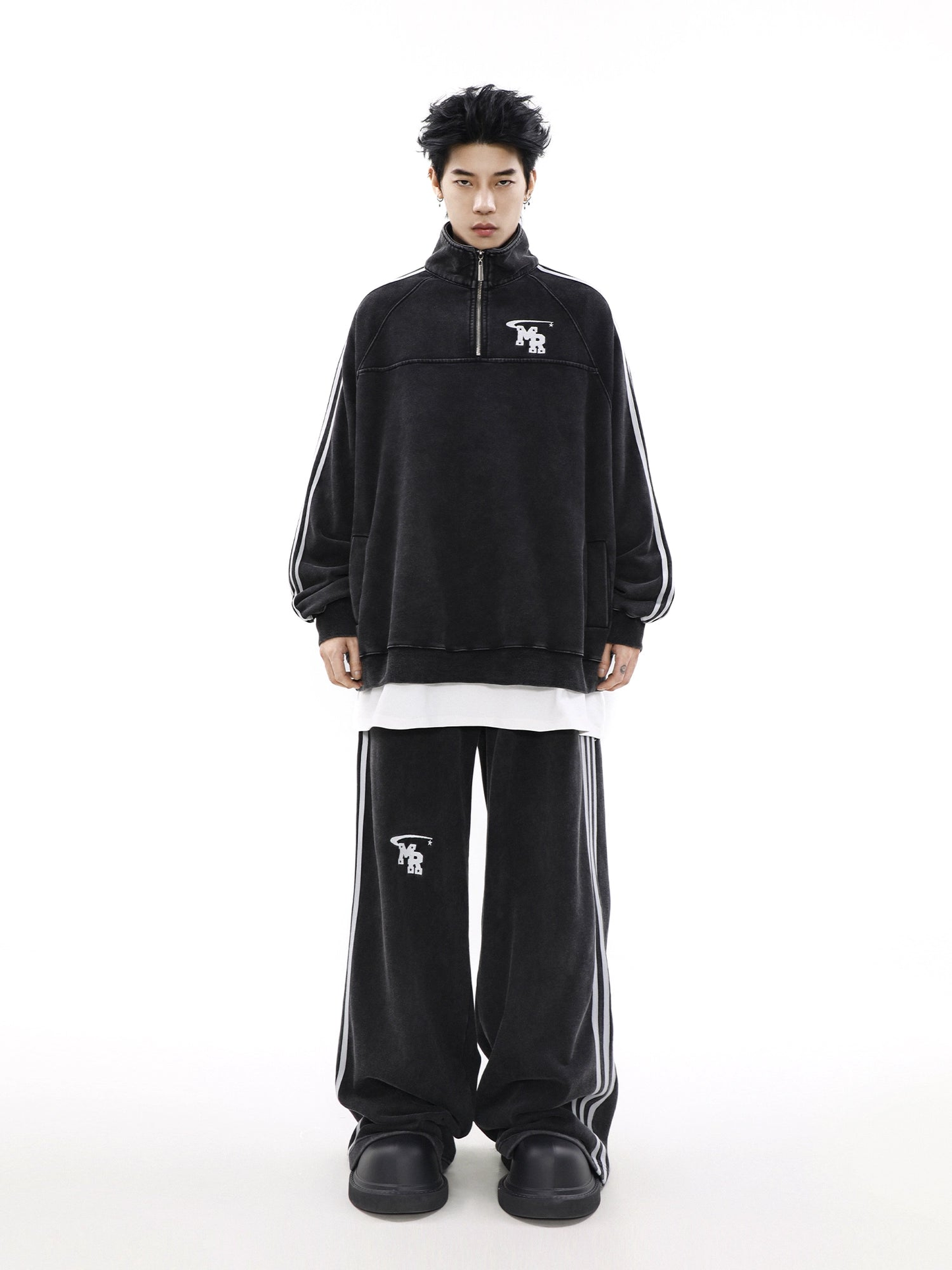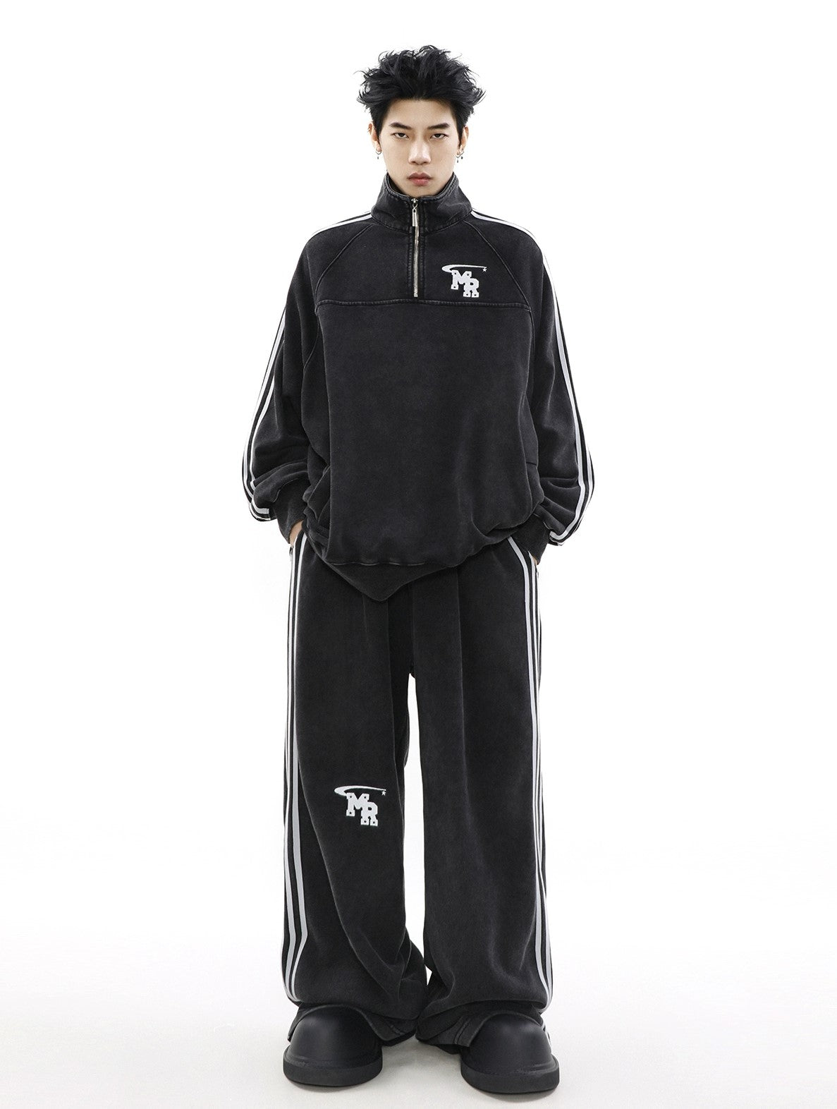 Oversize Zipper Raglan-sleeve Sweatshirt & Wide-leg Sweatpants Setup WN3066