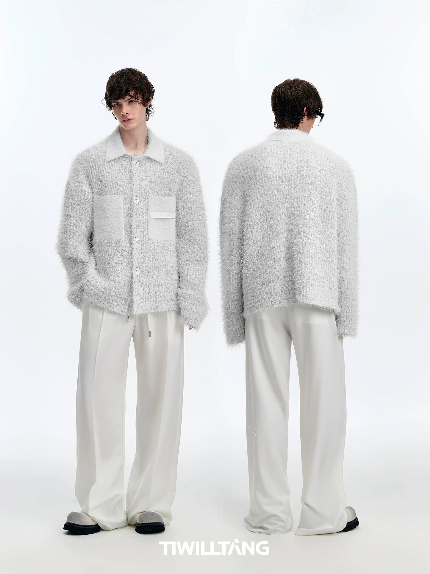 Ceramic Button Thick Polo Collar Knit Cardigan WN10693