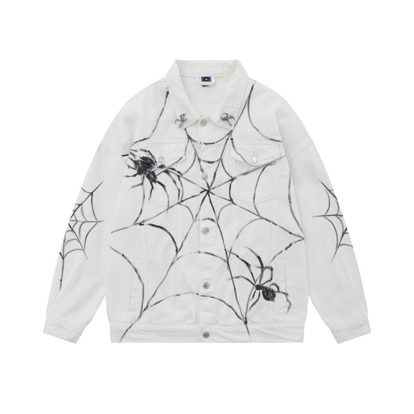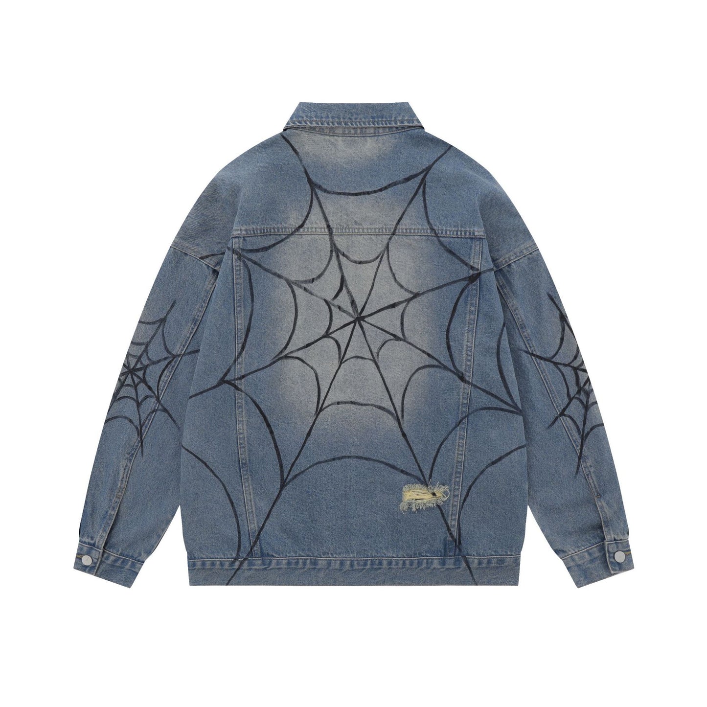 Spiderweb Graffiti Oversize Denim Jacket WN11136