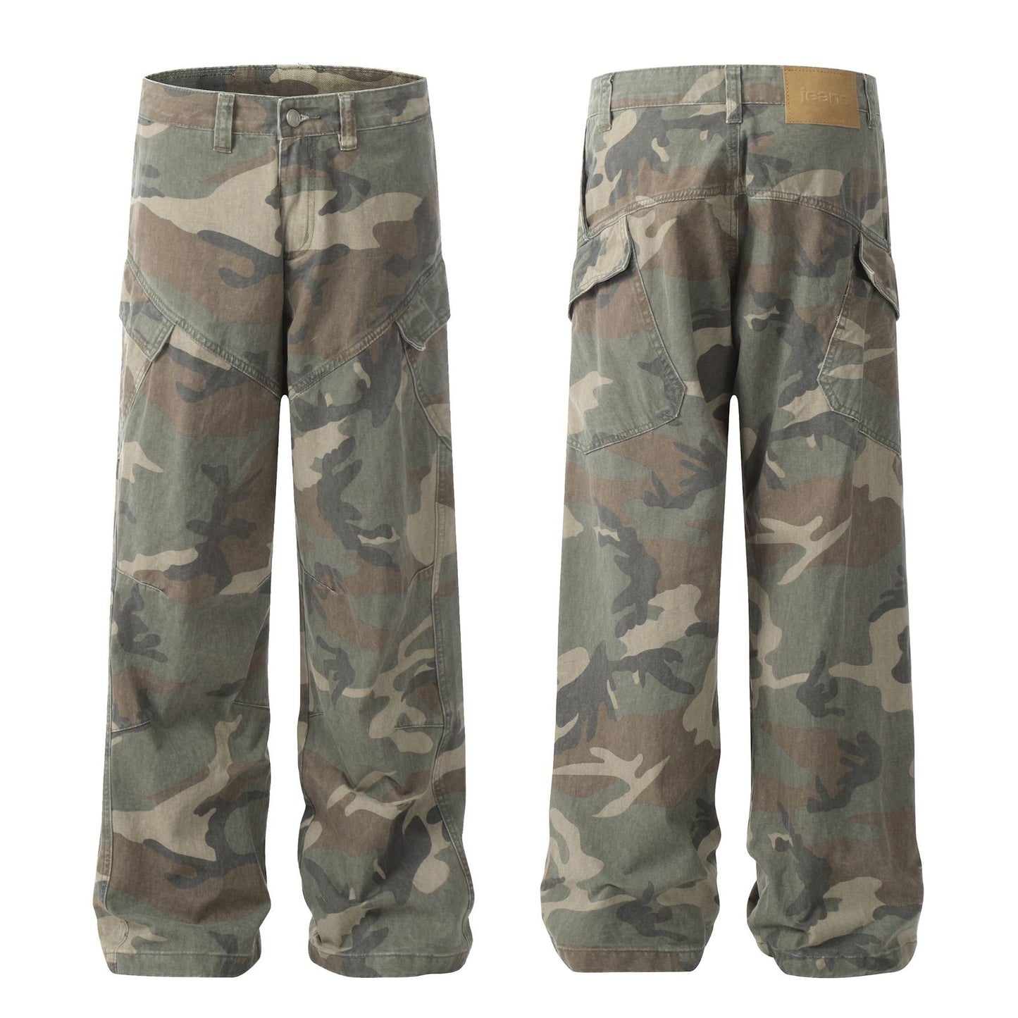 Camouflage Washed Wide-Leg Cargo Pants WN11353