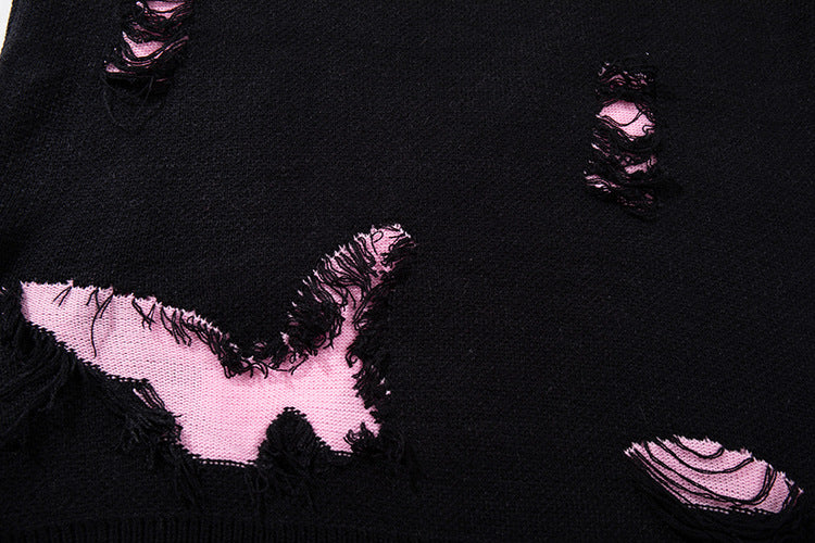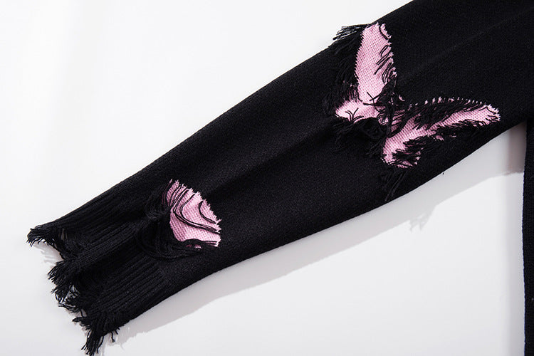 Asymmetric Butterfly Jacquard Chain Detail Knit Sweater WN11513