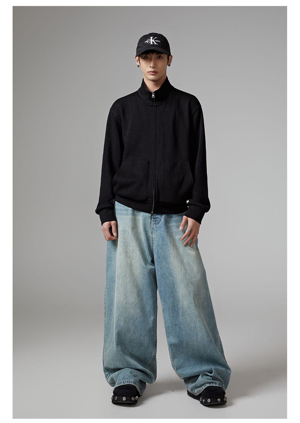 Solid Stand-Neck Oversize Knit Cardigan WN13320