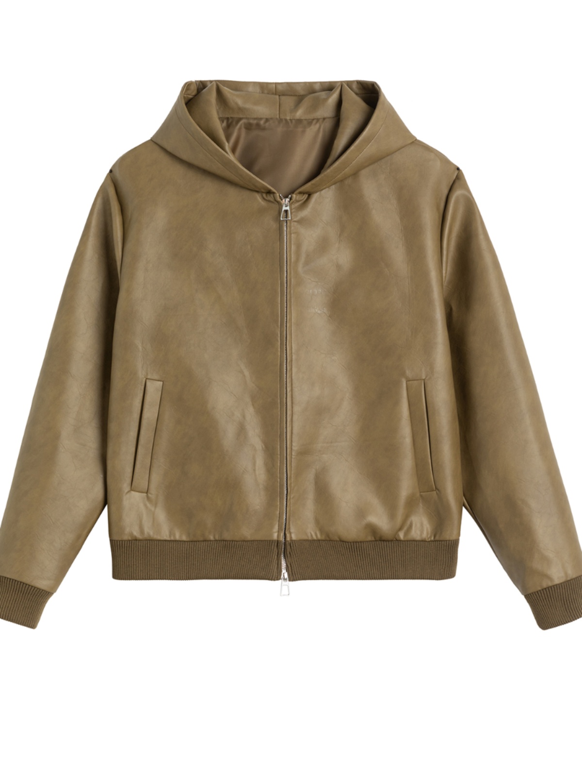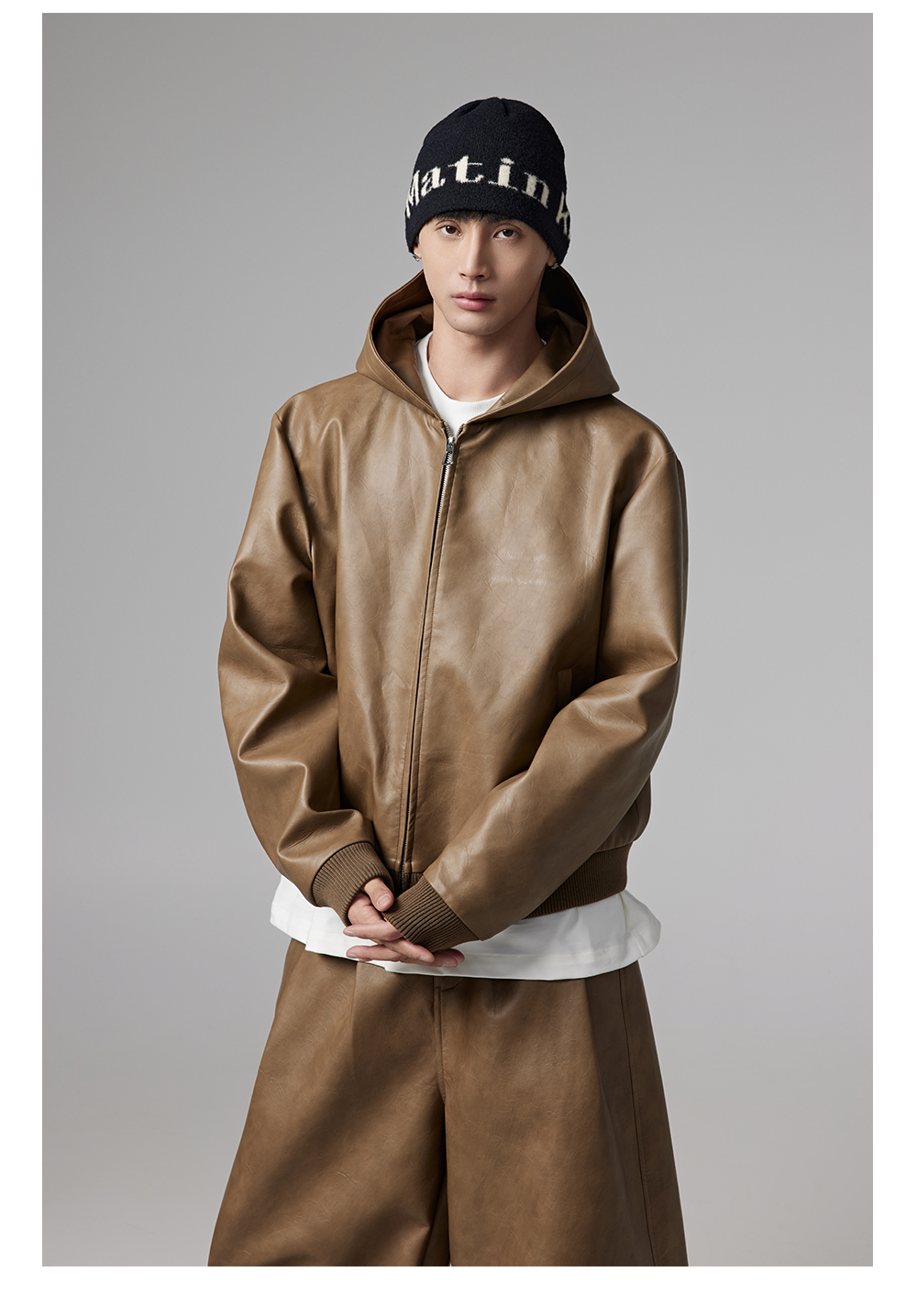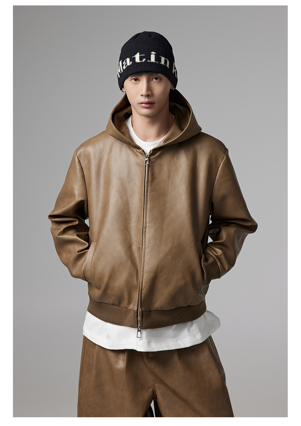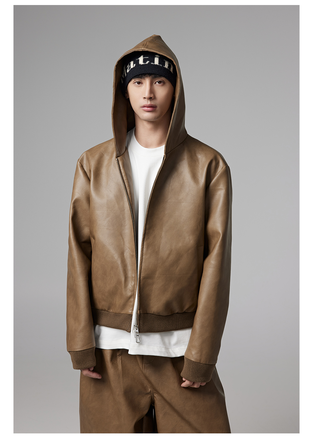Short PU Leather Hooded Jacket & Wide-Leg PU Leather Pants Setup WN13341