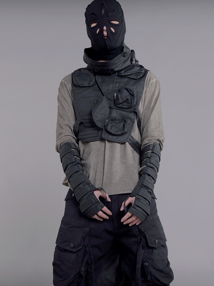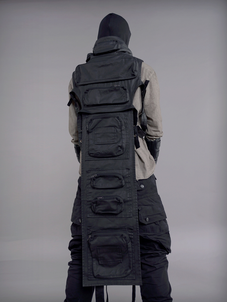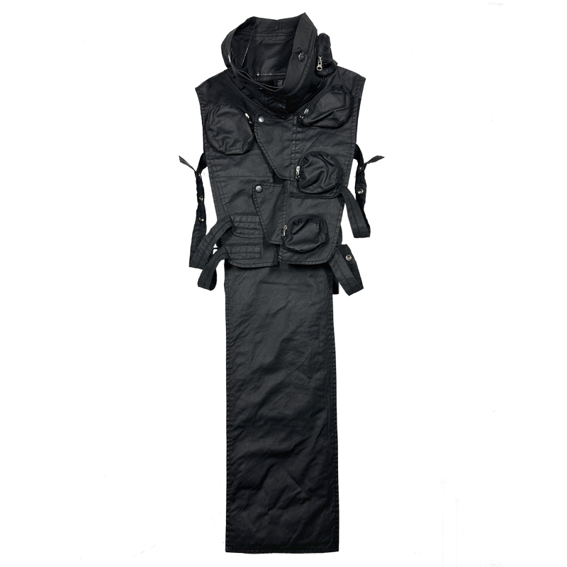 Asymmetric Utility 3D-Pocket Waxed Layered Vest WN13815