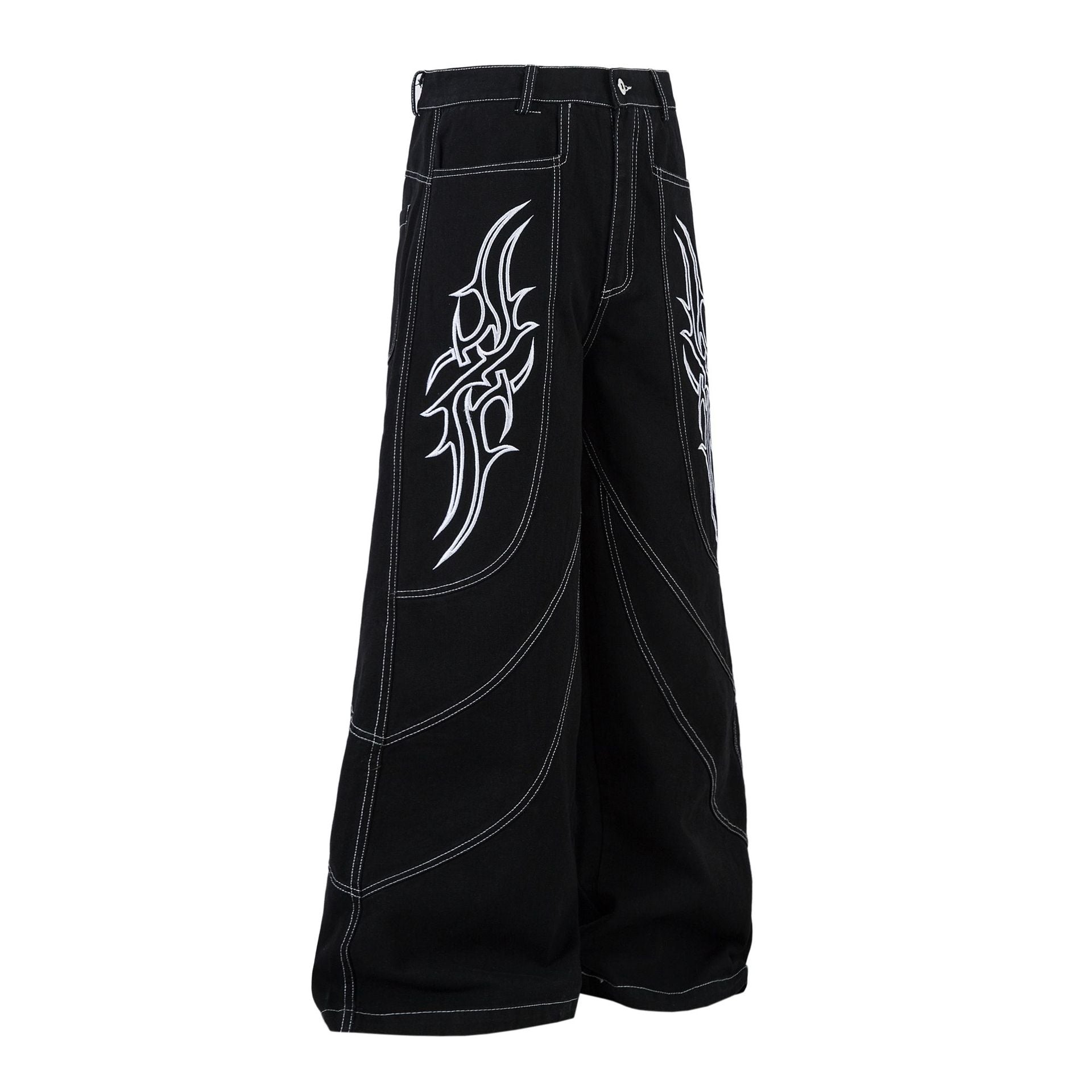Embroidery Wide Leg Denim Jeans WN14131