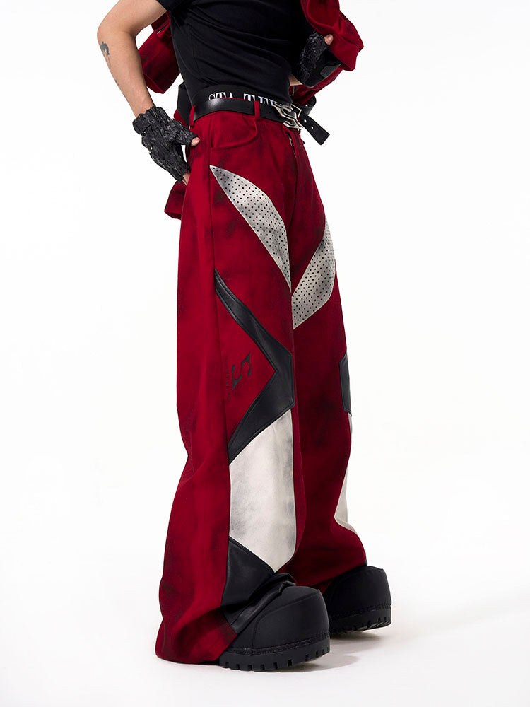 PU Leather Mix Denim Short Jacket & PU Leather Mix Denim Jeans Setup WN14826