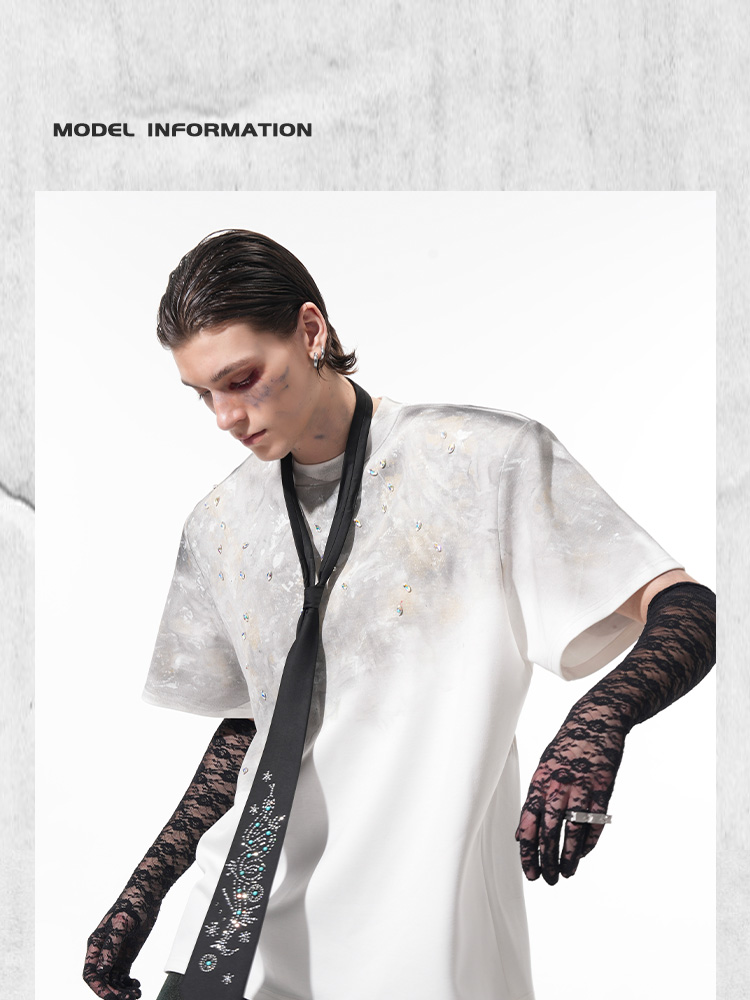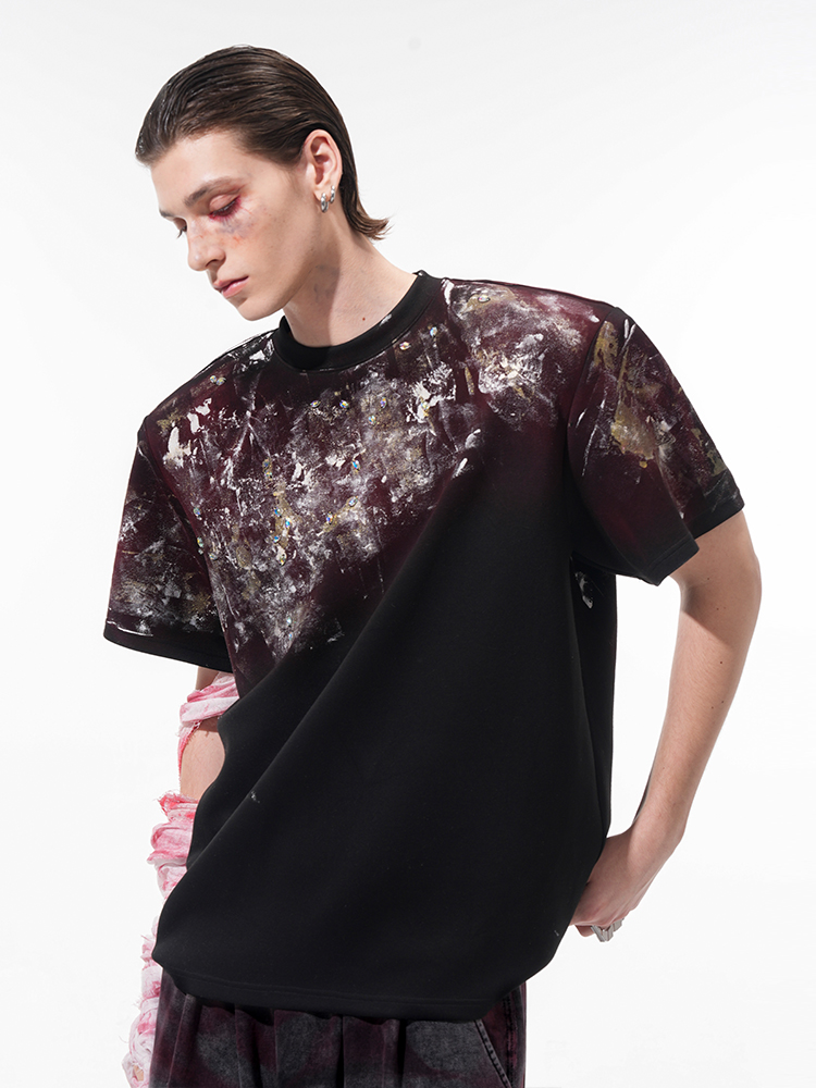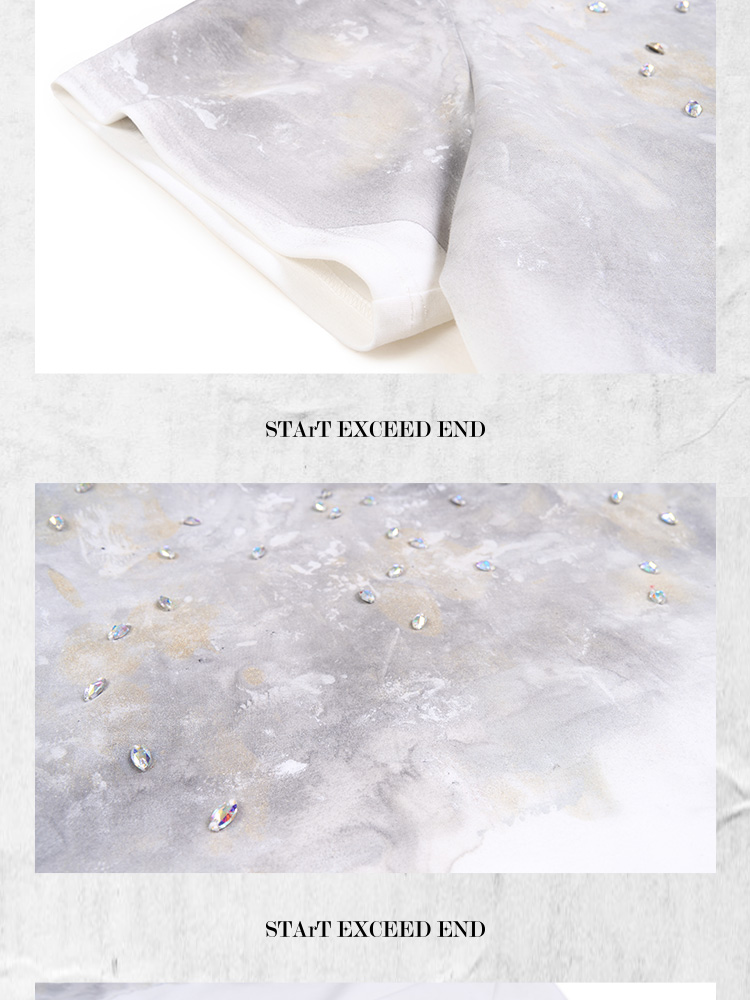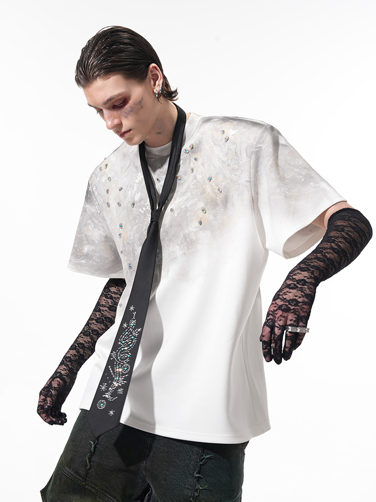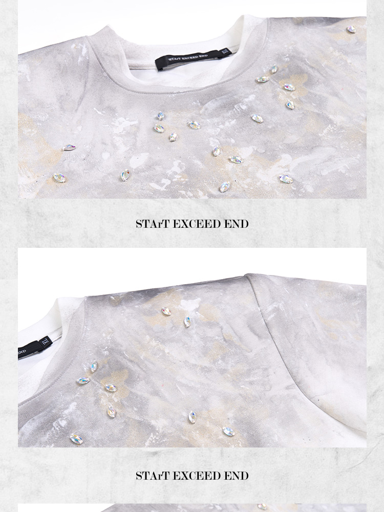 Handmade Rhinestone Paint Short Sleeve T-Shirt WN14886