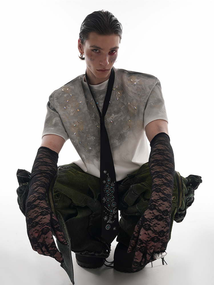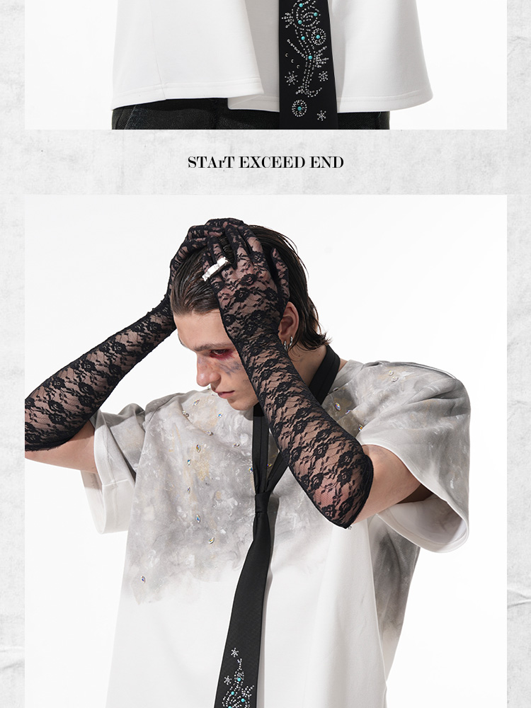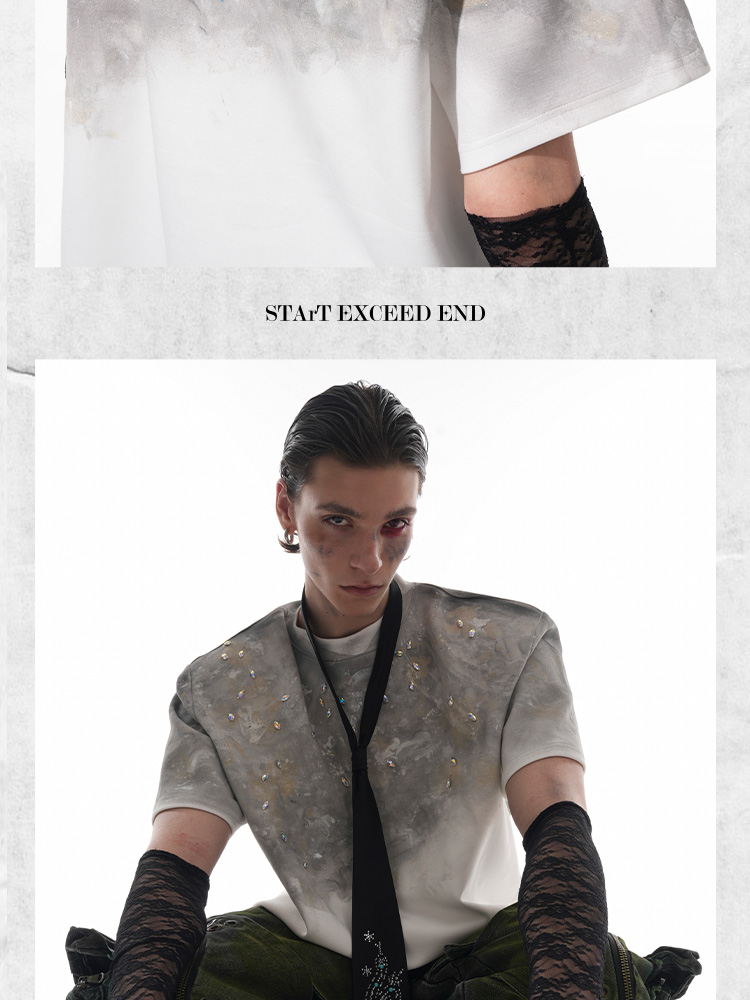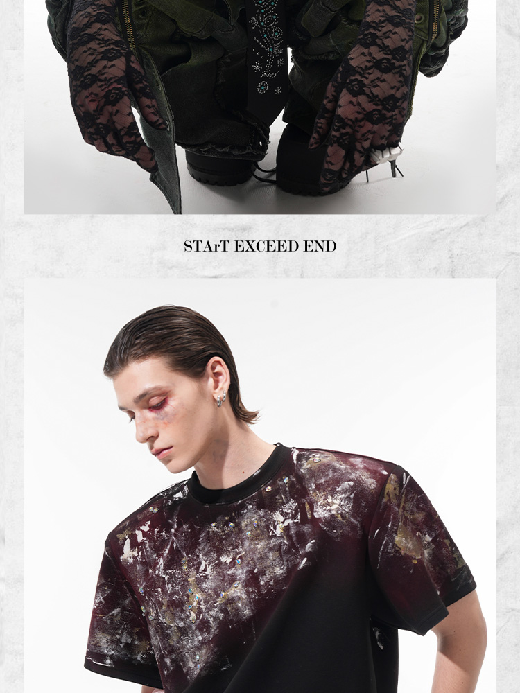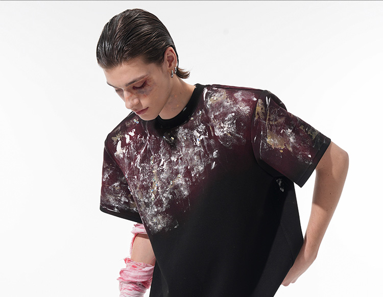 Handmade Rhinestone Paint Short Sleeve T-Shirt WN14886