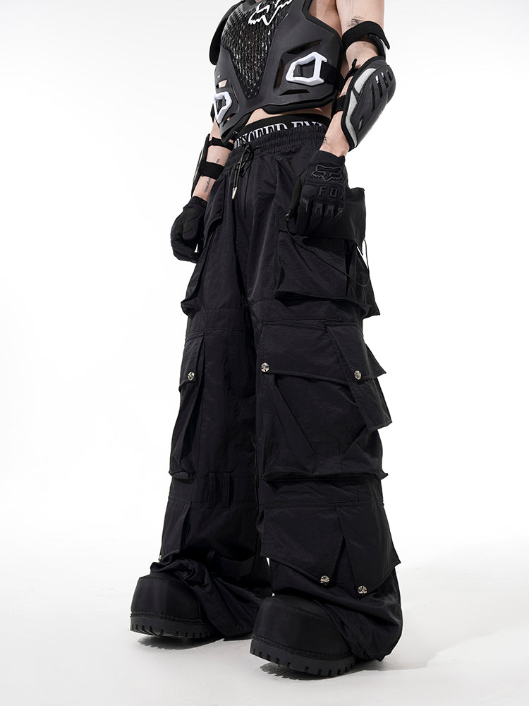 3D Multi-Pocket Utility Wide-Leg Cargo Pants WN14892