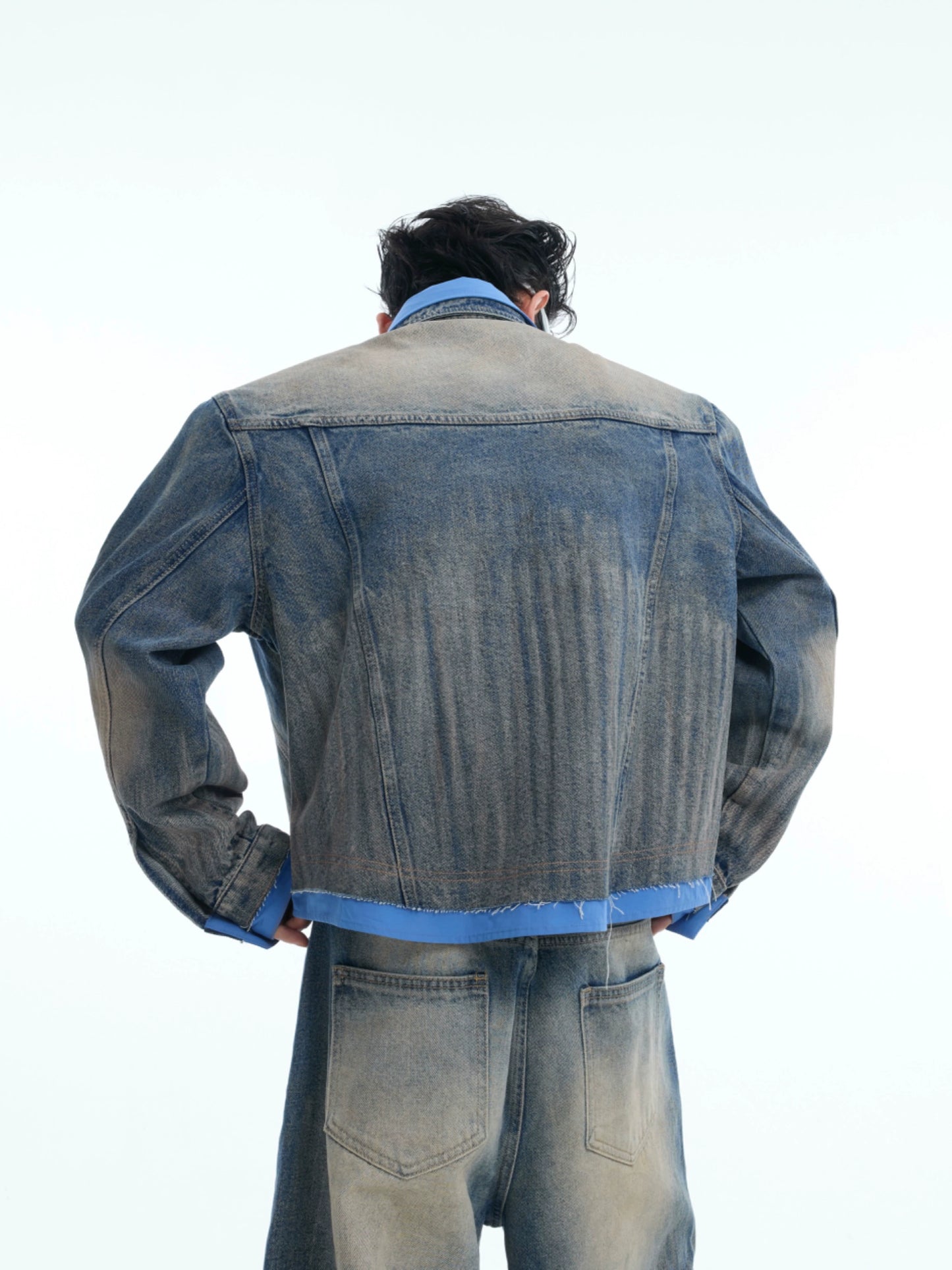 Fake Layered Denim Jacket & Straight Denim Jeans Setup WN14929