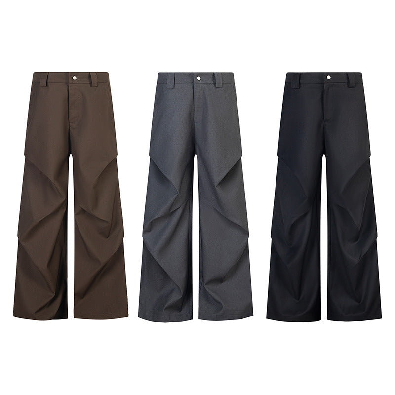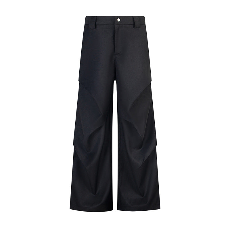 Drape Effect Pleats Wide-Leg Trousers WN15039