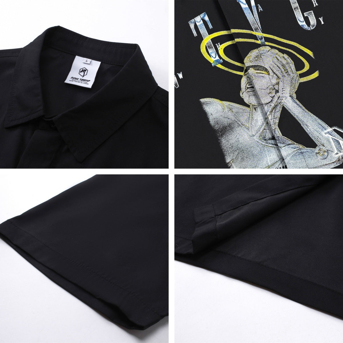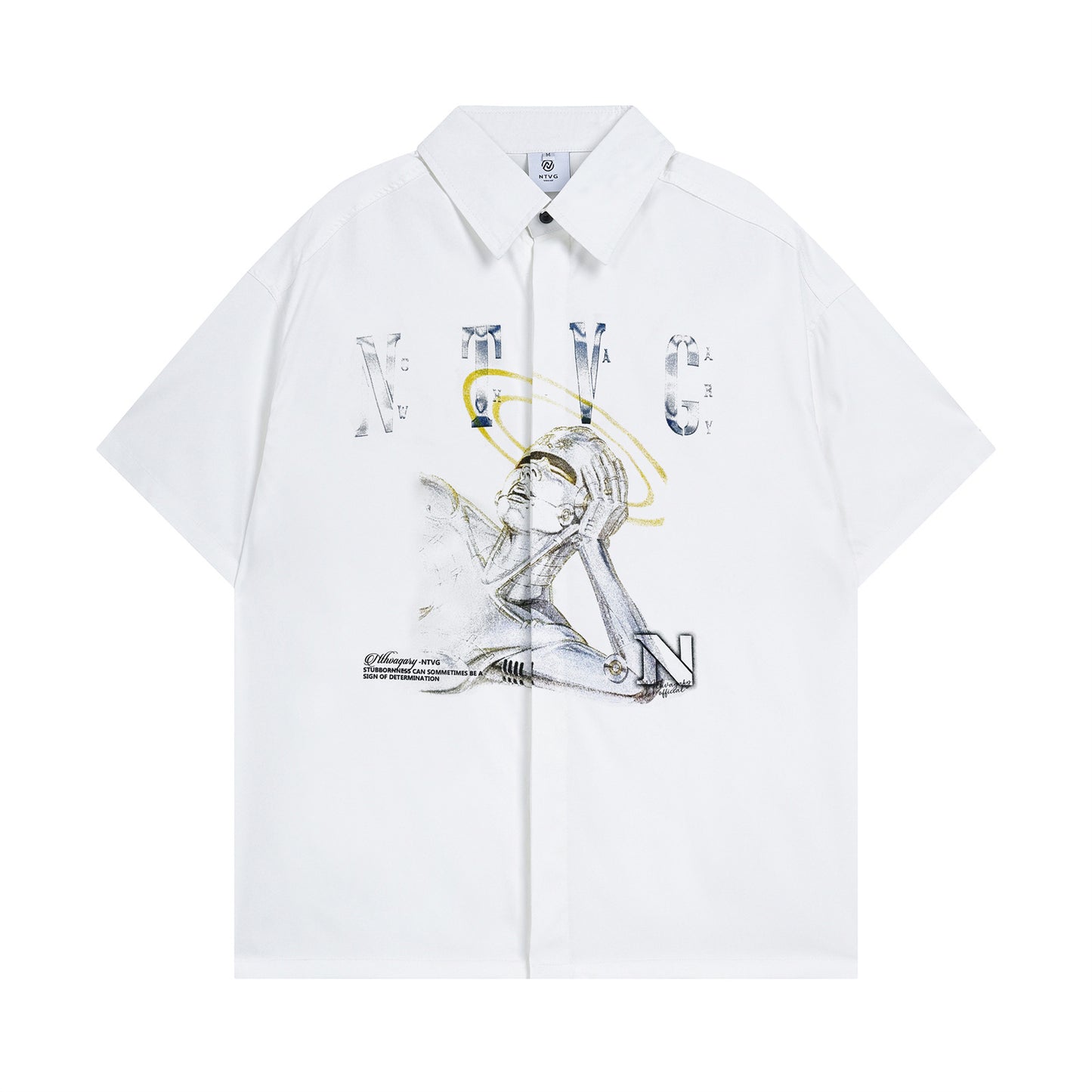 Graffiti Print Polo Collar Oversize Short Sleeve Shirt WN15096