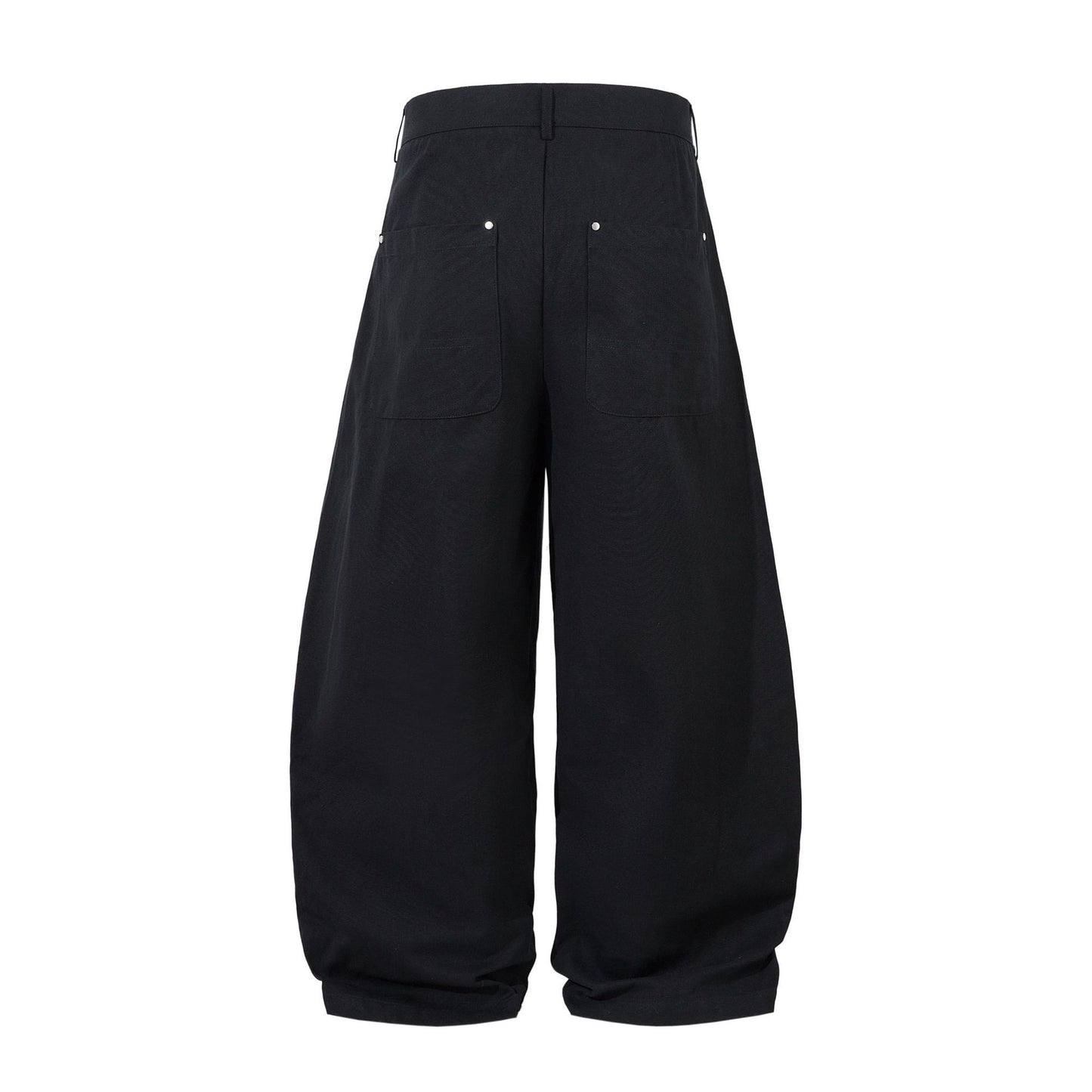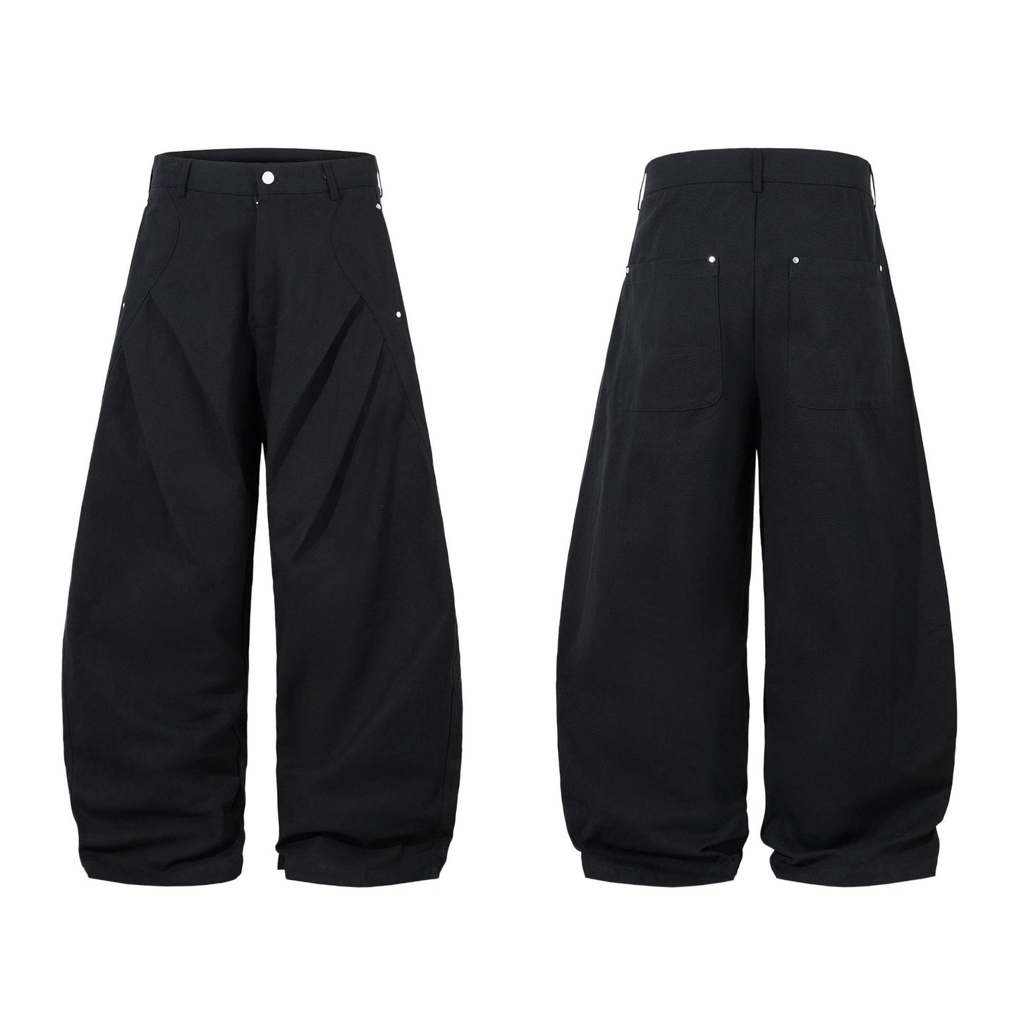 Rivet Drape Curved-Cut Wide-Leg Cotton Trousers WN15114