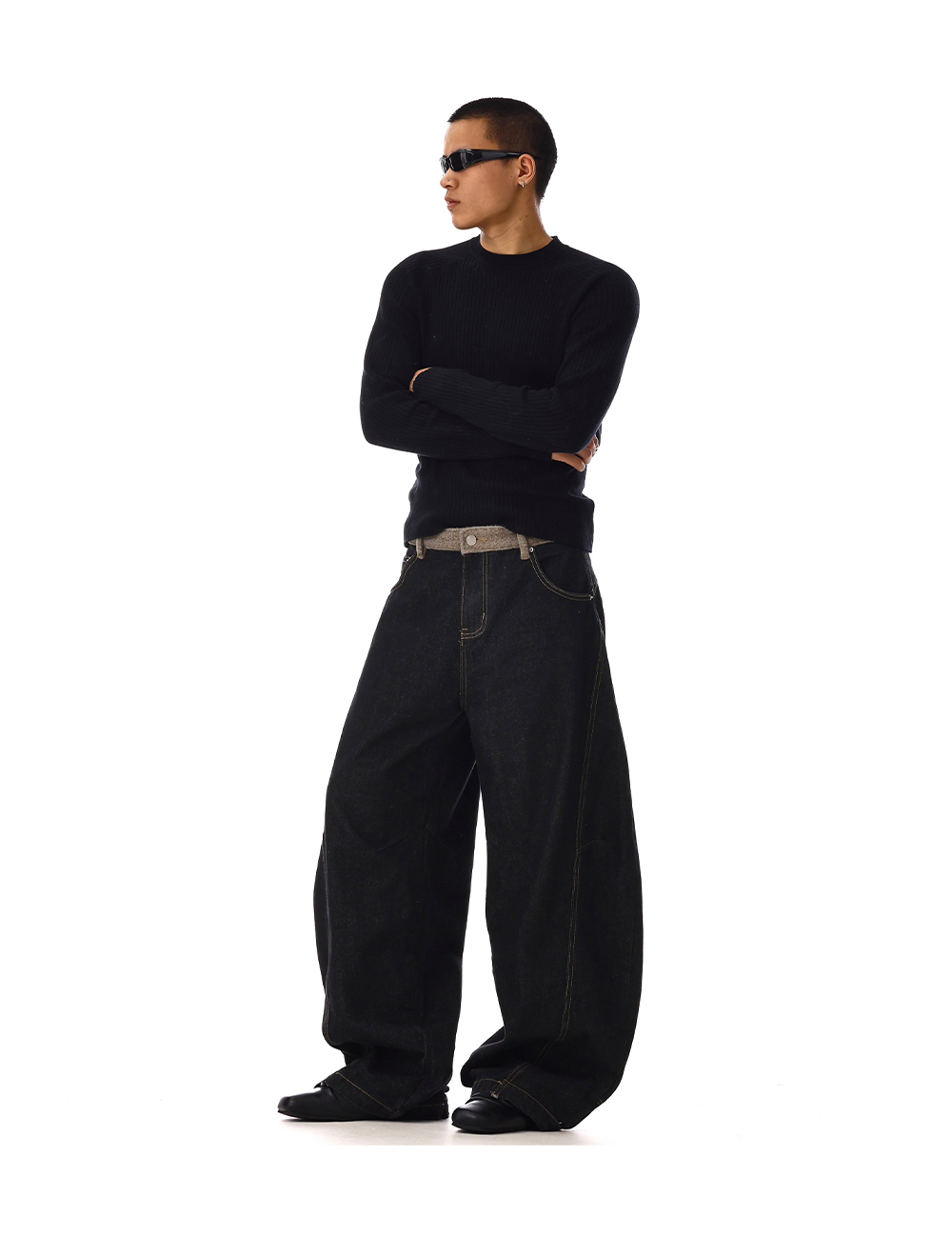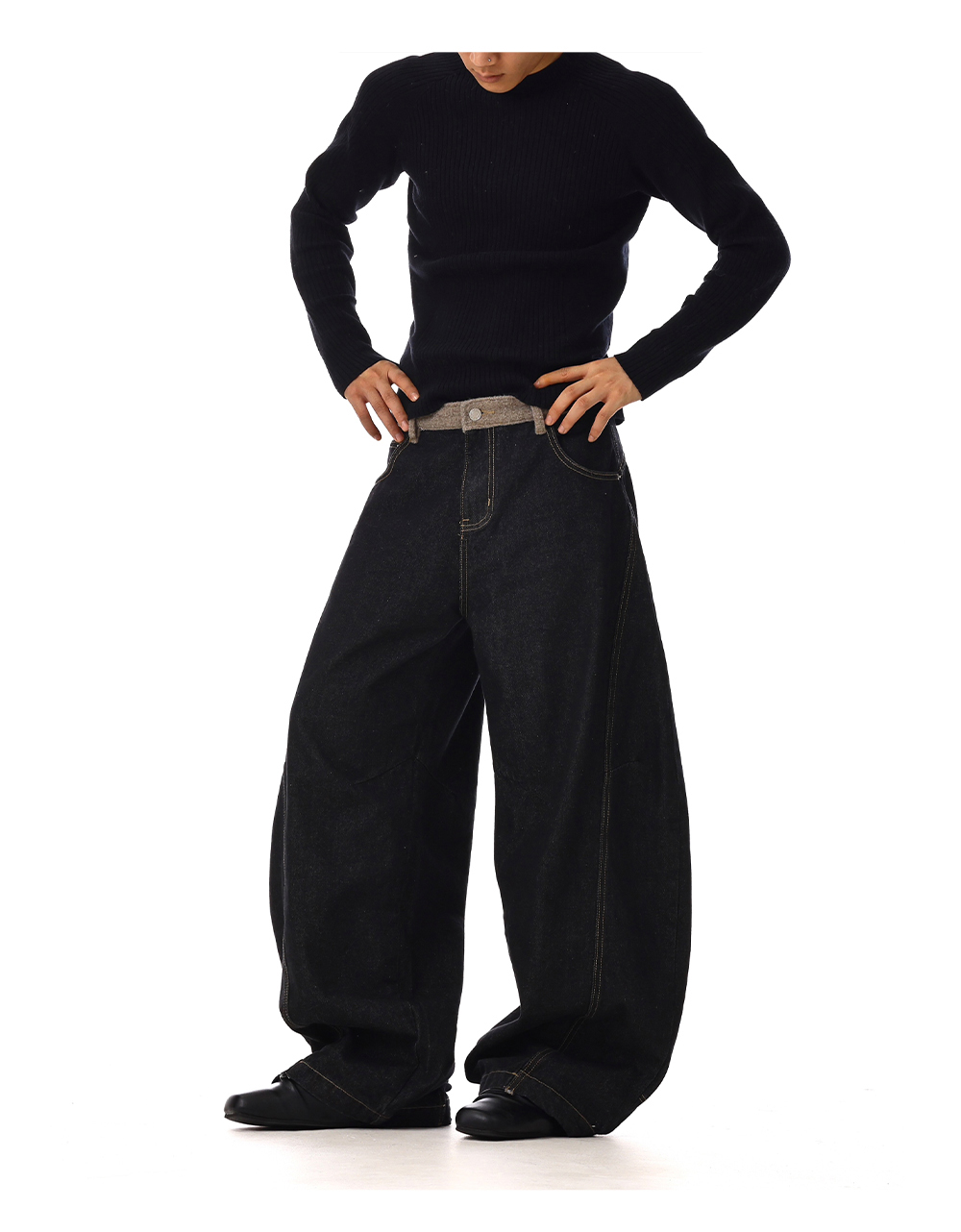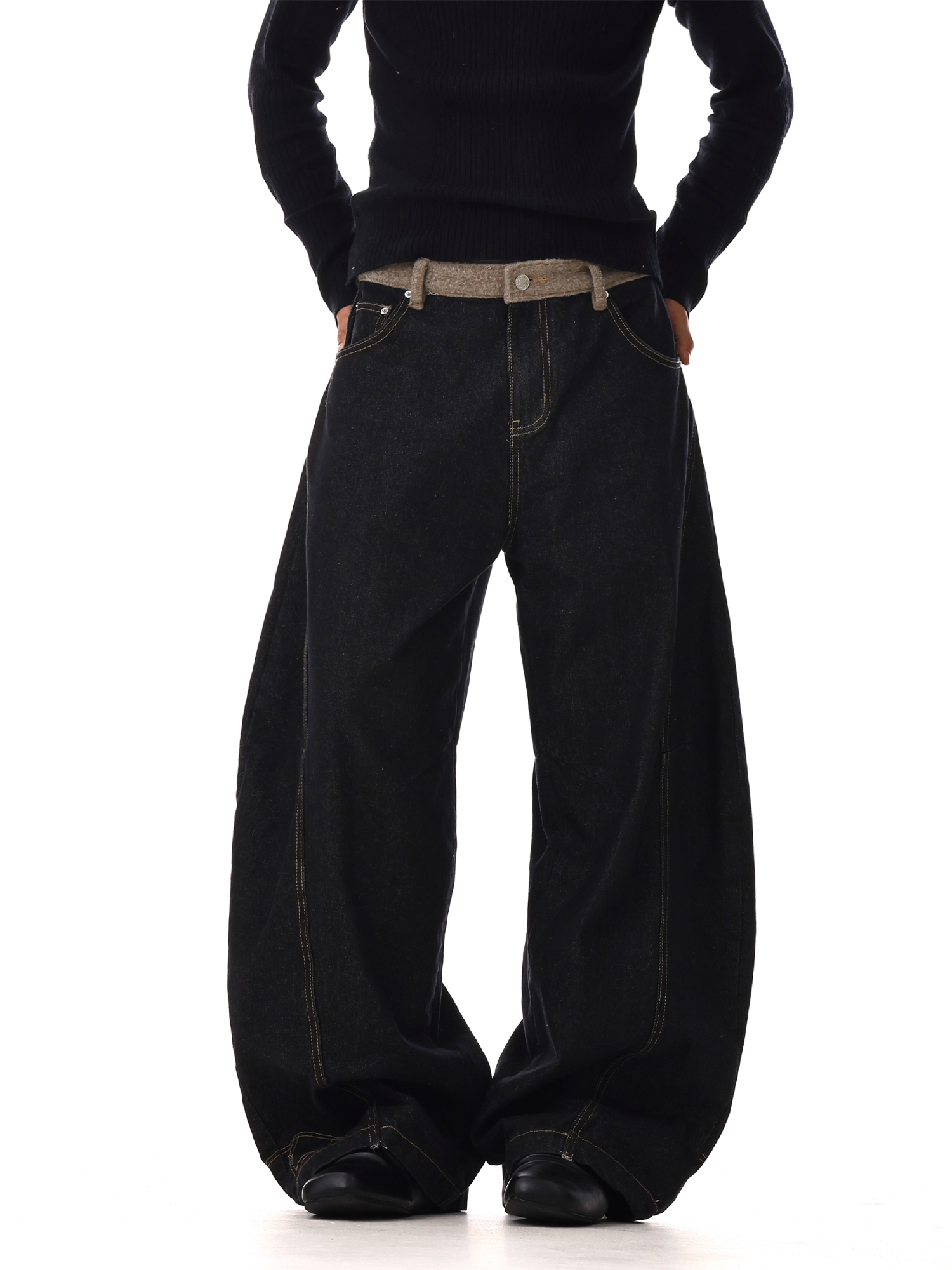 Structured Washed Wide-Leg Straight Denim Jeans WN15132