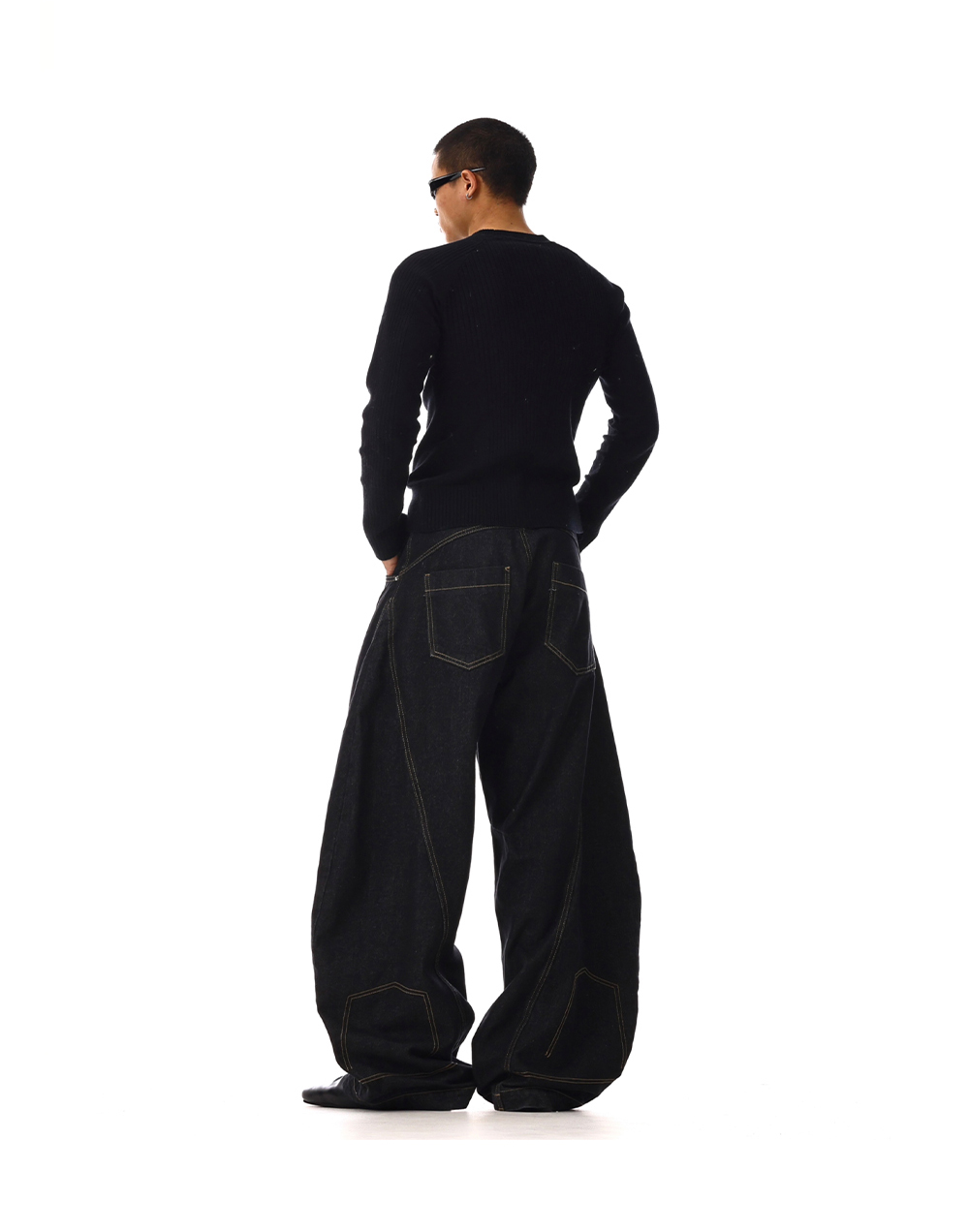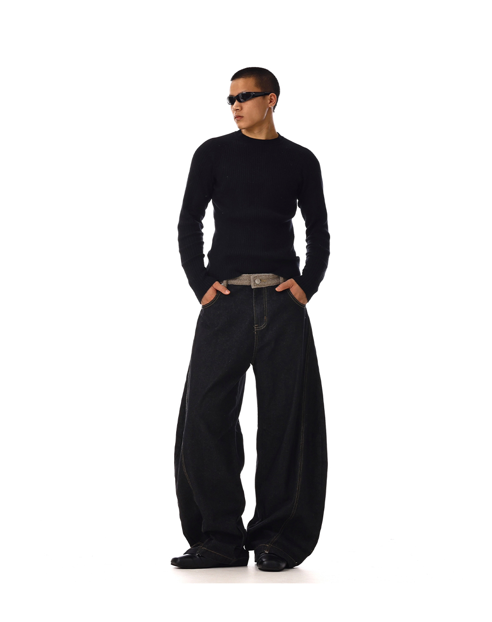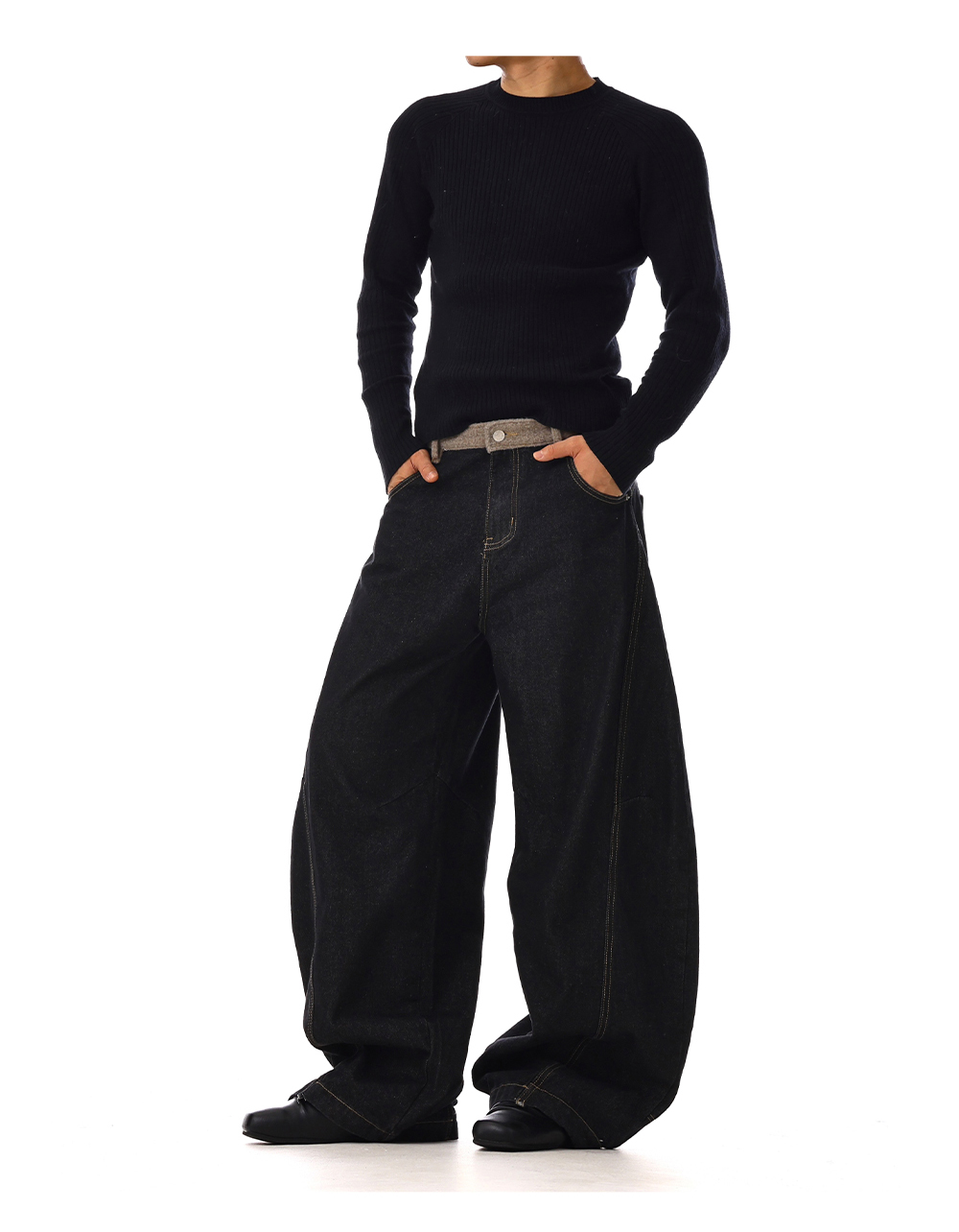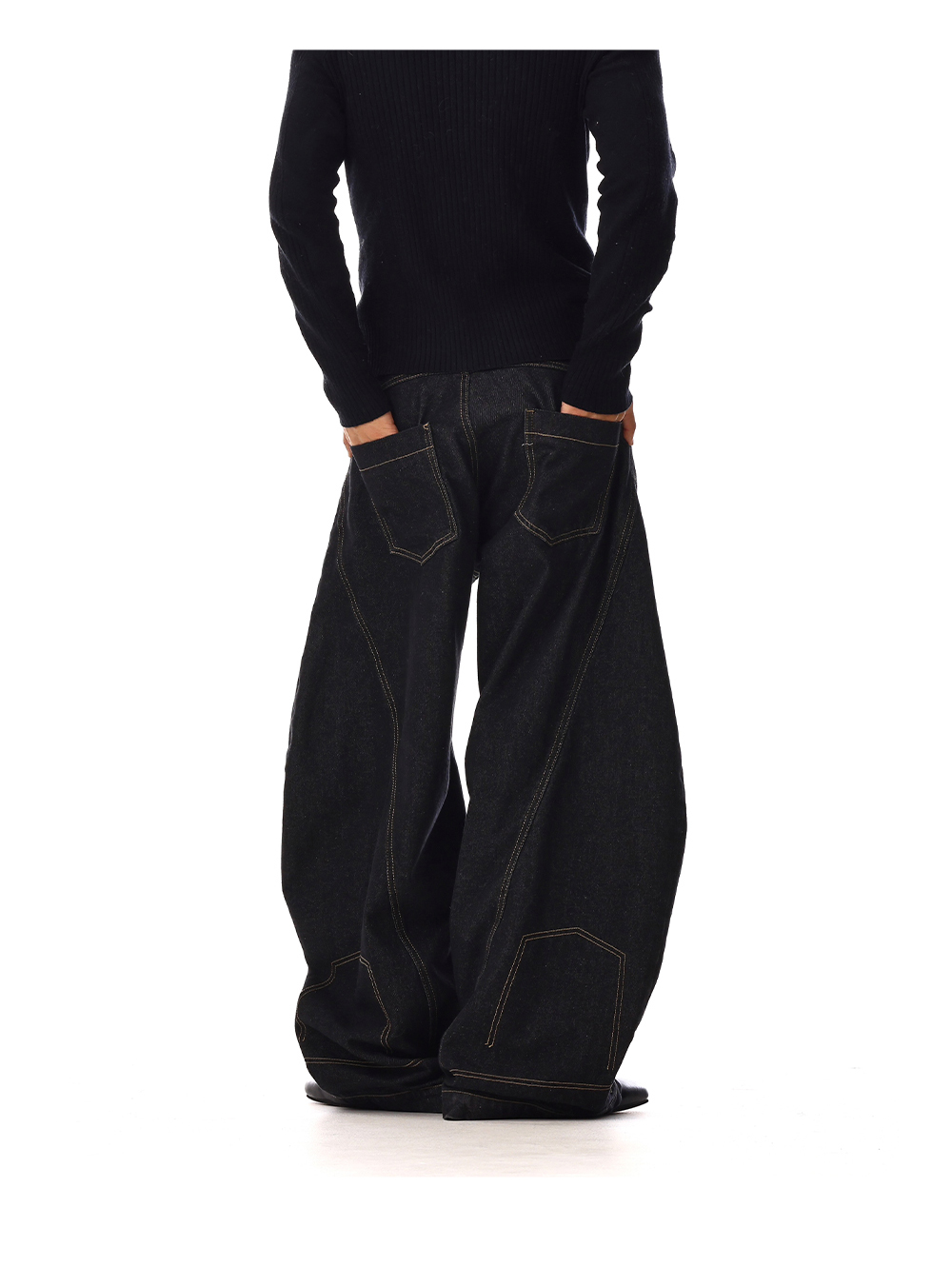 Structured Washed Wide-Leg Straight Denim Jeans WN15132
