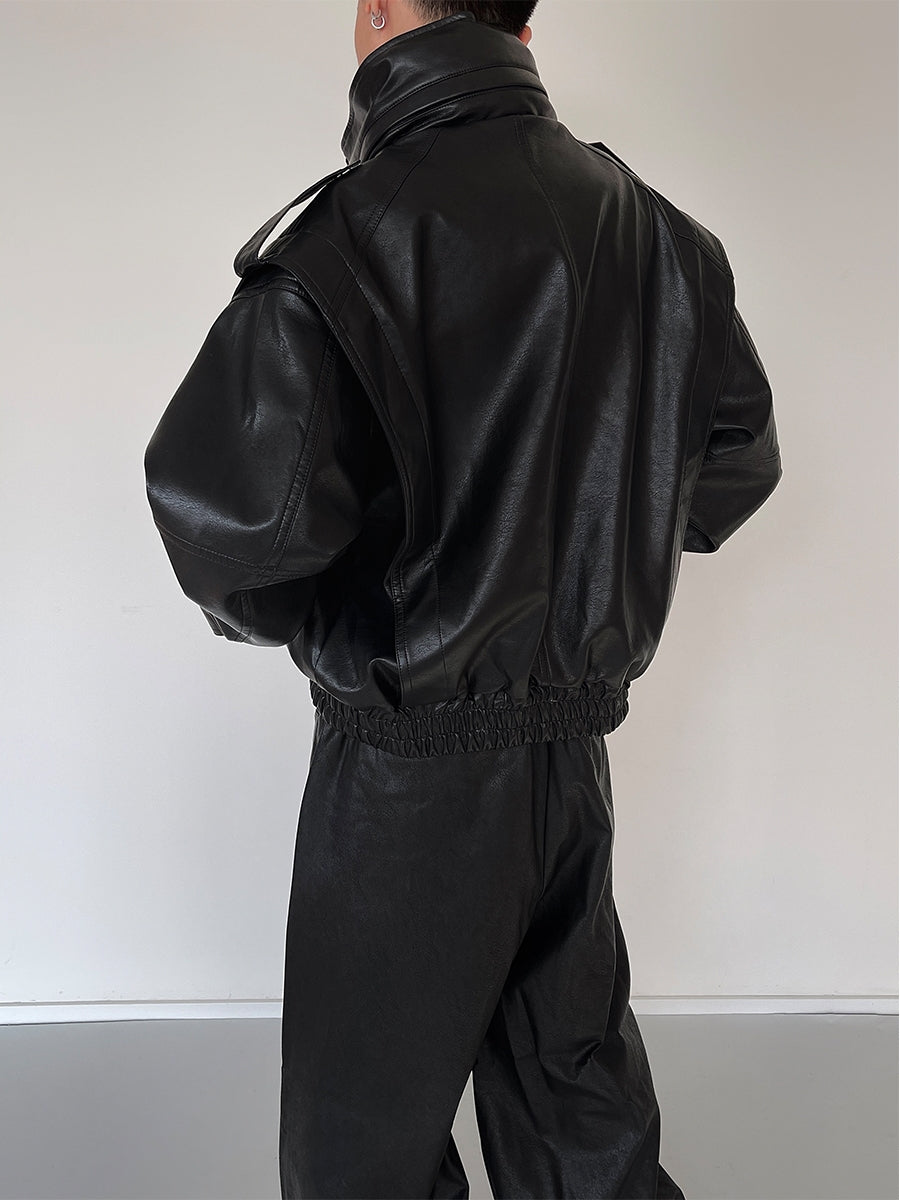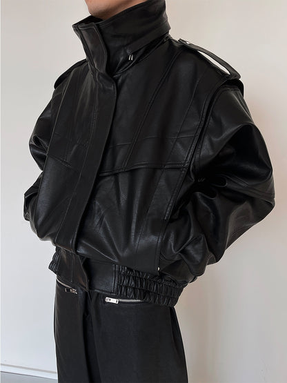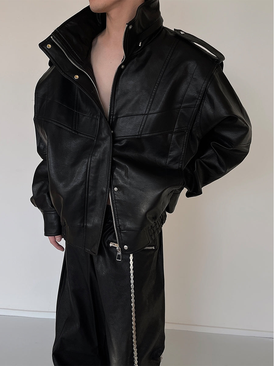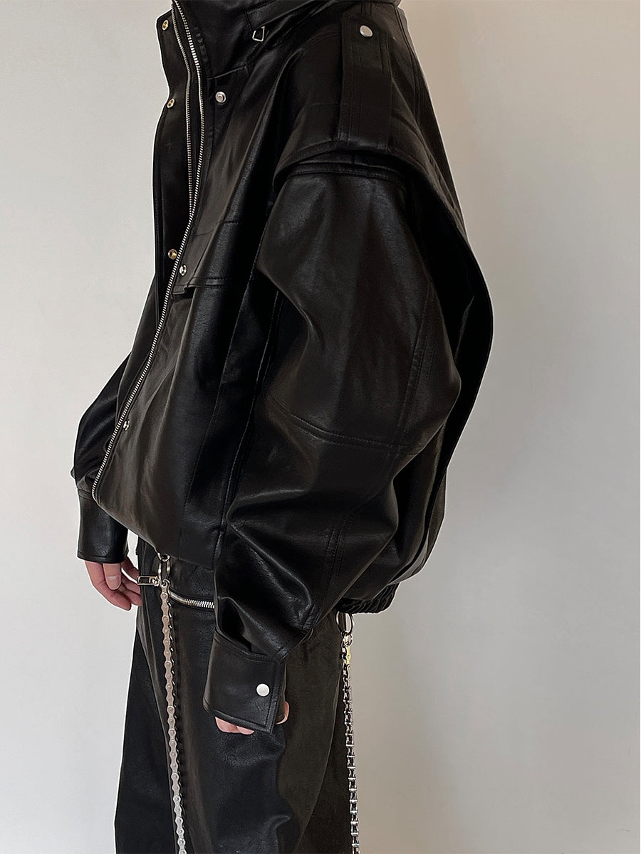 Oversize 3D Silhouette PU Leather Jacket WN15143