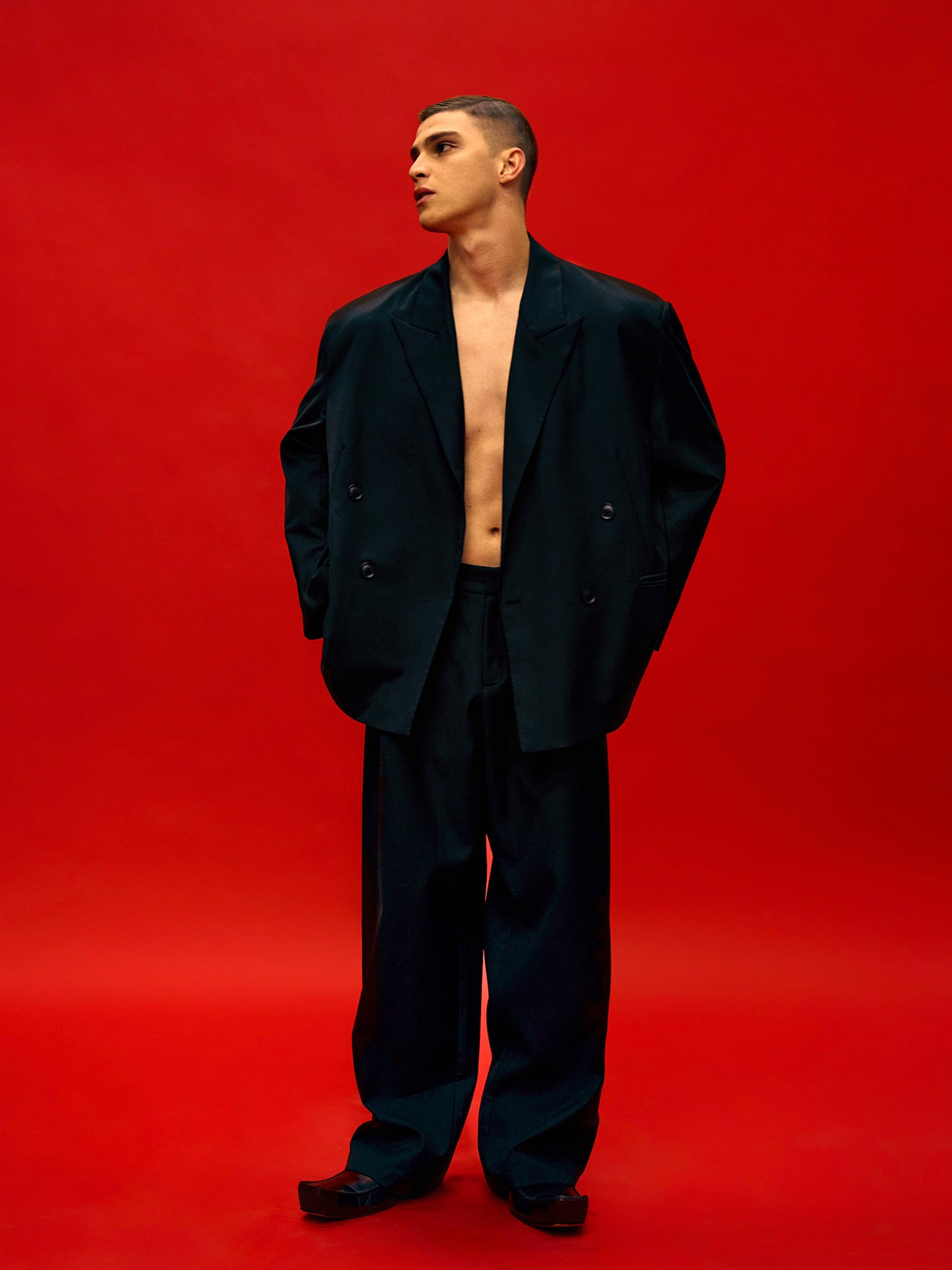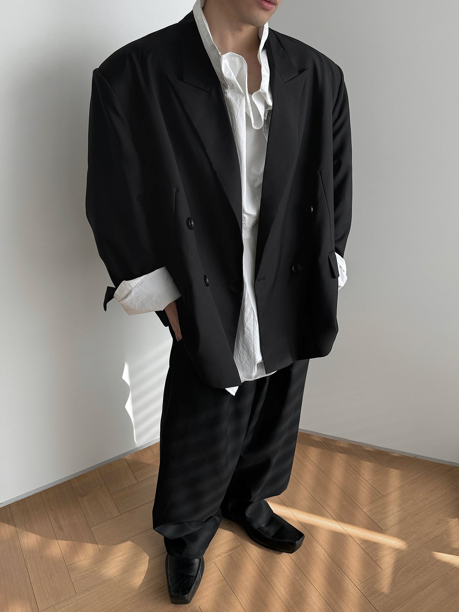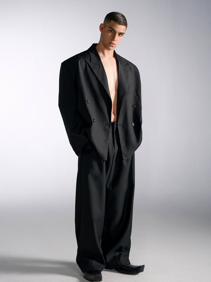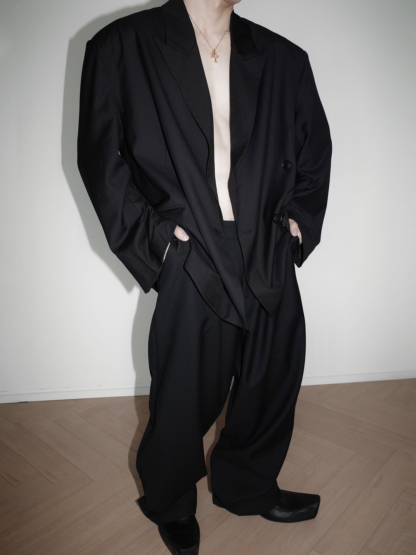 Peak Lapel Shoulder Pad Tailored Jacket & Wide-leg Trousers Setup WN15174