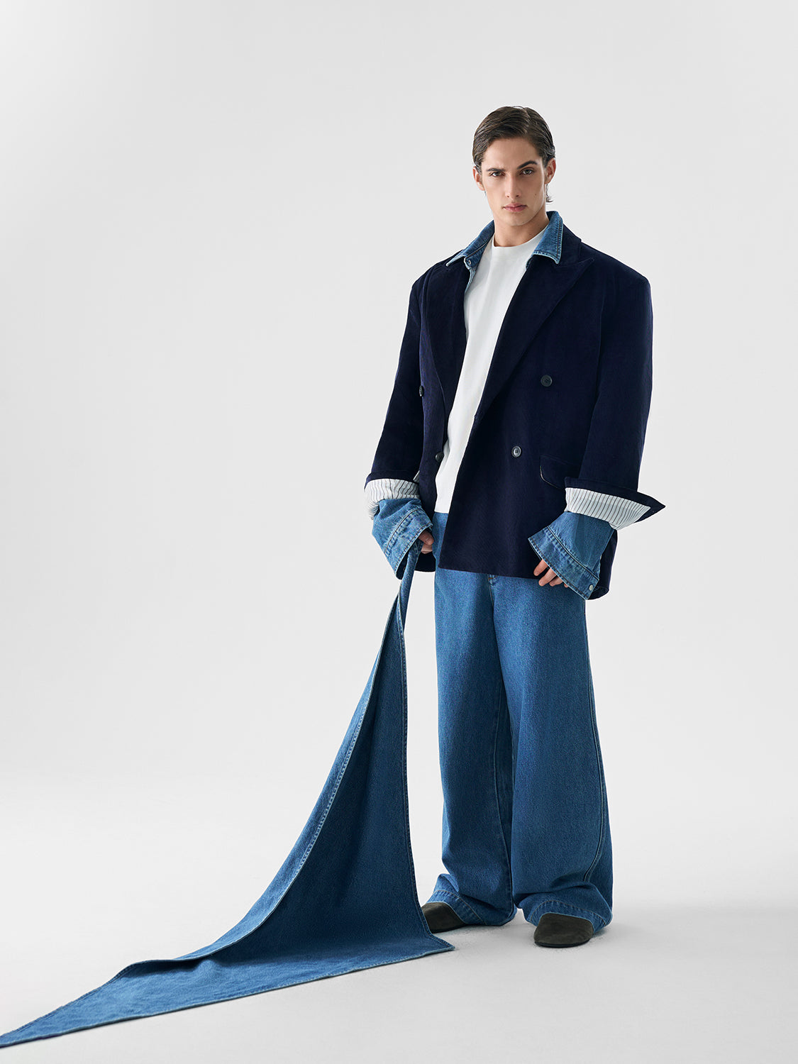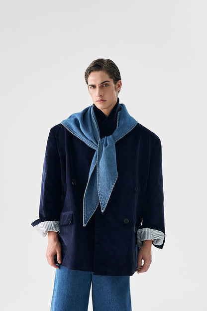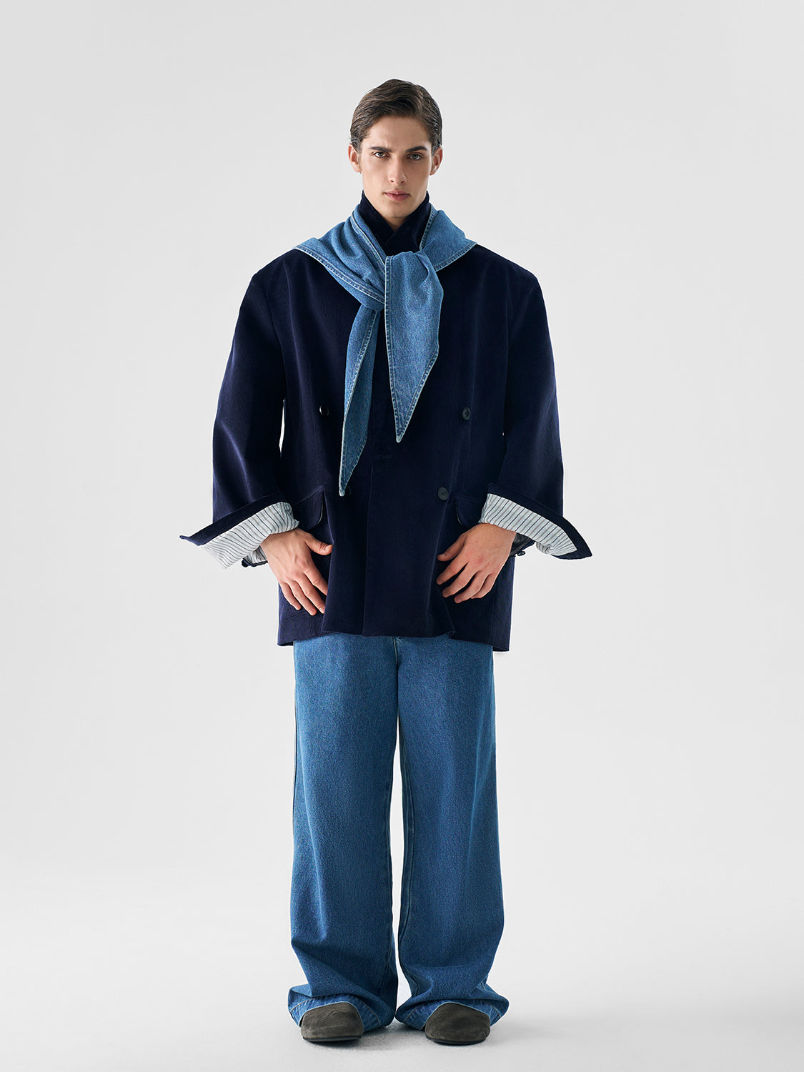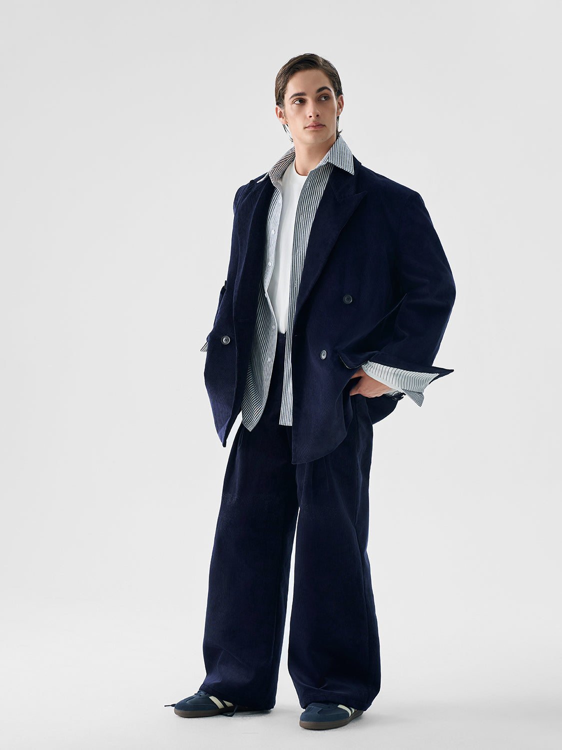 Corduroy Shoulder-pad Tailored Jacket & Wide-Leg Trousers Setup WN15186
