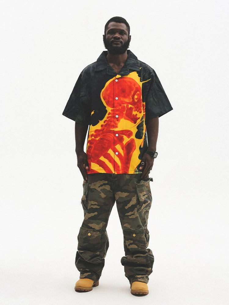 Skull Print Oversize Short Sleeve Shirt WN17724