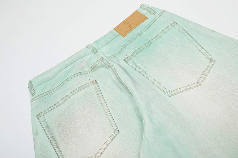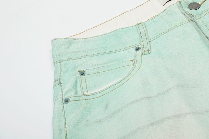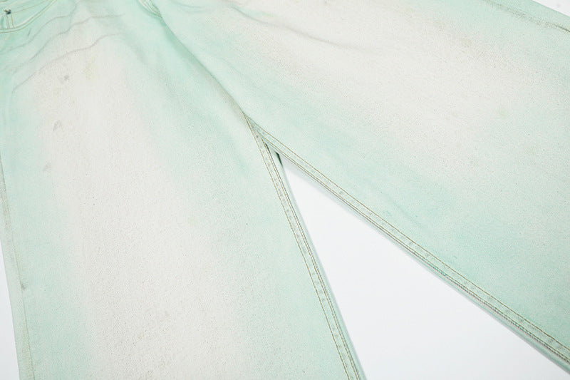 Mud Dye Paint Wide-Leg Straight Denim Jeans WN18538