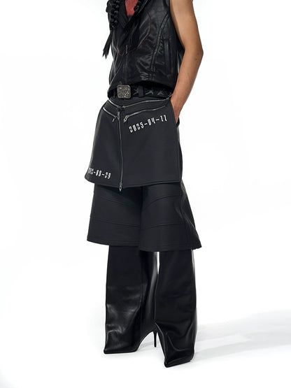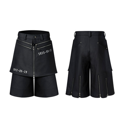 Fake Layered Deconstructed Metal Zipper PU Leather Half Pants WN18787
