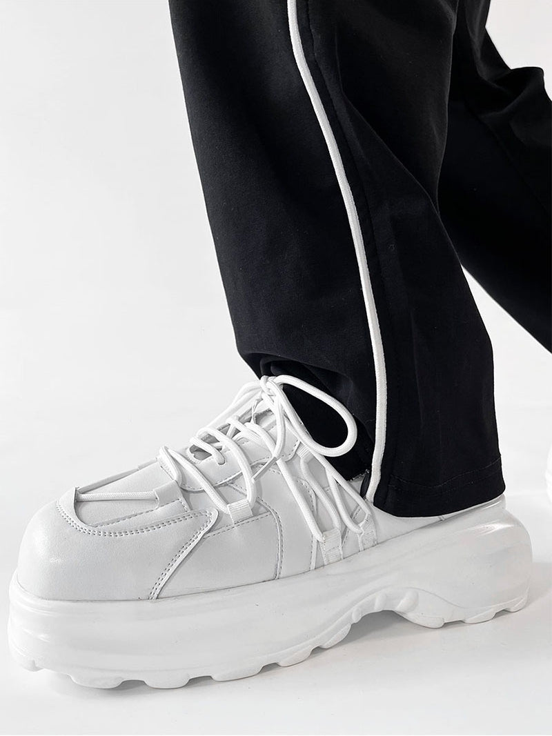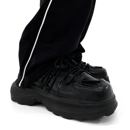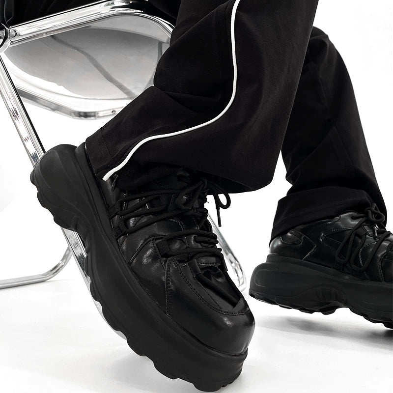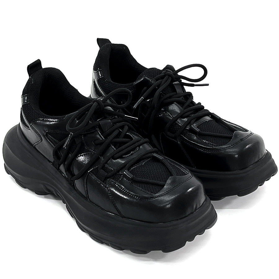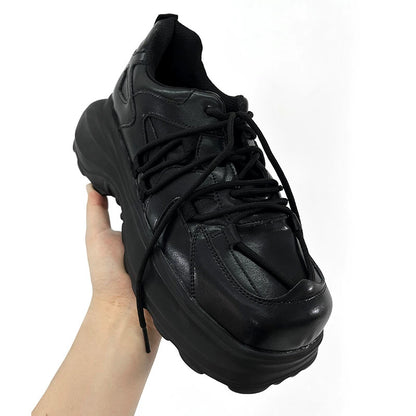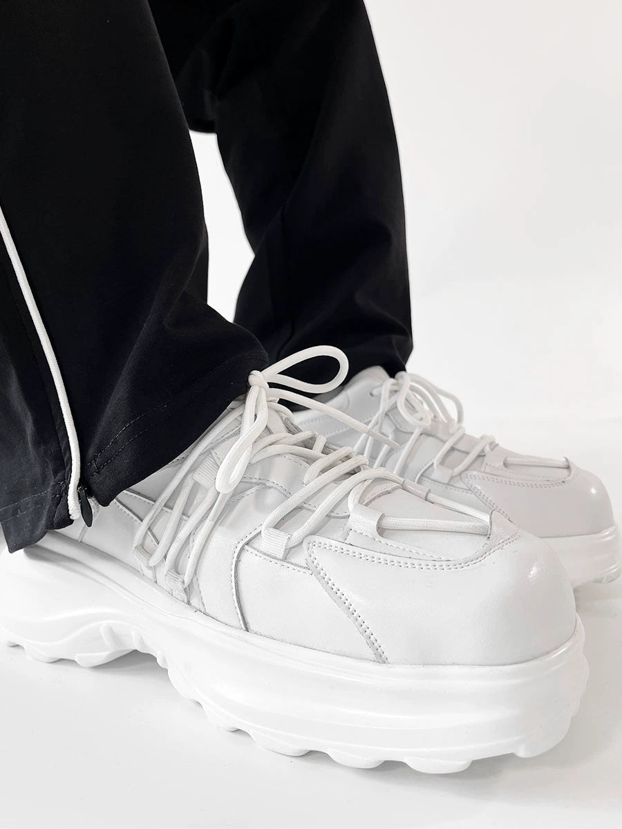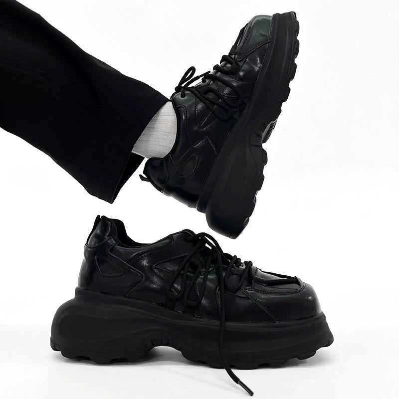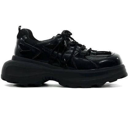 Chunky Square-Toe Lace-Up Leather Sneakers WN19110