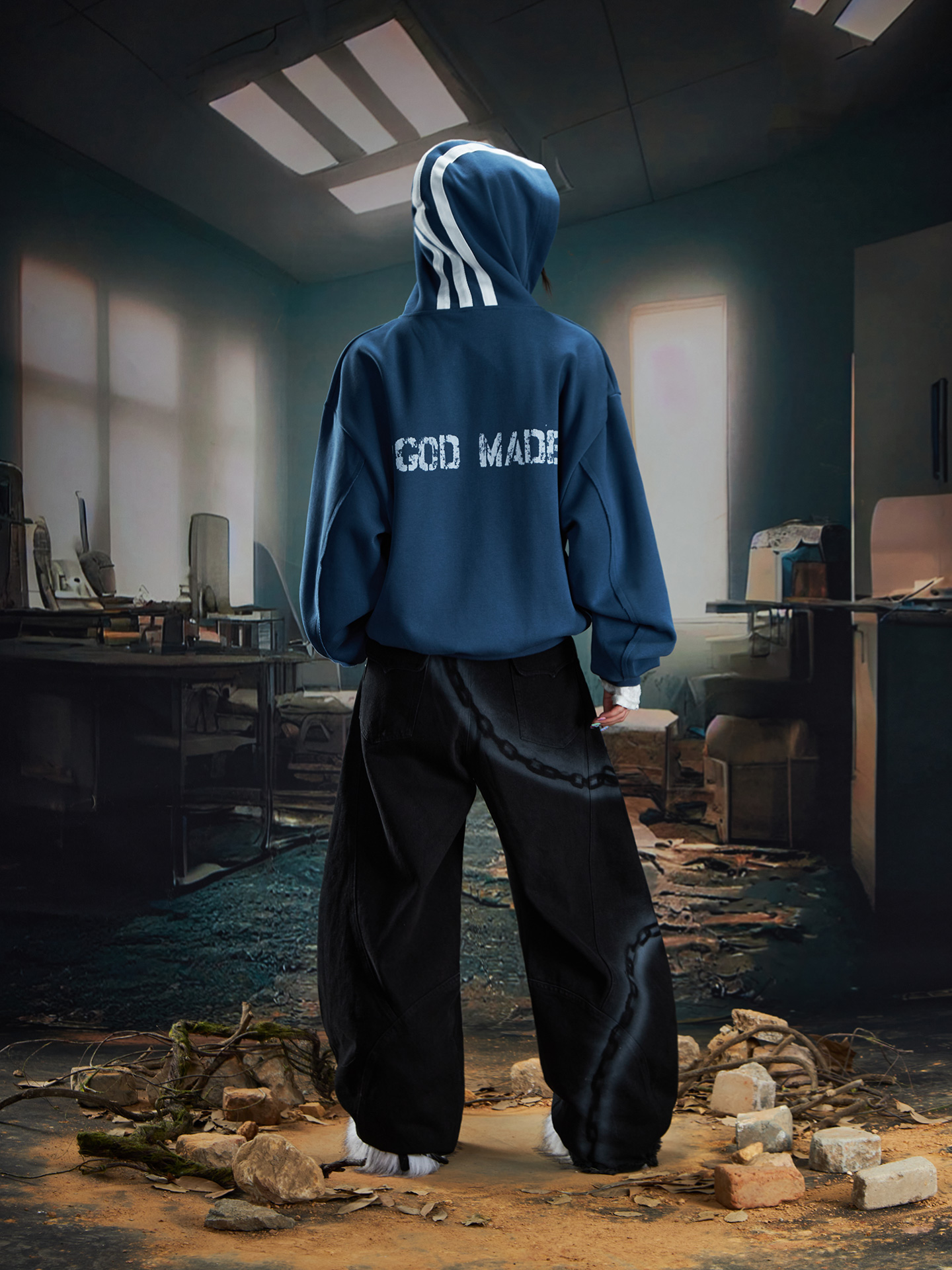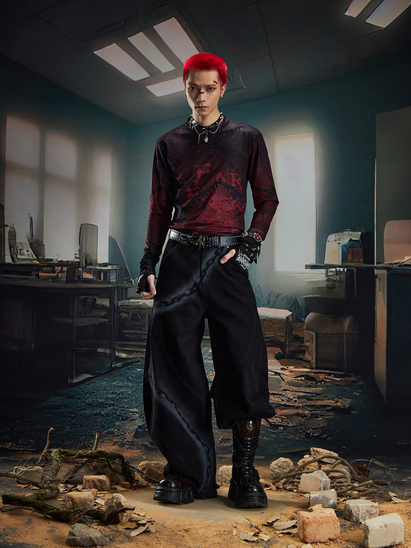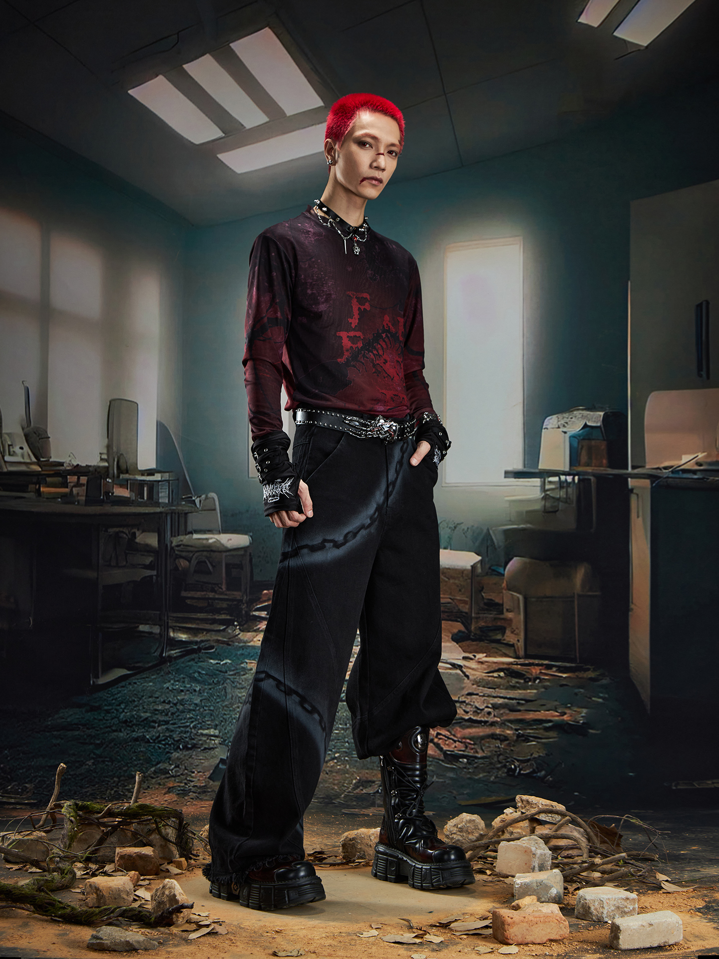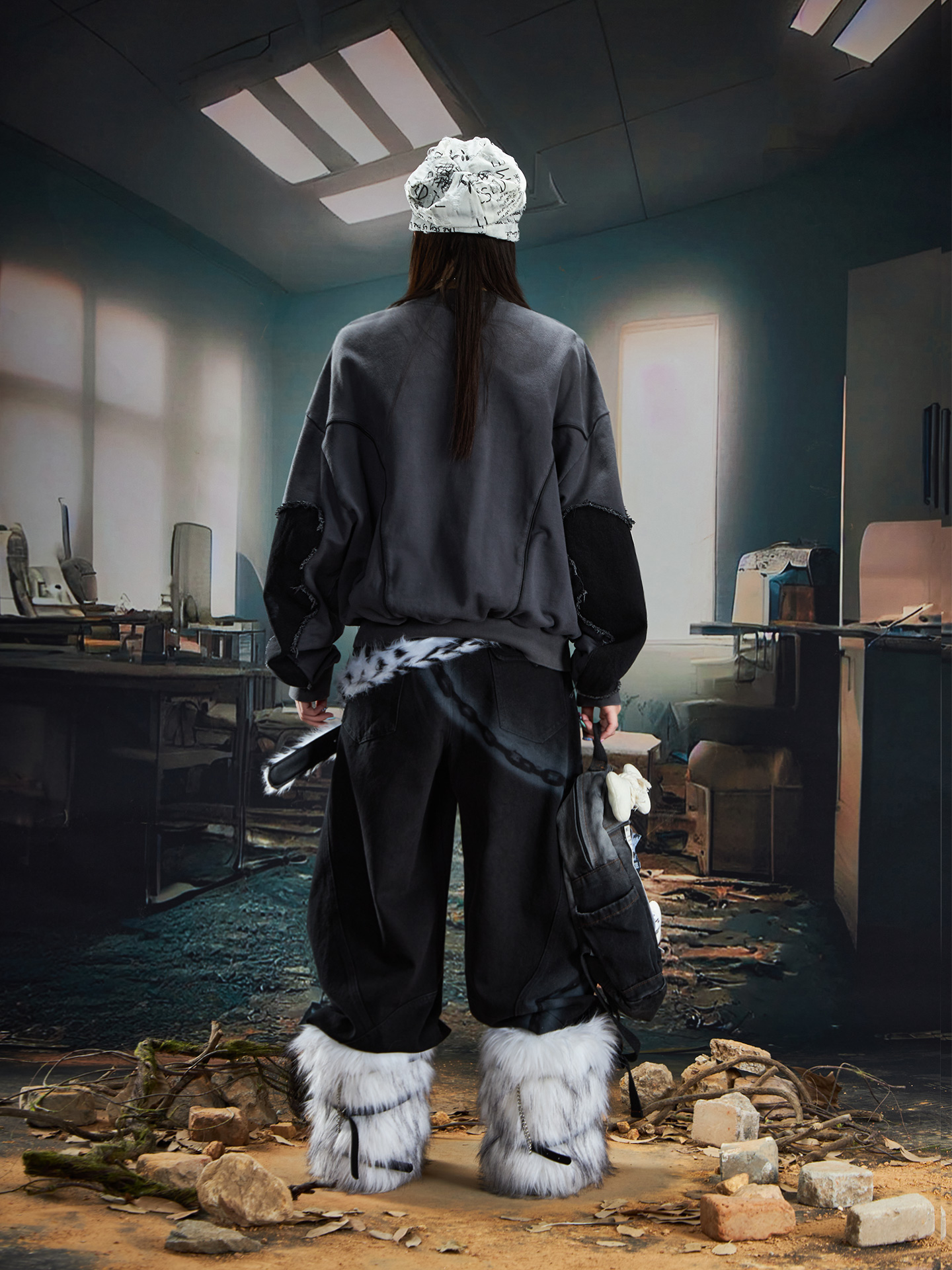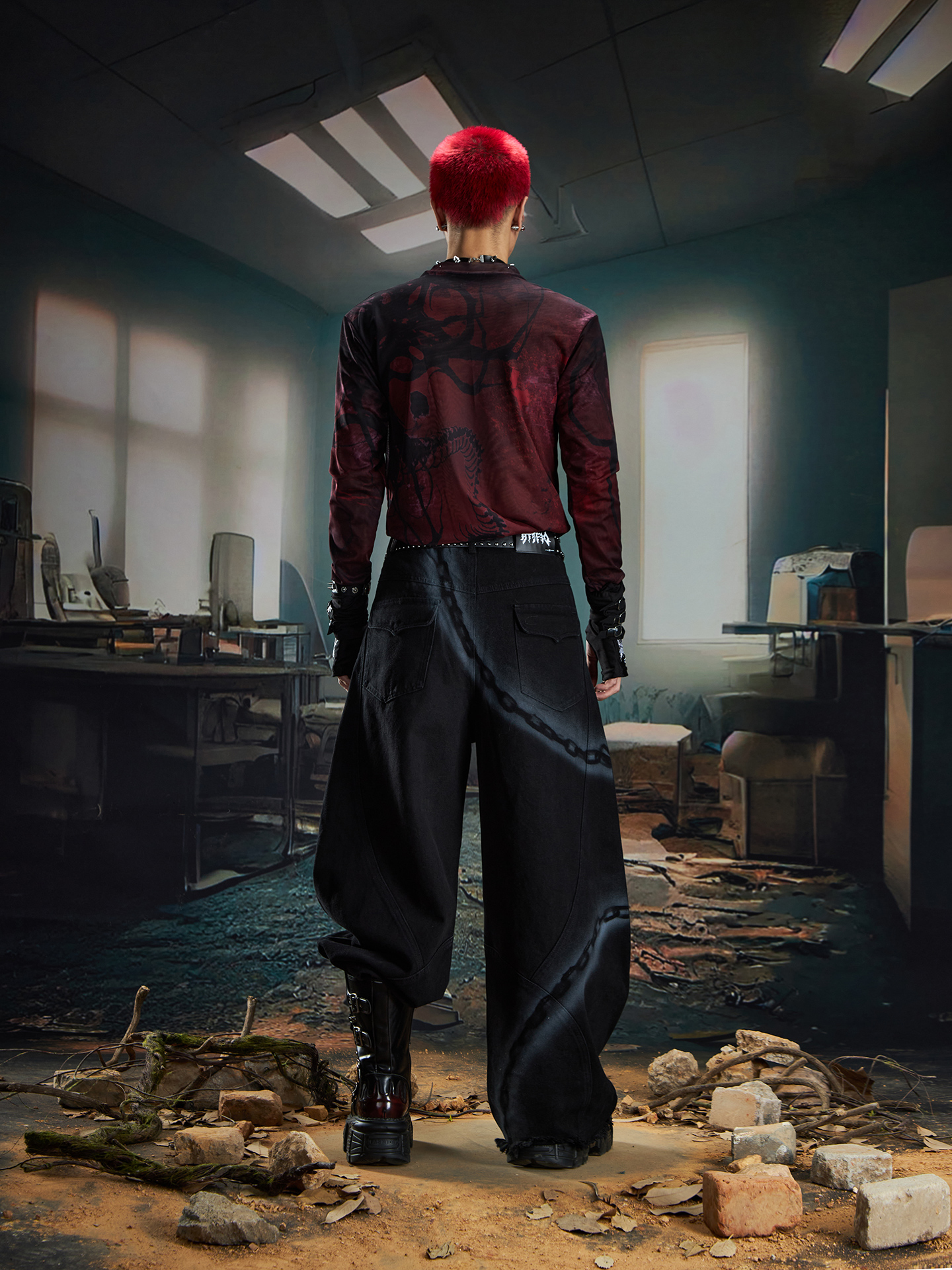 Spray Paint Graffiti Chain Washed Wide Leg Denim Jeans WN20574