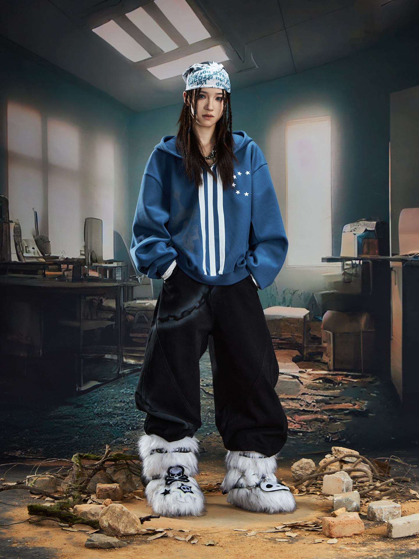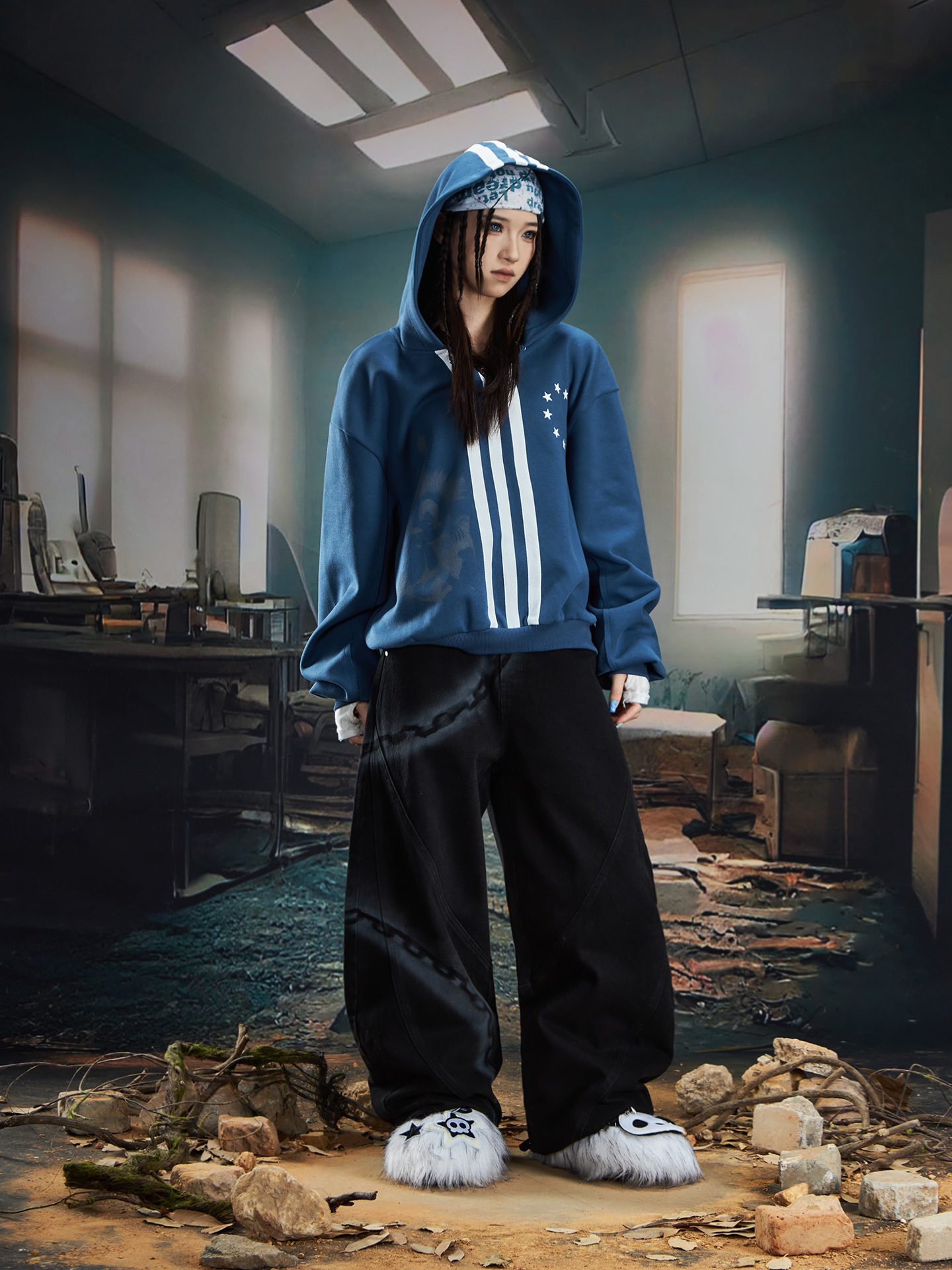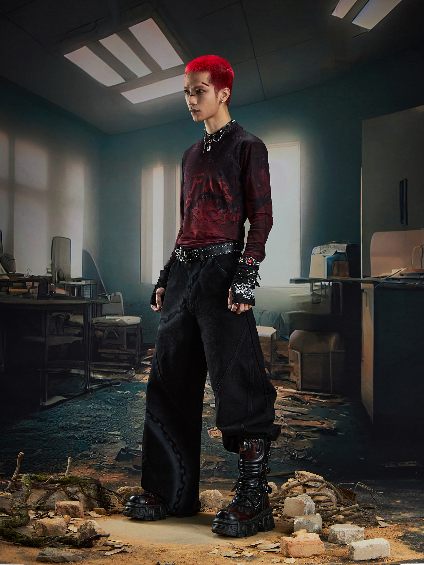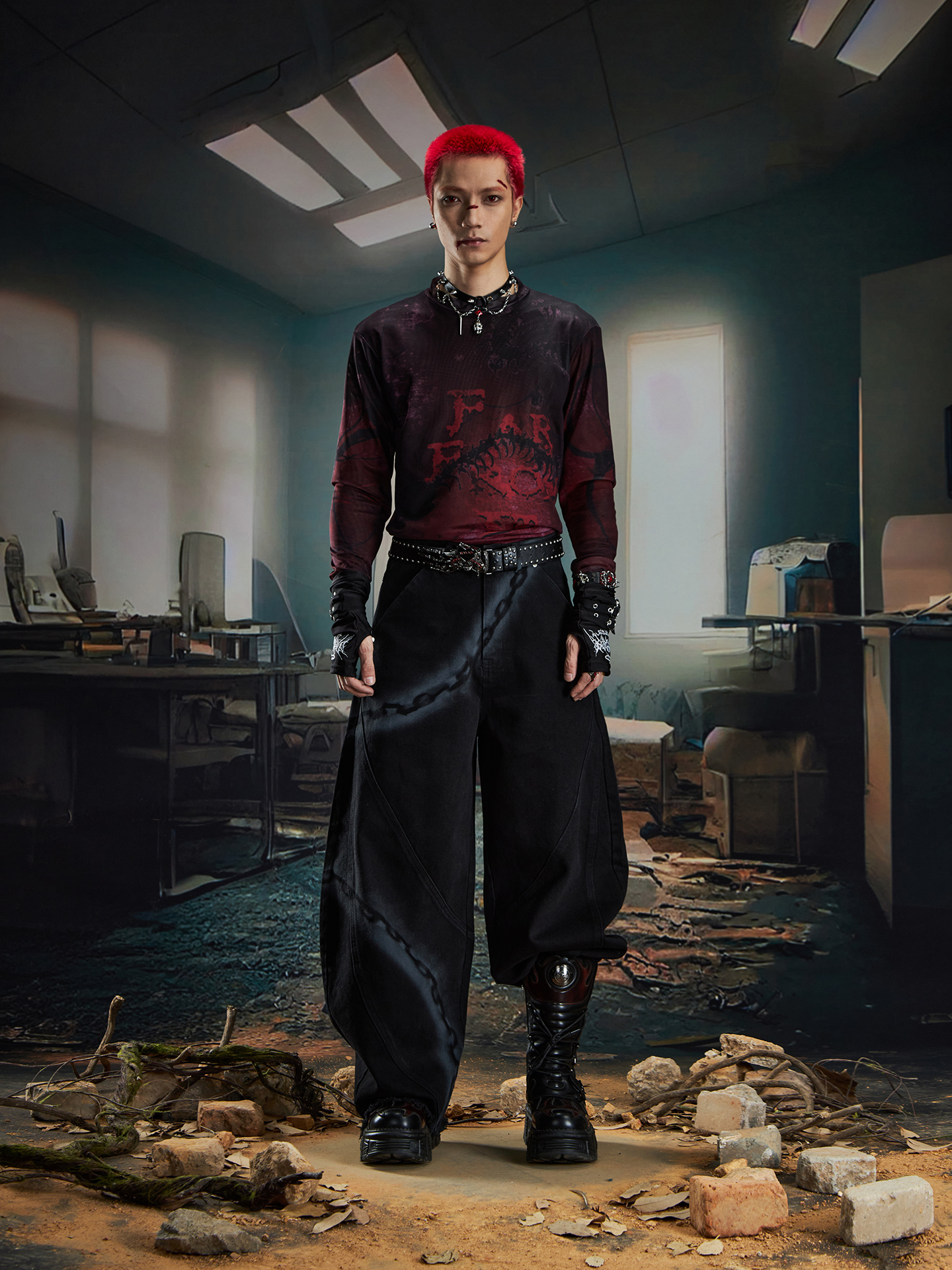 Spray Paint Graffiti Chain Washed Wide Leg Denim Jeans WN20574