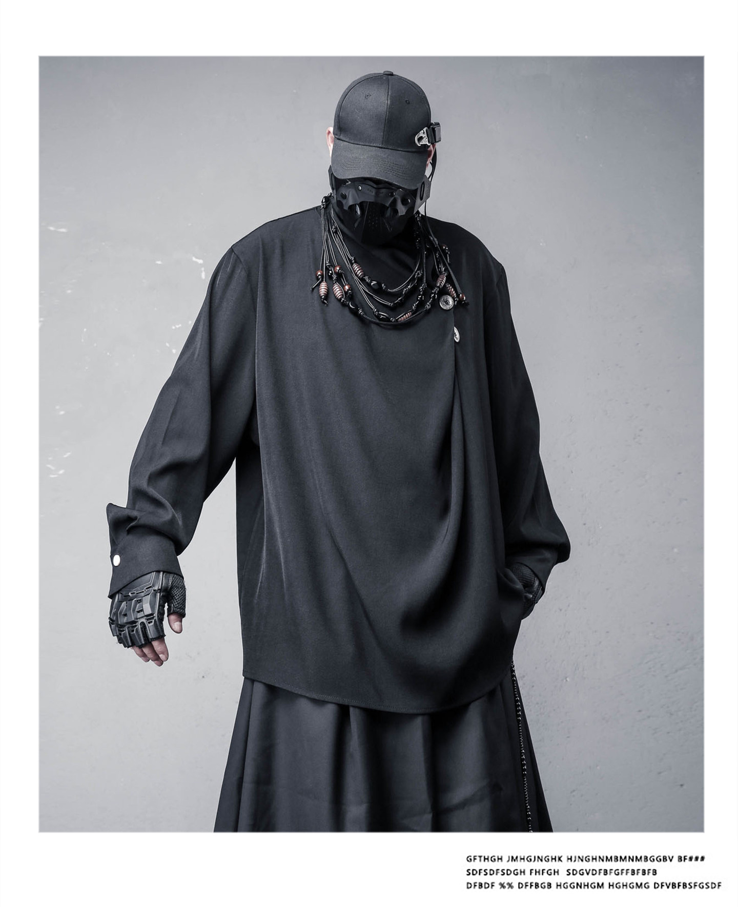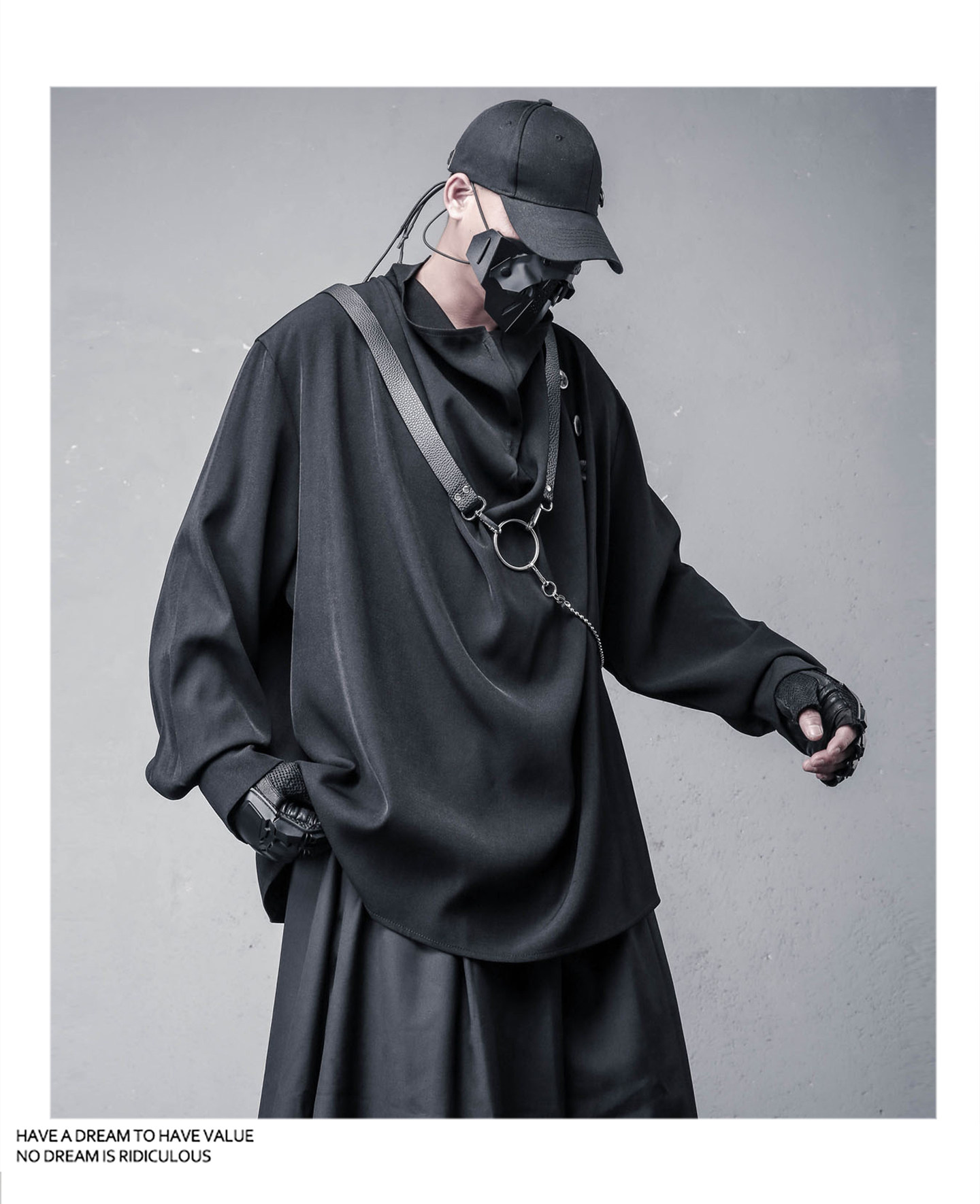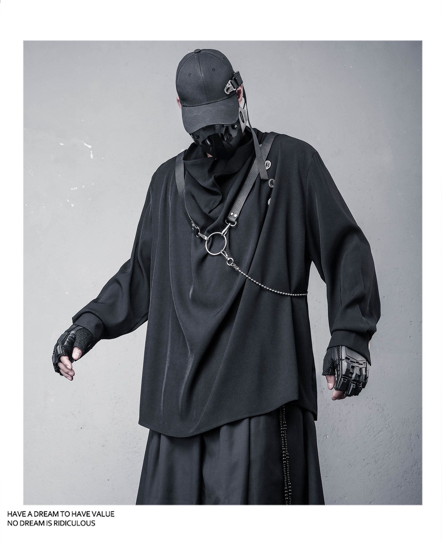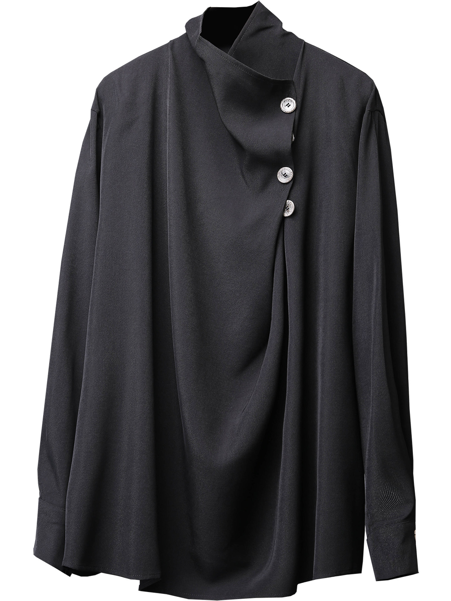 Draped High-Neck Long Sleeve T-shirt WN22456