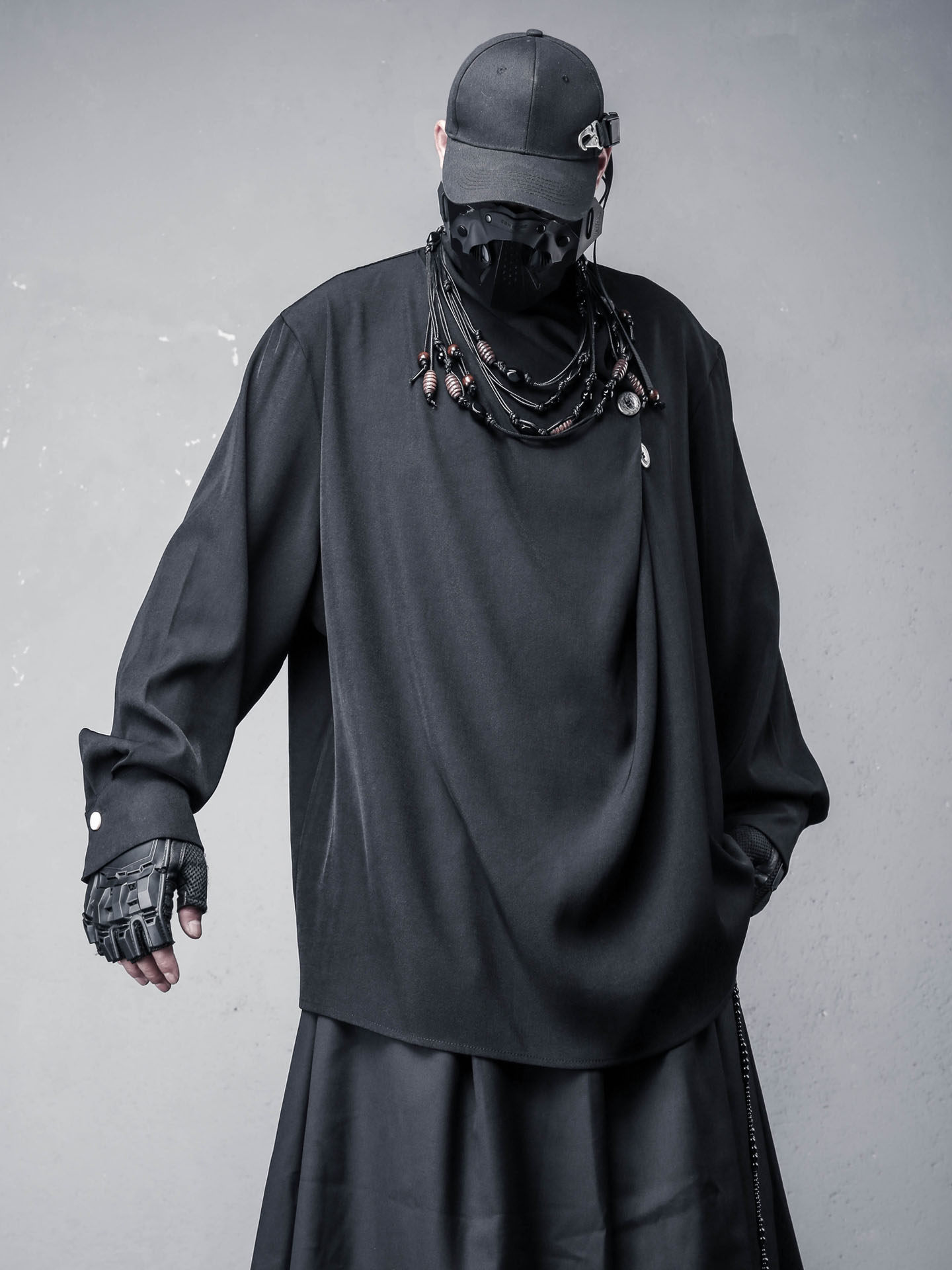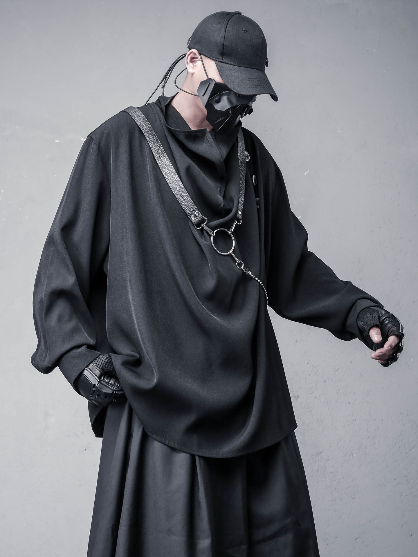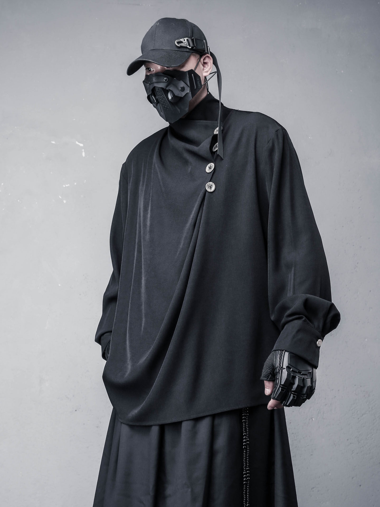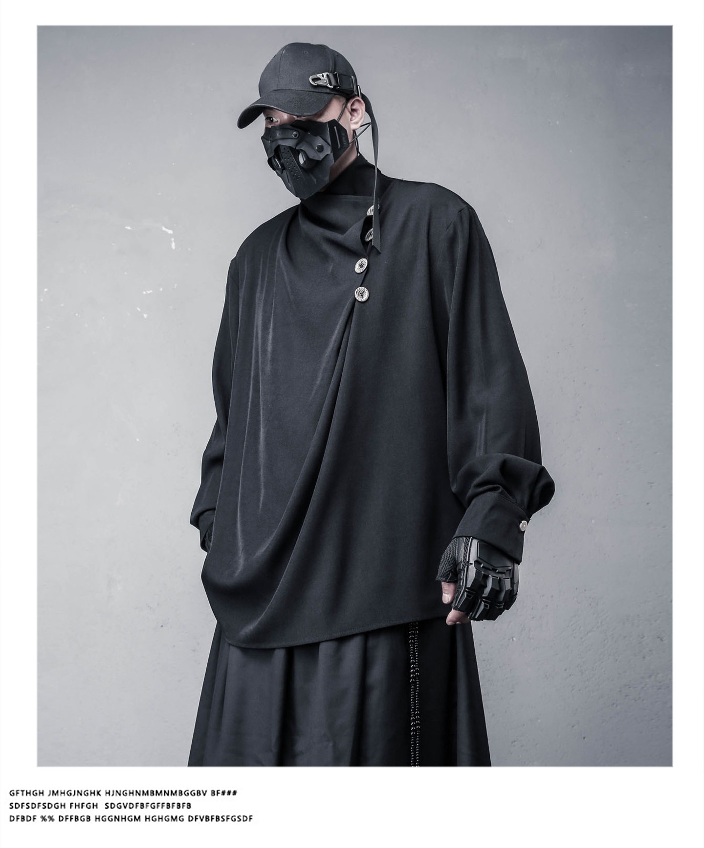 Draped High-Neck Long Sleeve T-shirt WN22456