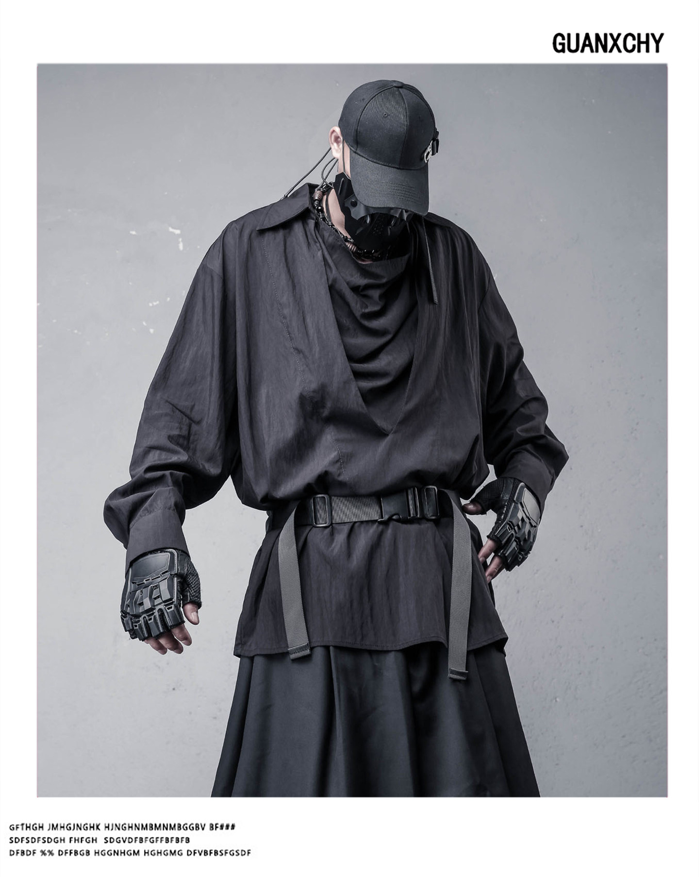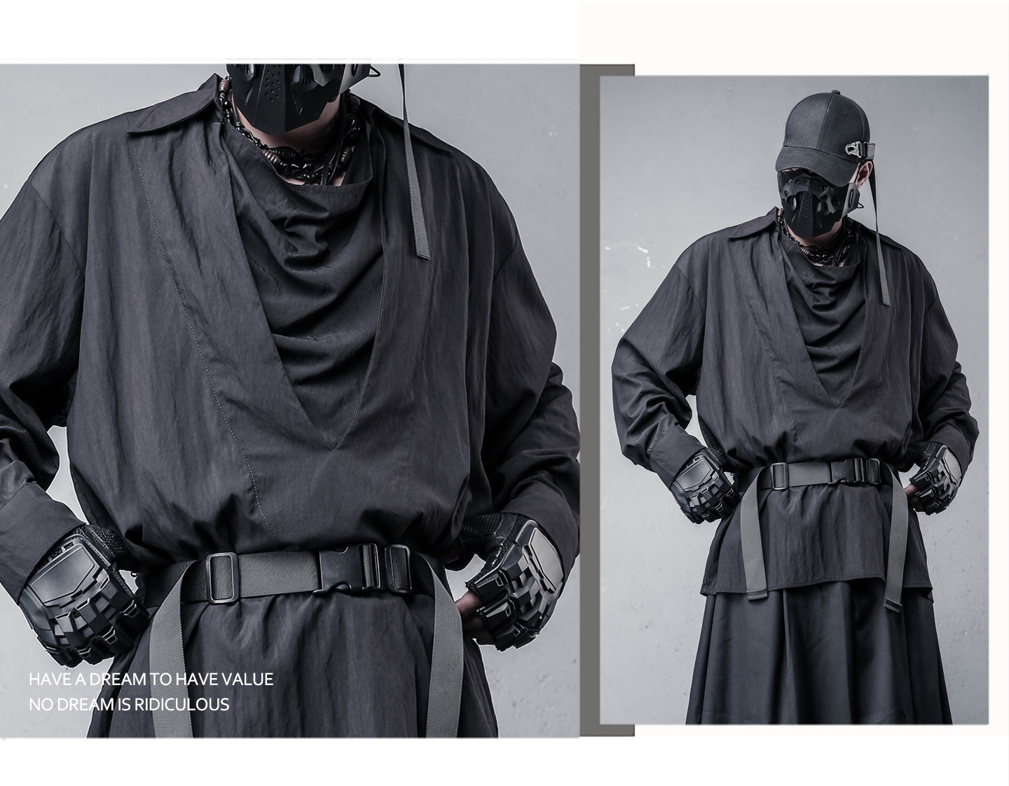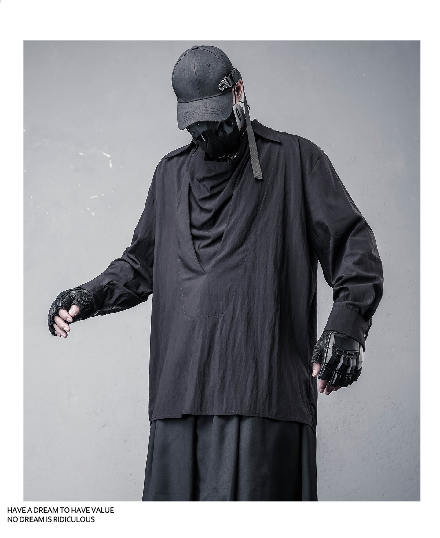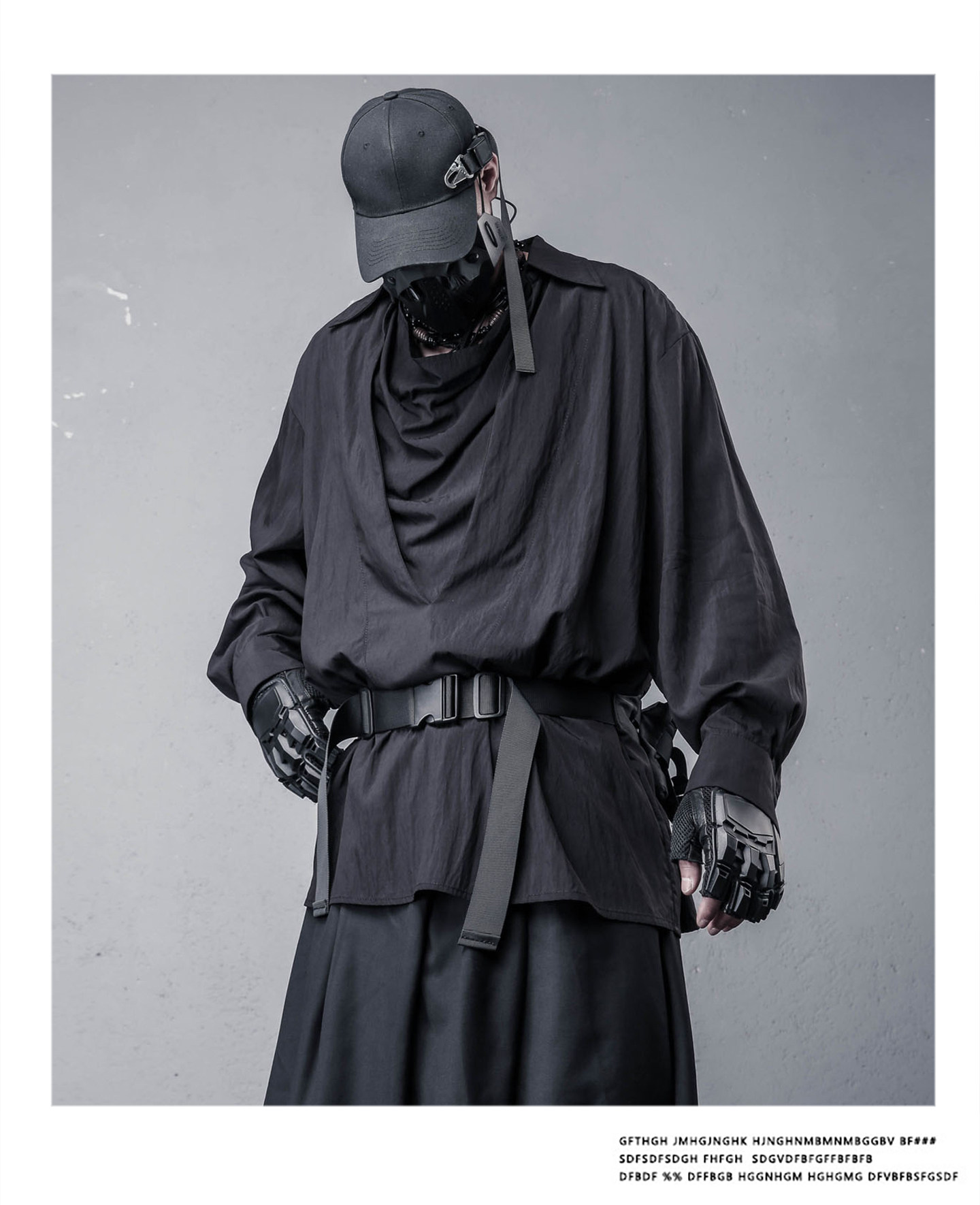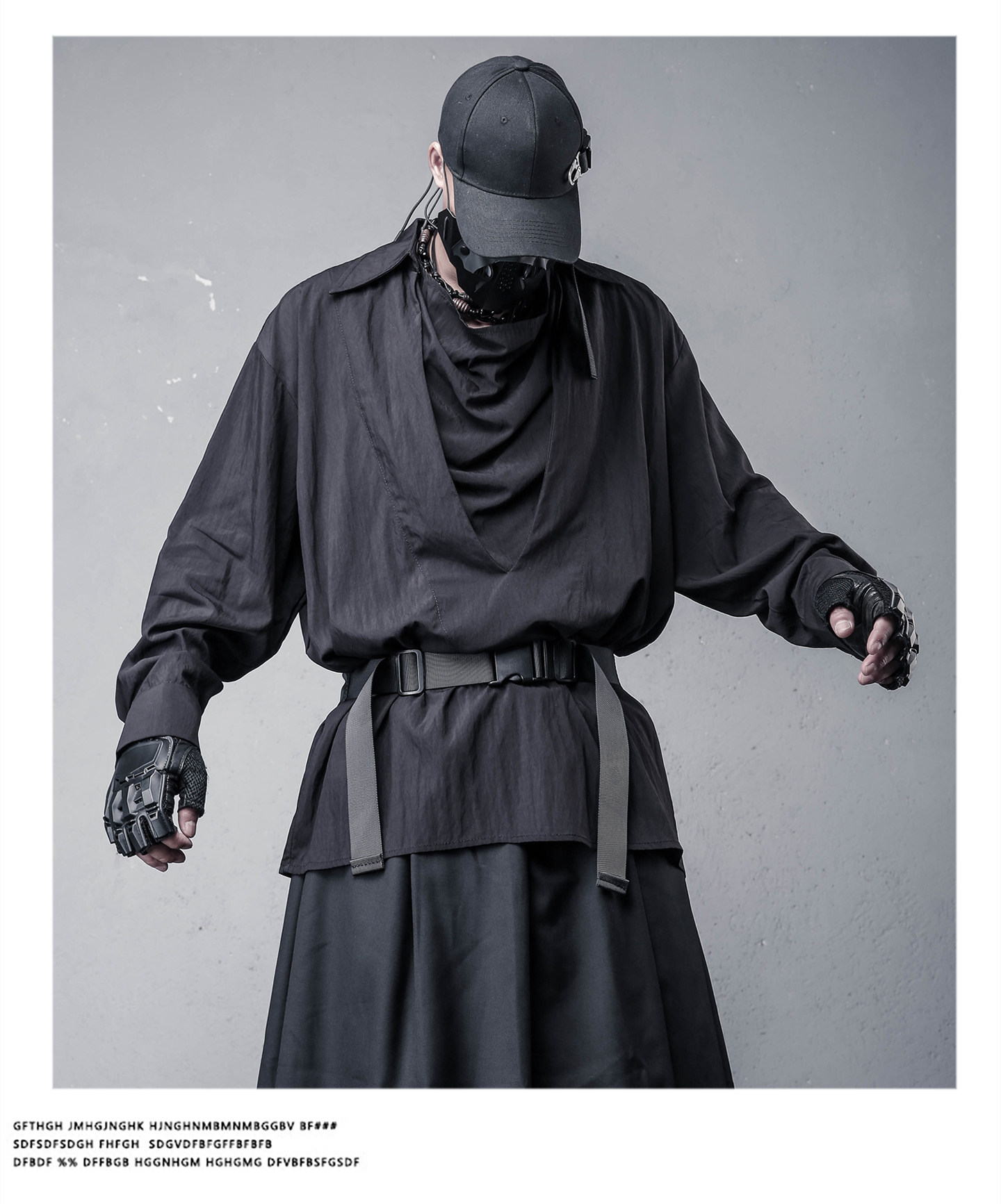 Draped High-Neck Fake Layered Long Sleeve Shirt & Functional Multi-Pocket Waist Bag WN22458