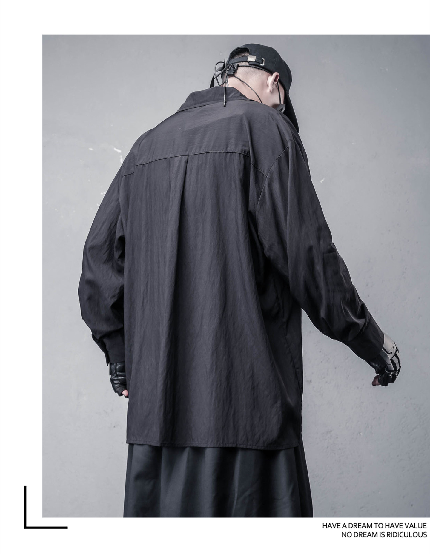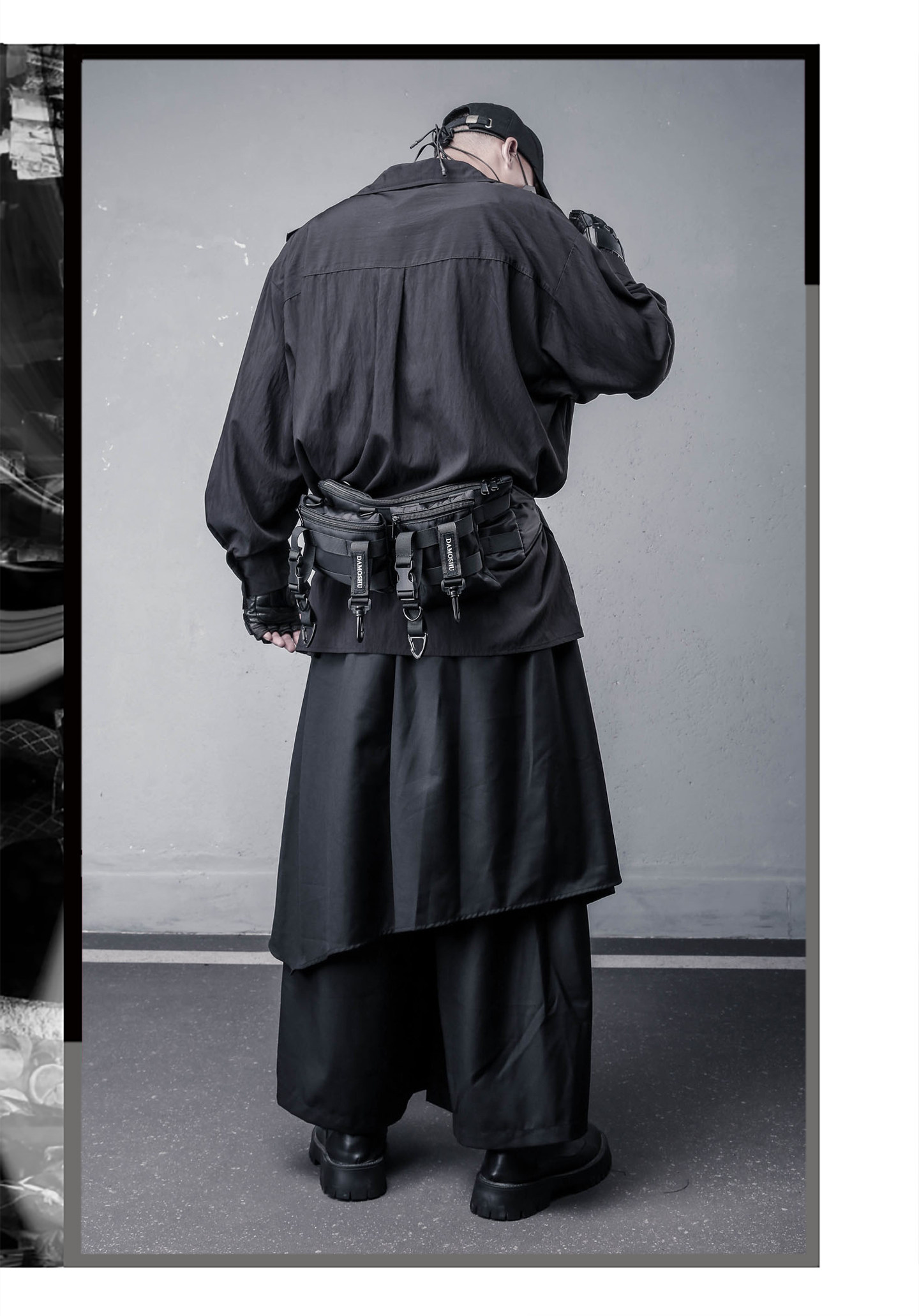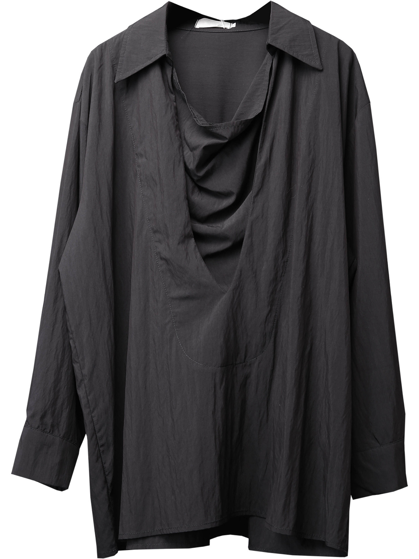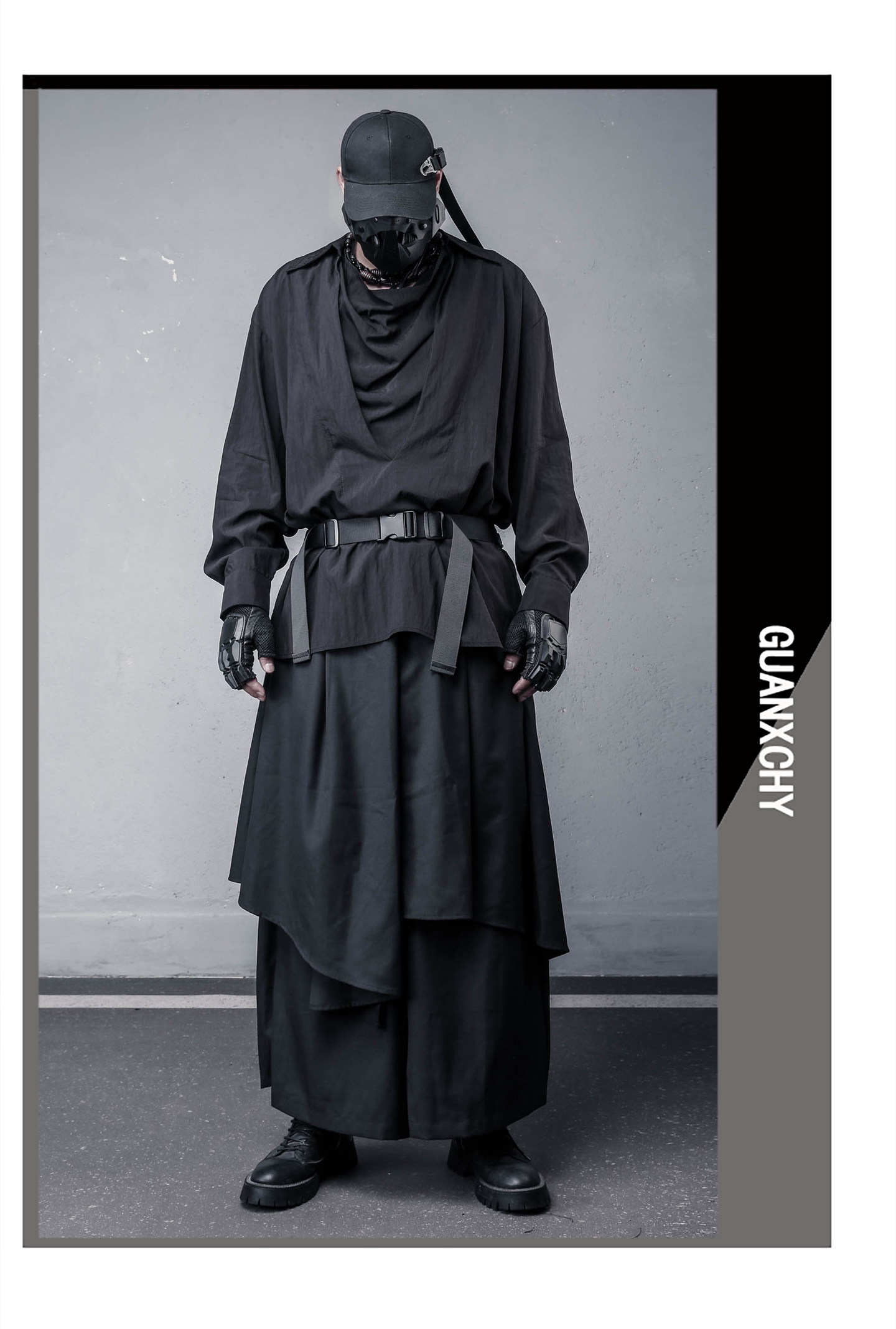 Draped High-Neck Fake Layered Long Sleeve Shirt & Functional Multi-Pocket Waist Bag WN22458