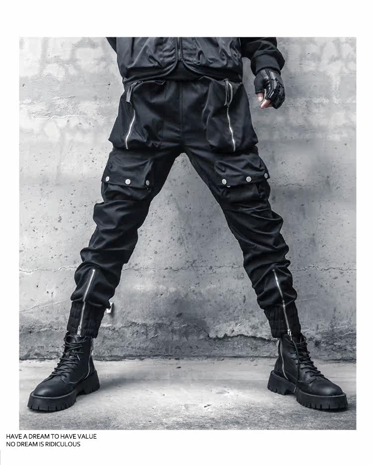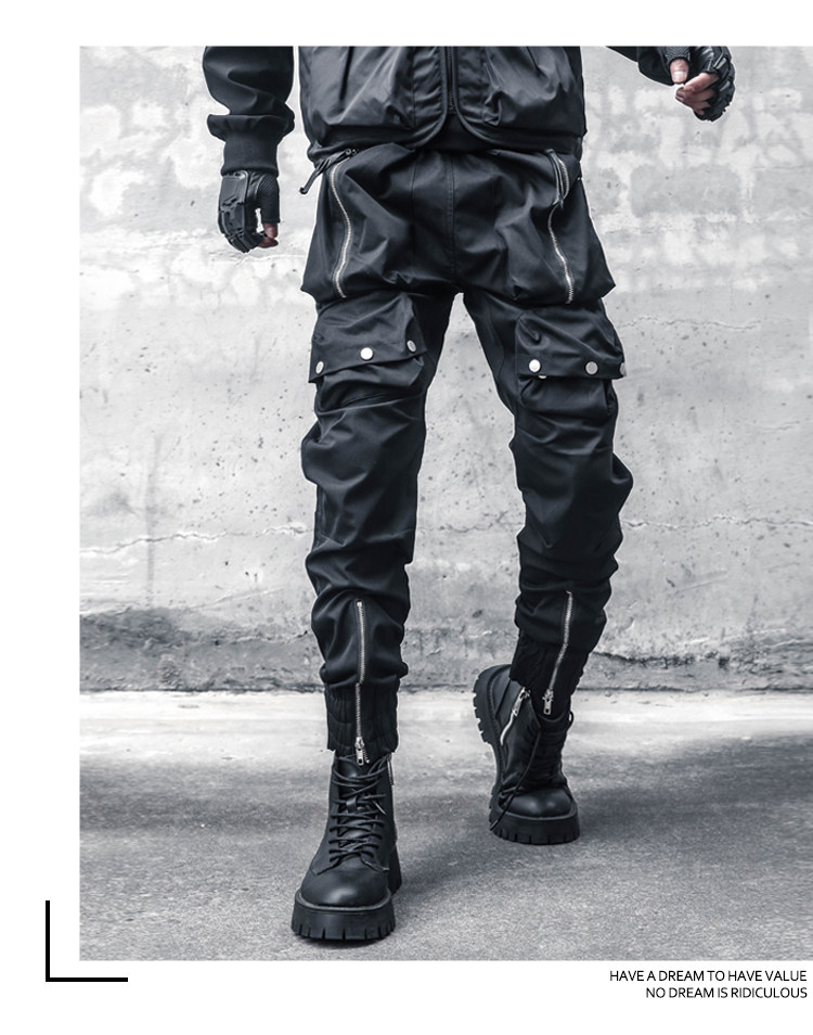 Functional Multi-Pocket Zipper Cuffed Cargo Pants WN22488