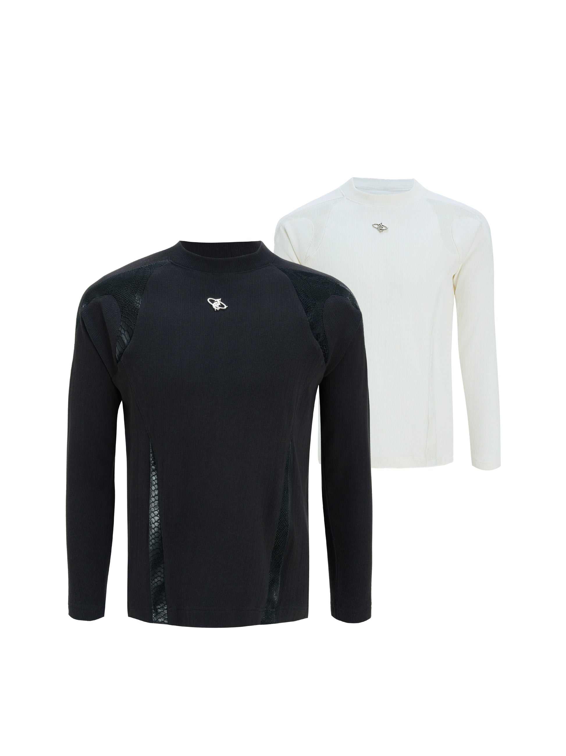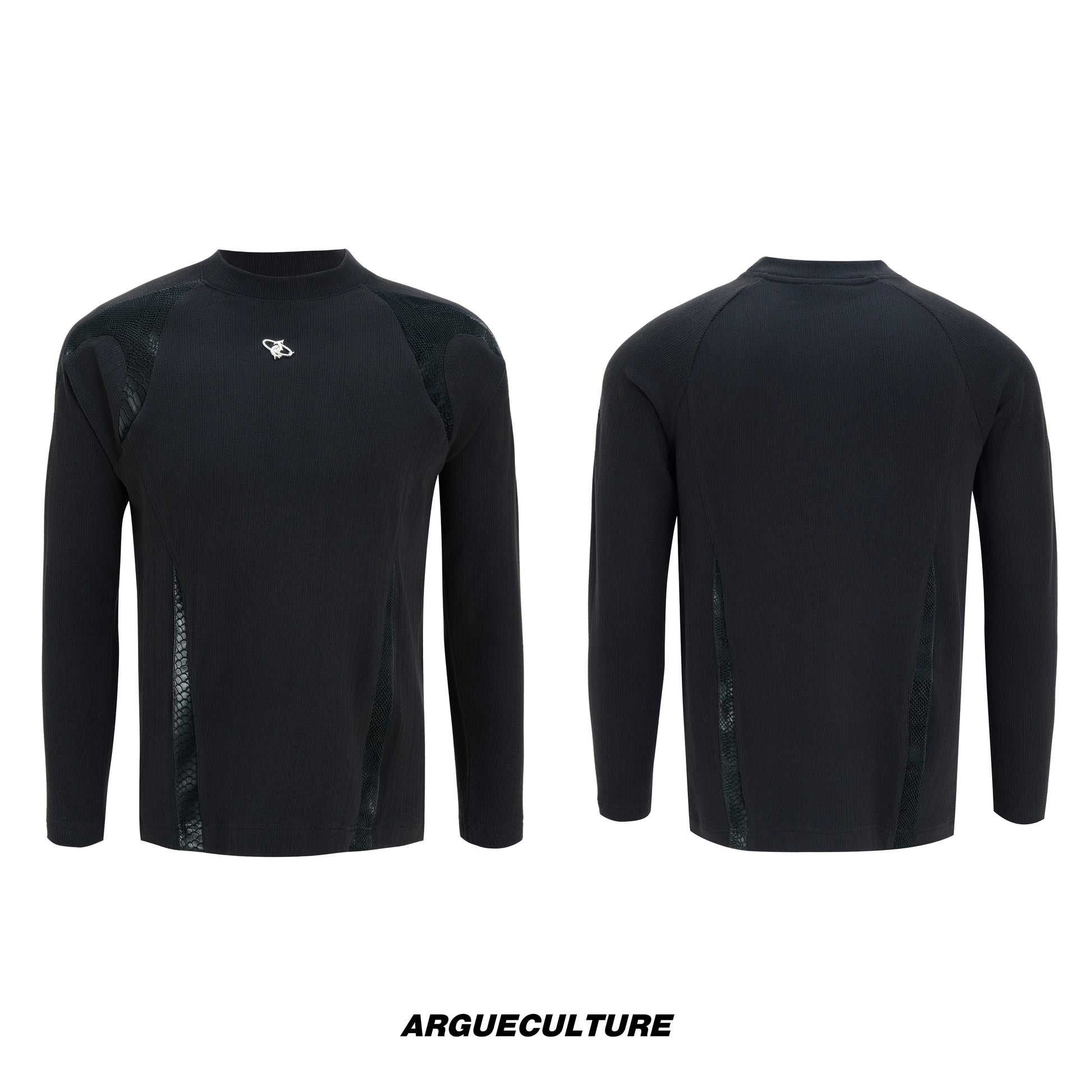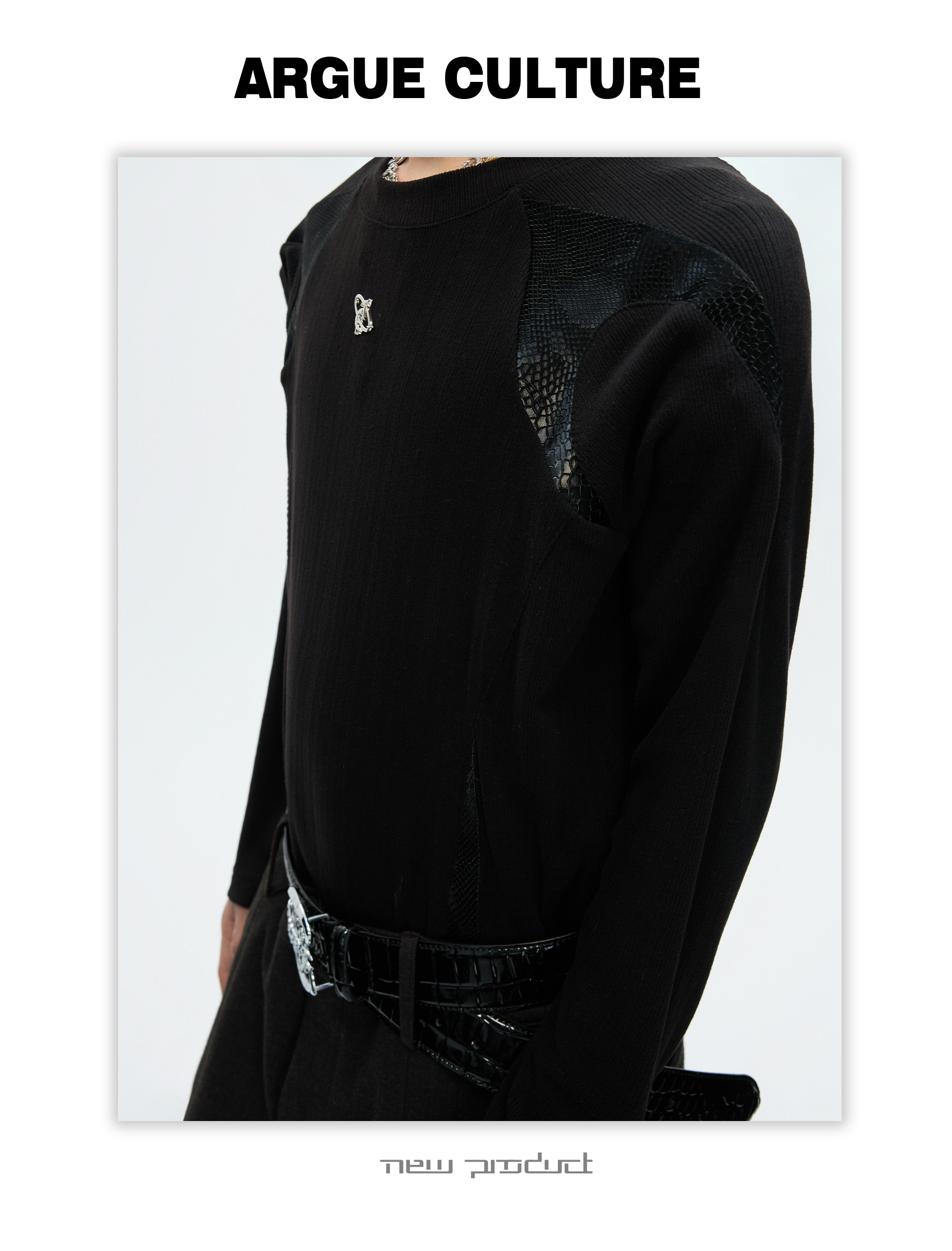 Splice PU Leather Ribbed Thermal Long Sleeve T-Shirt WN22617