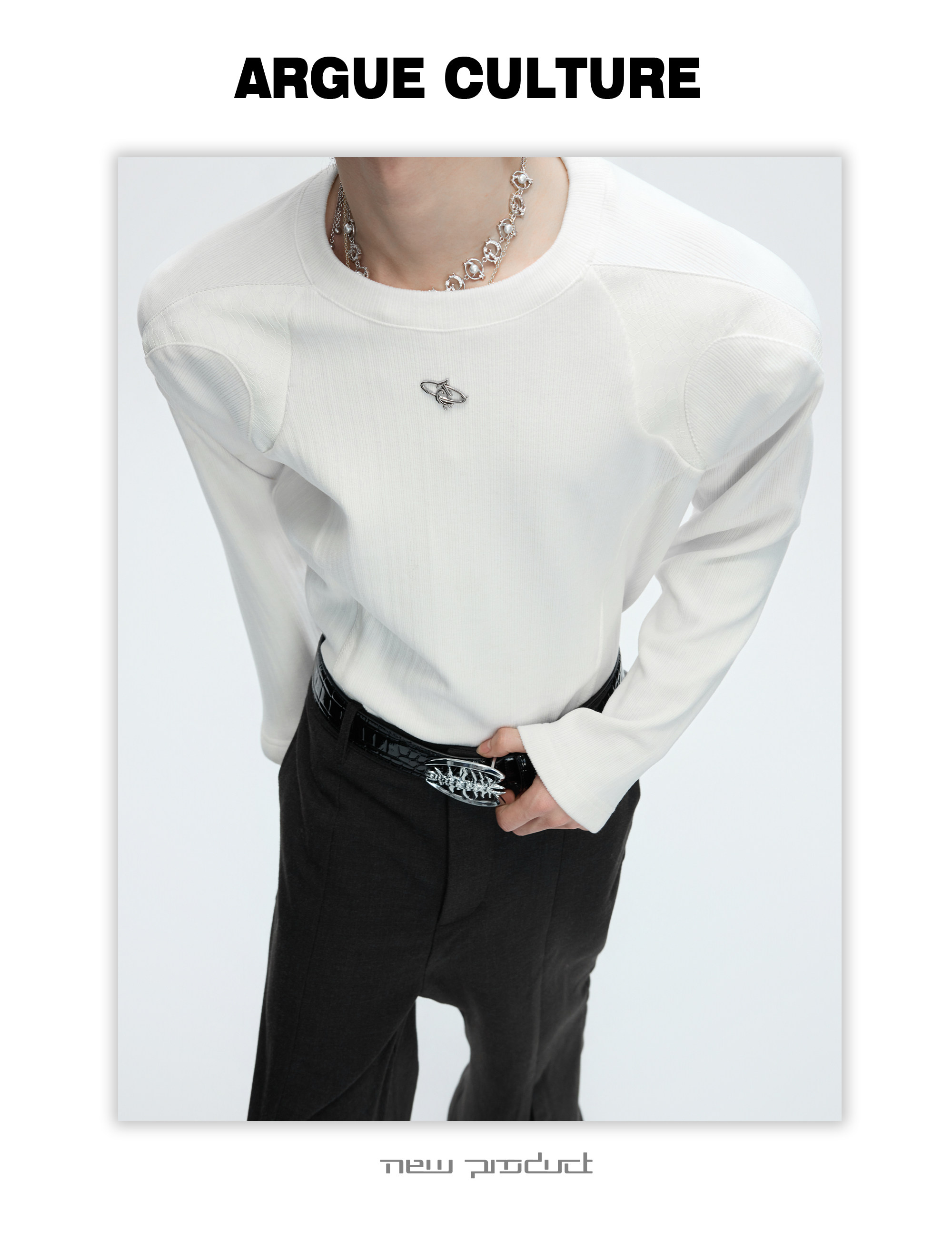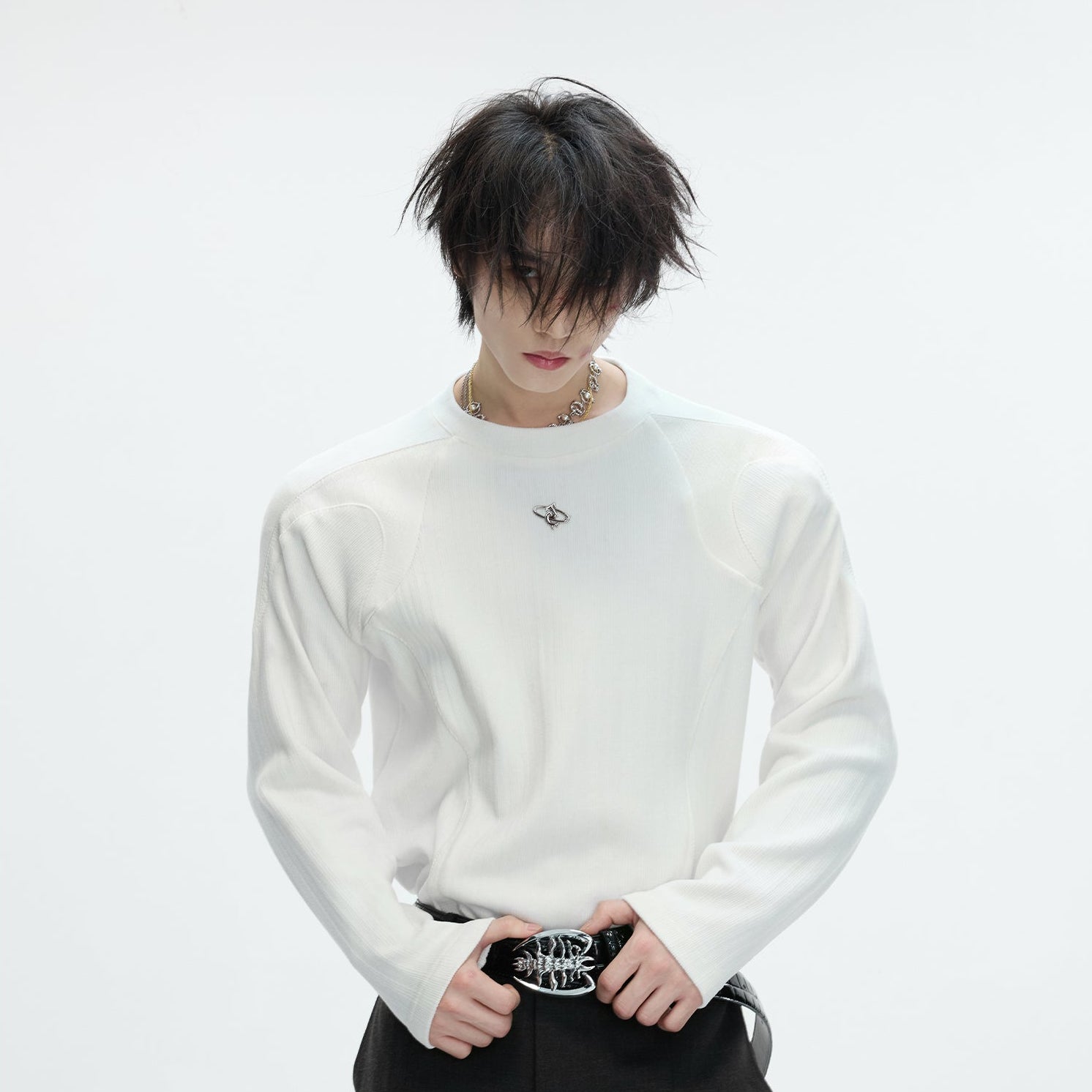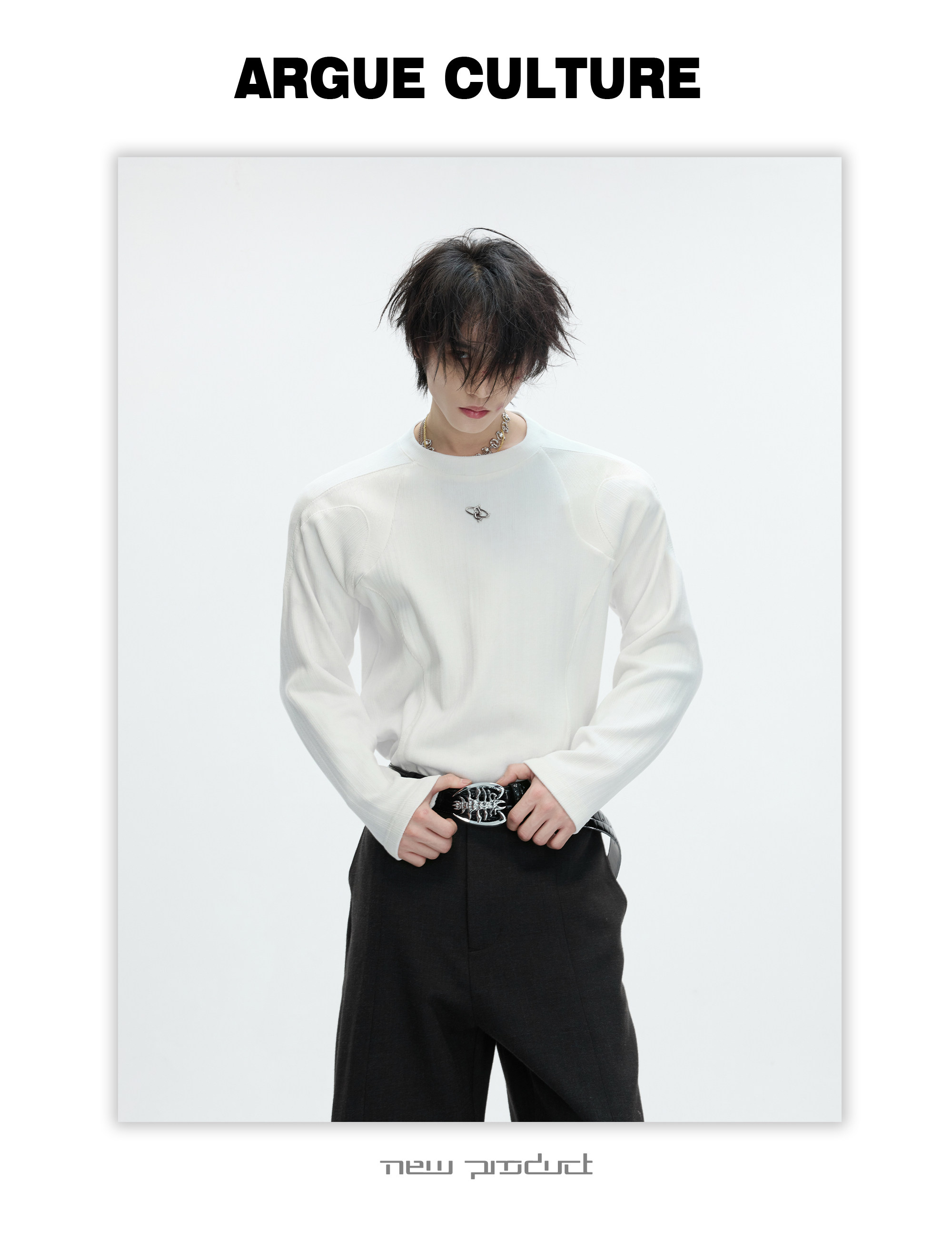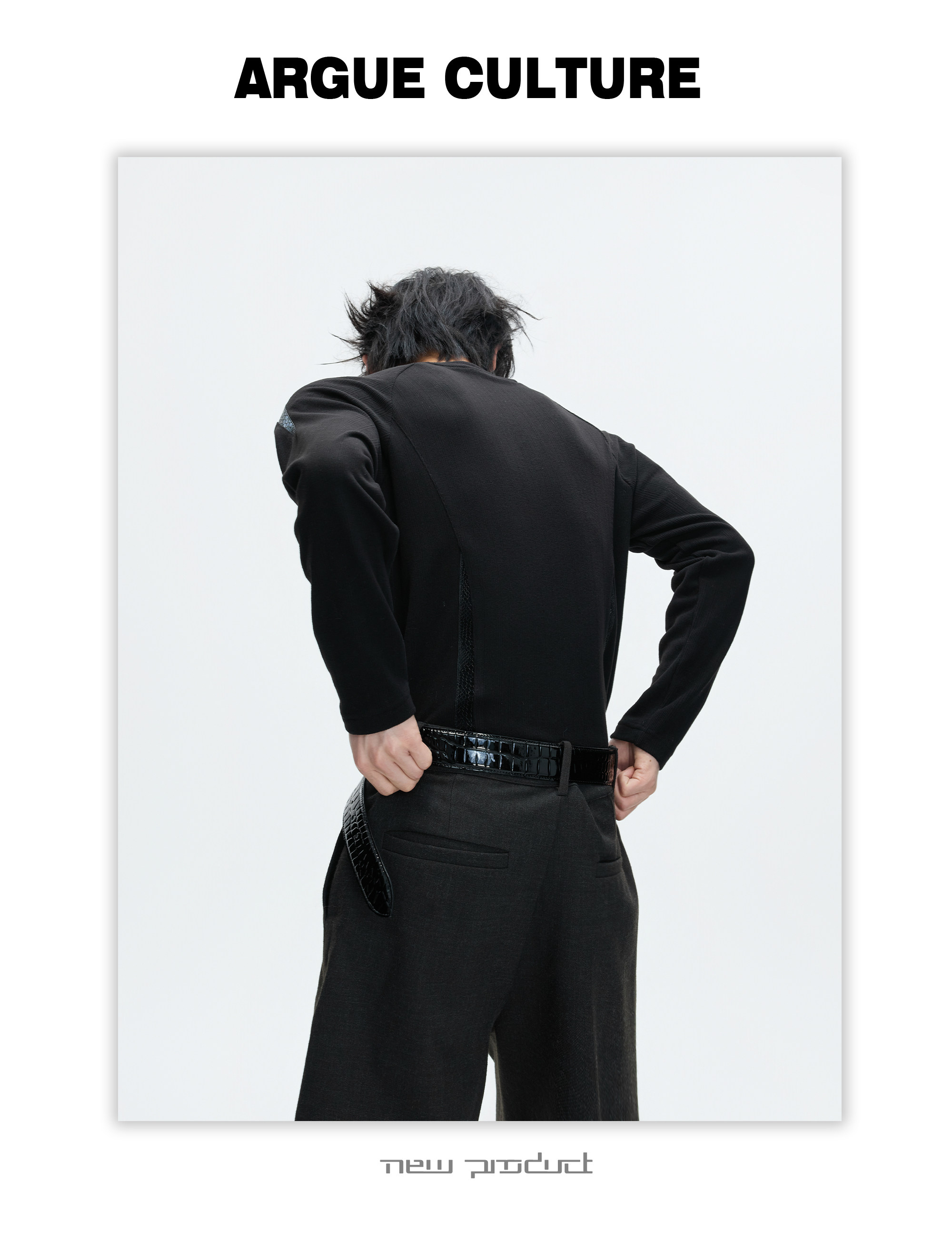 Splice PU Leather Ribbed Thermal Long Sleeve T-Shirt WN22617