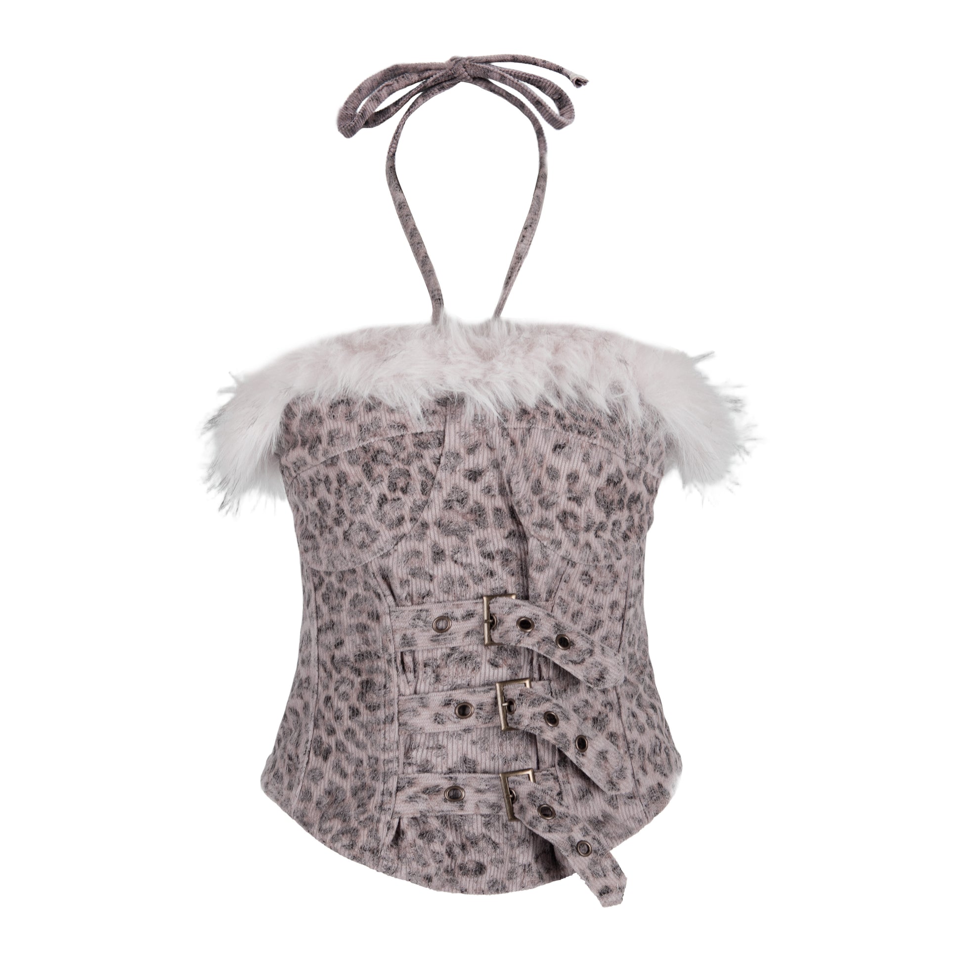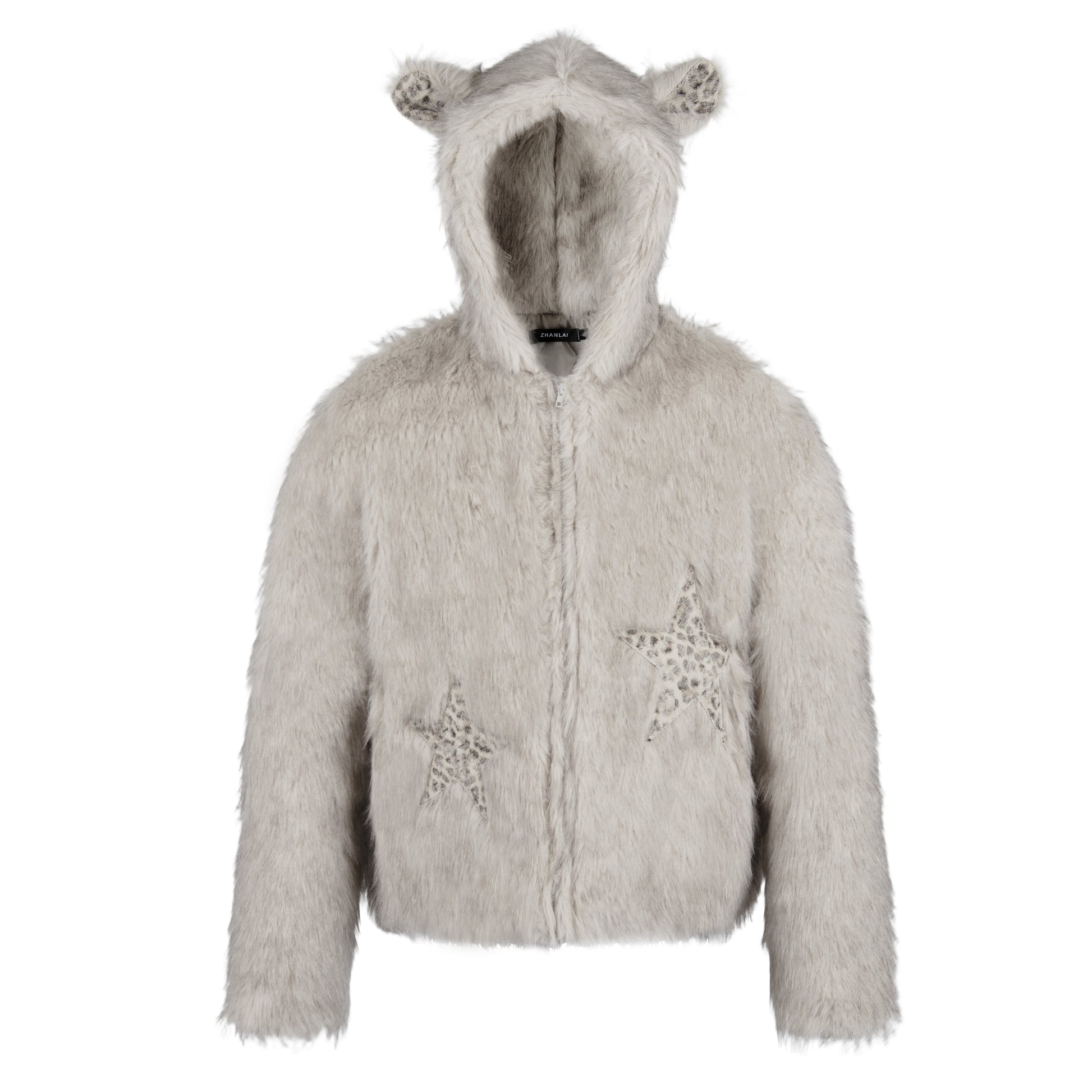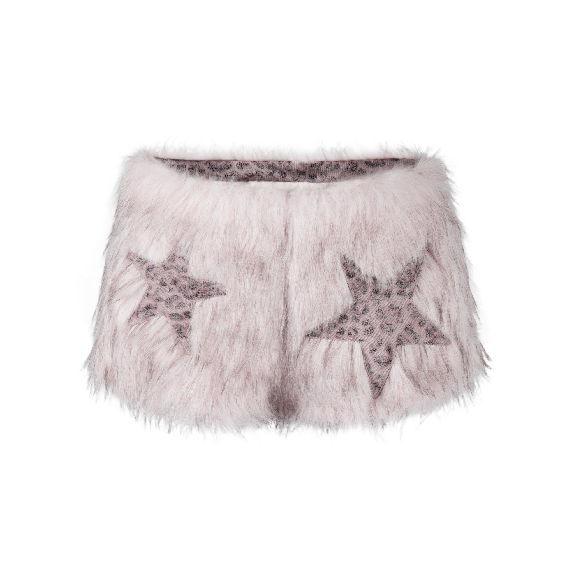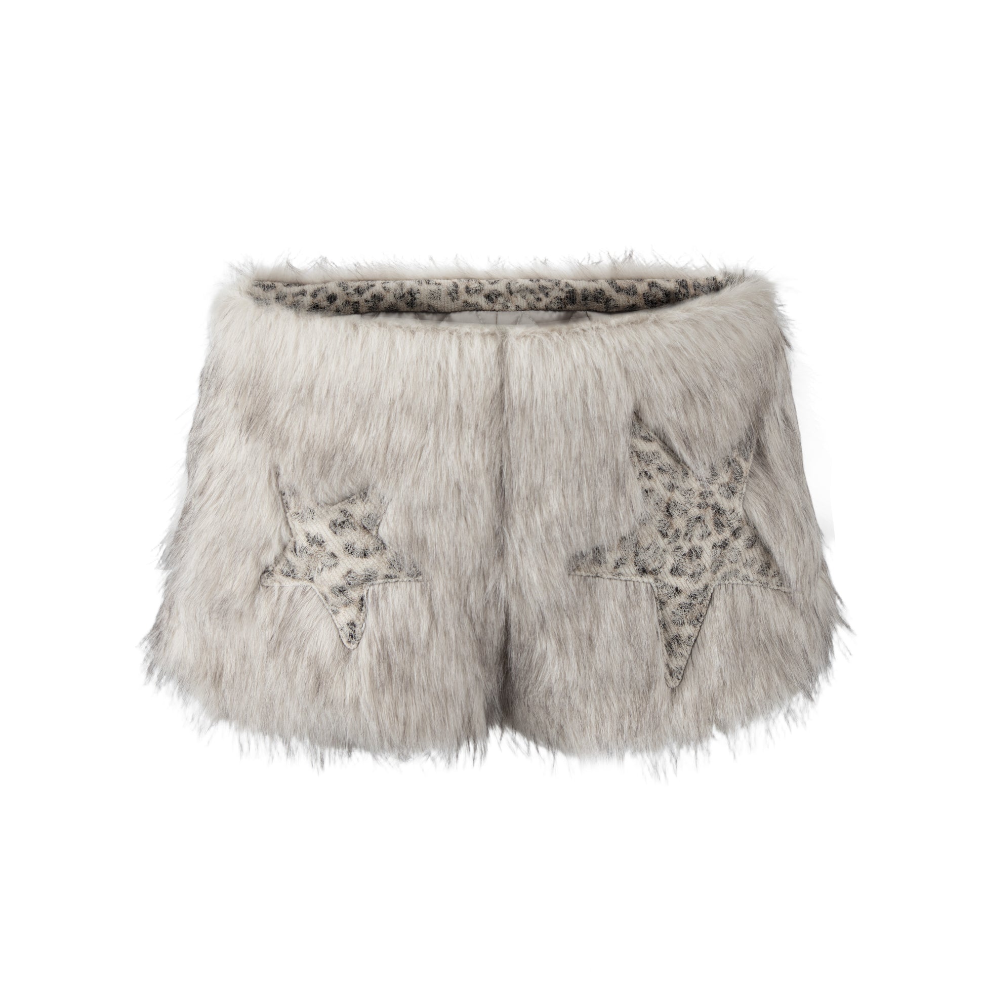 Fake Fur Ear Detail Star Hooded Puffer Jacket & Leopard Print Fake Fur Trim Halter Tank Top & Fake Fur Star Short Pants Setup WN22785
