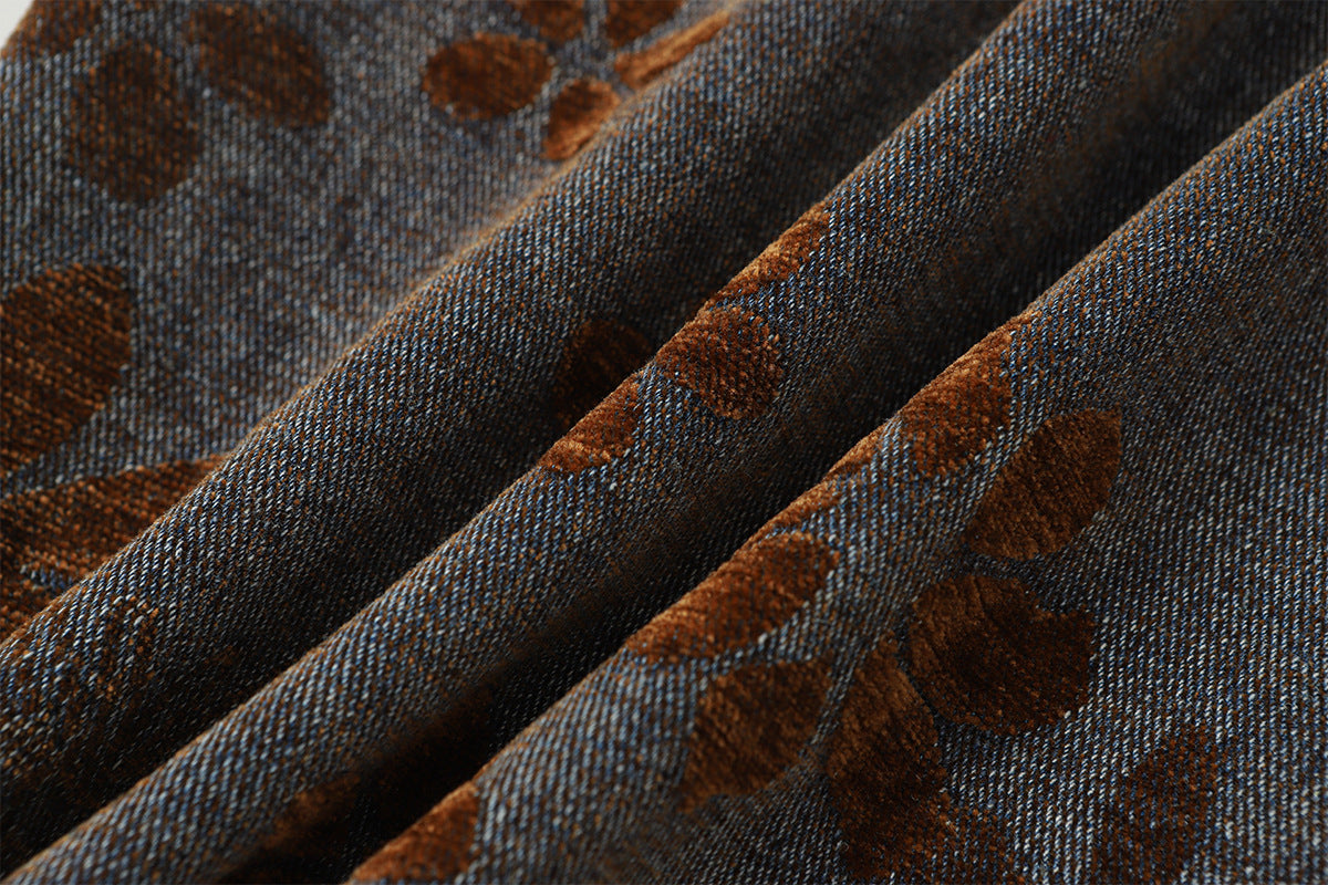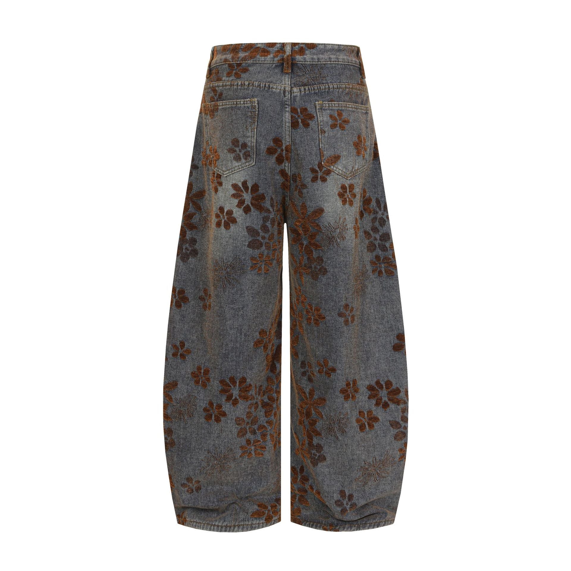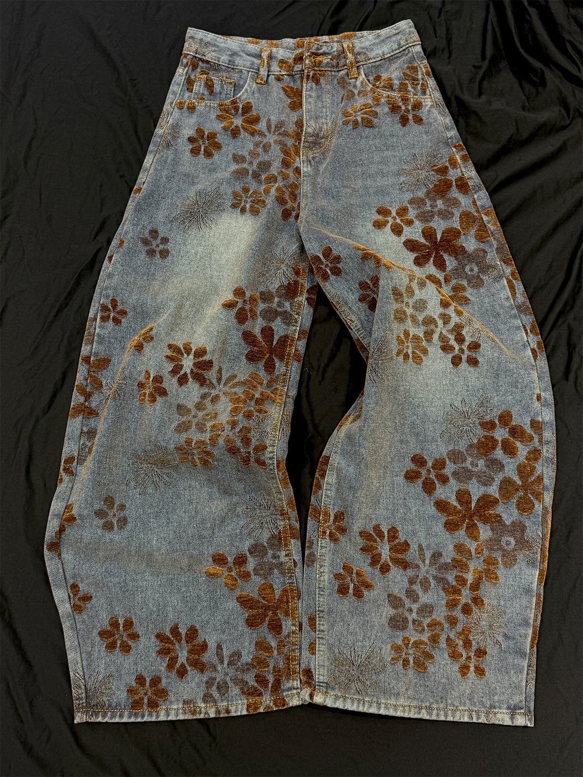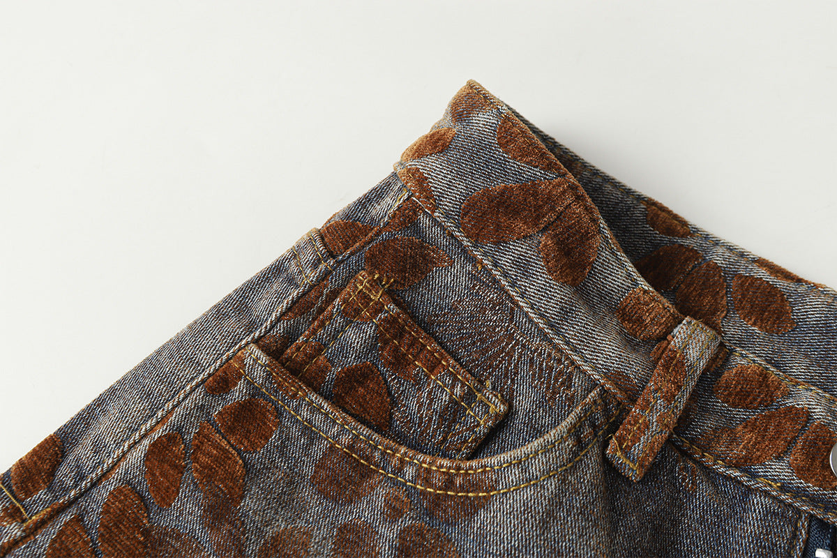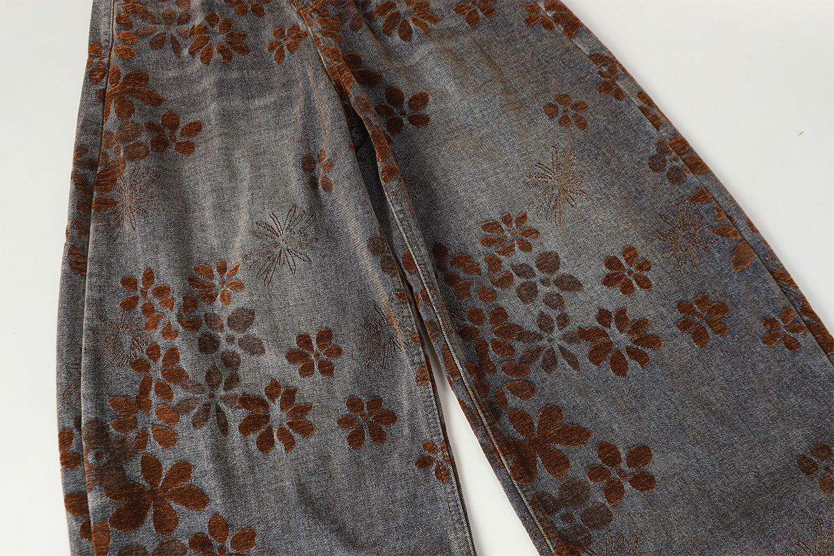 Flocked Wide Leg Curved Denim Jeans WN23031