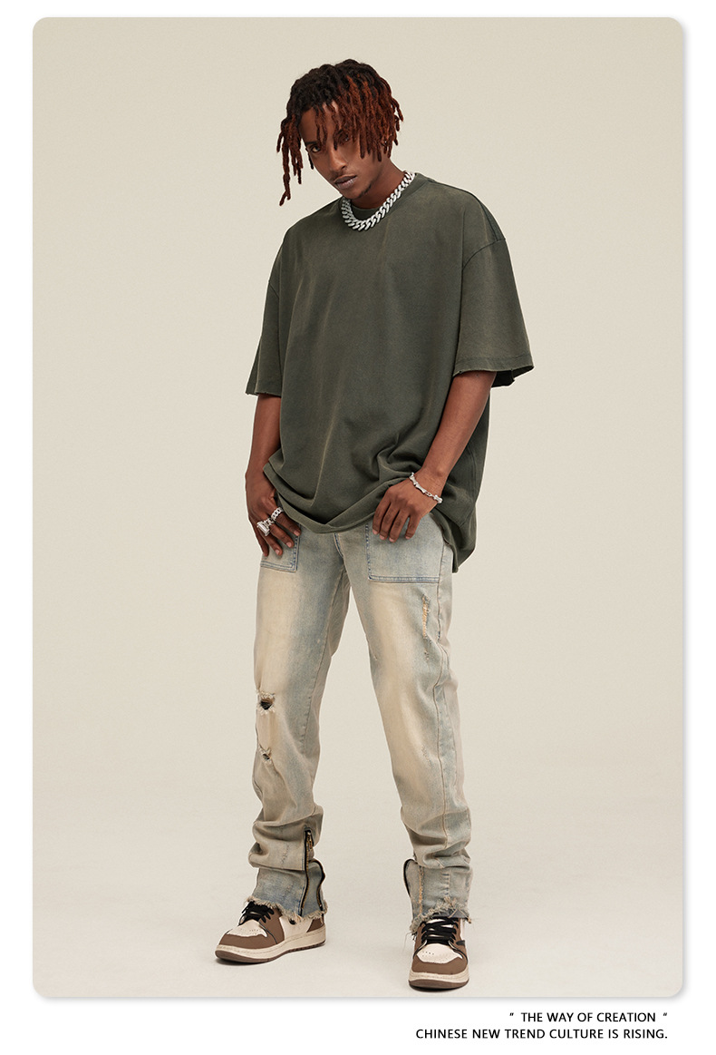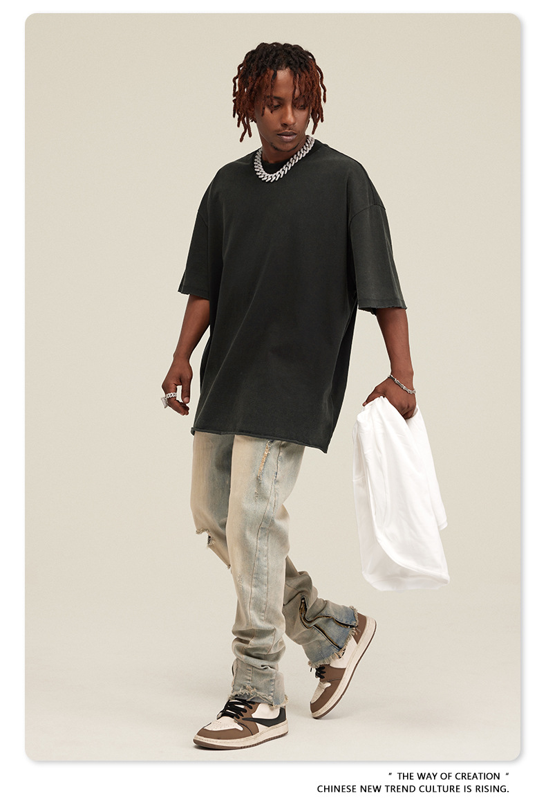 Washed Damage Oversize Short Sleeve T-Shirt WN6068