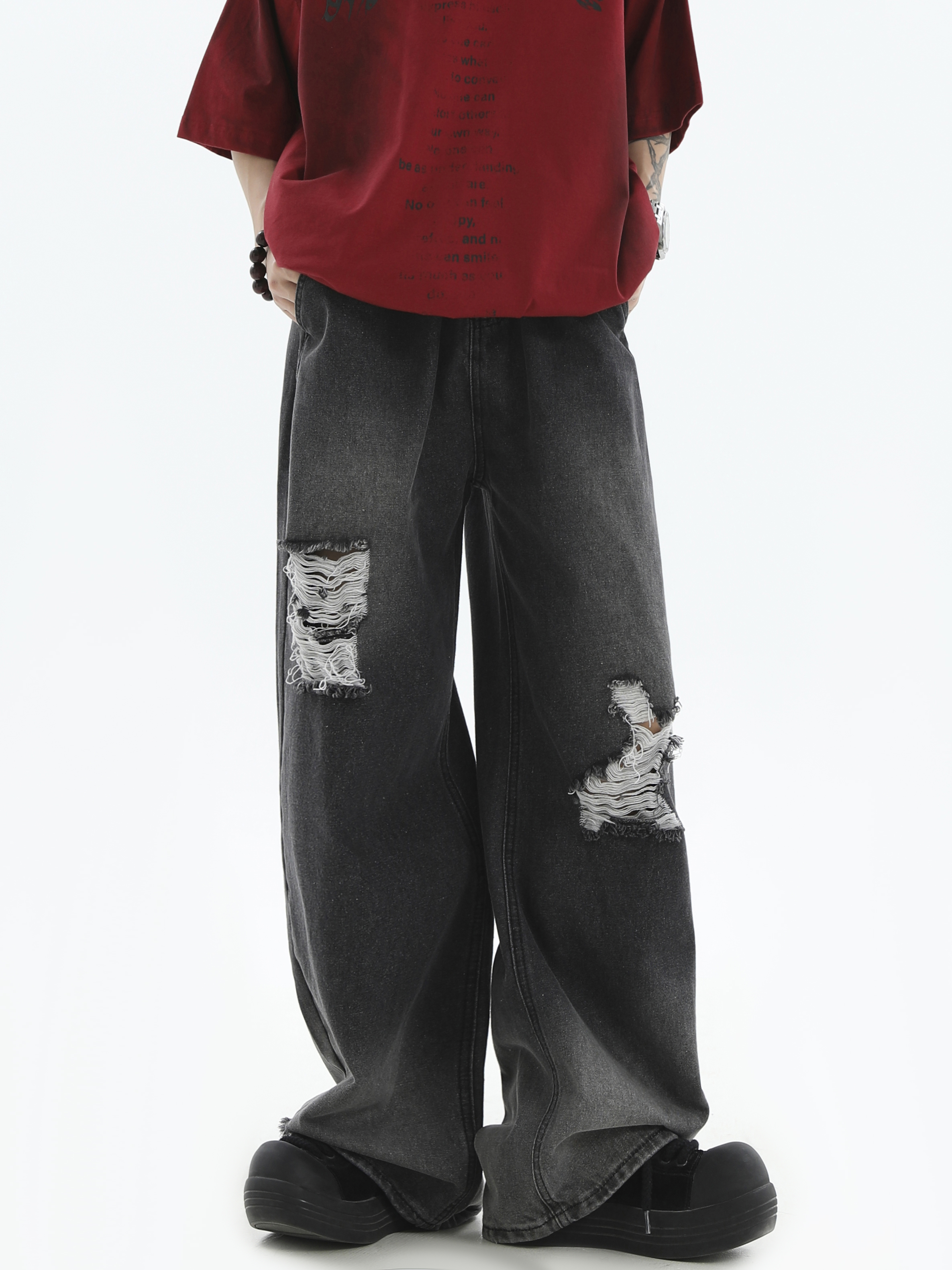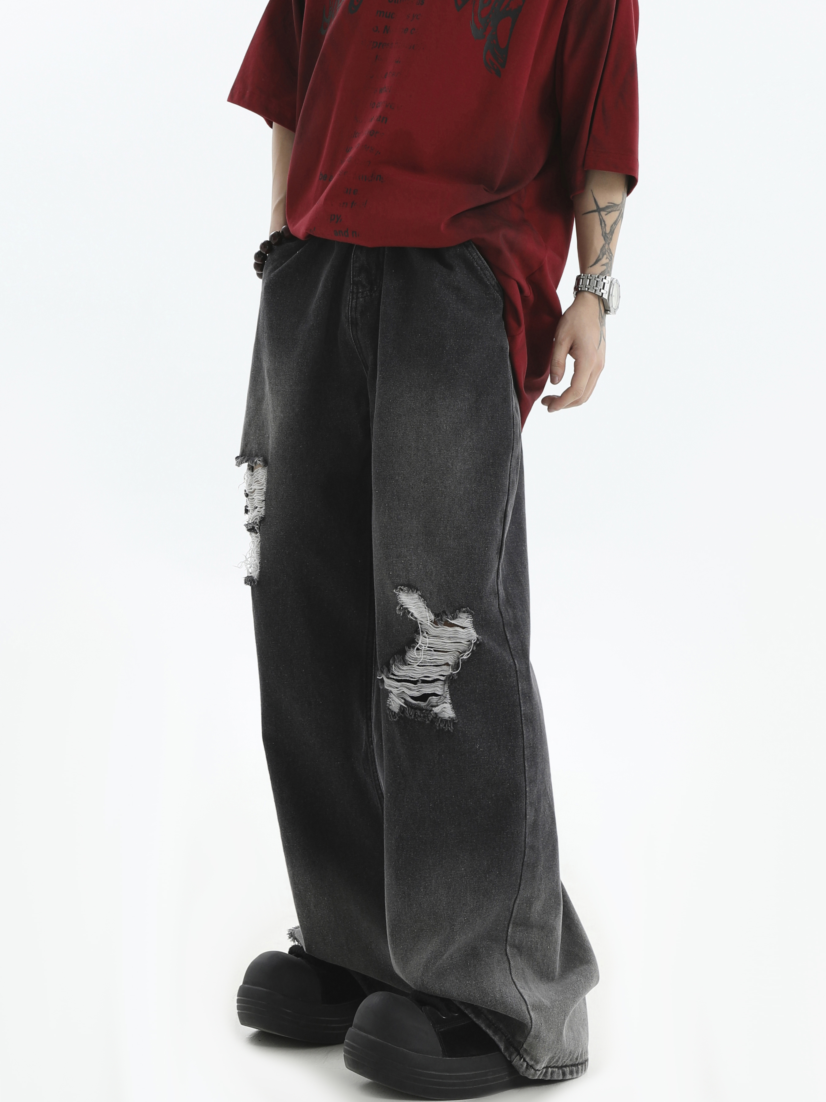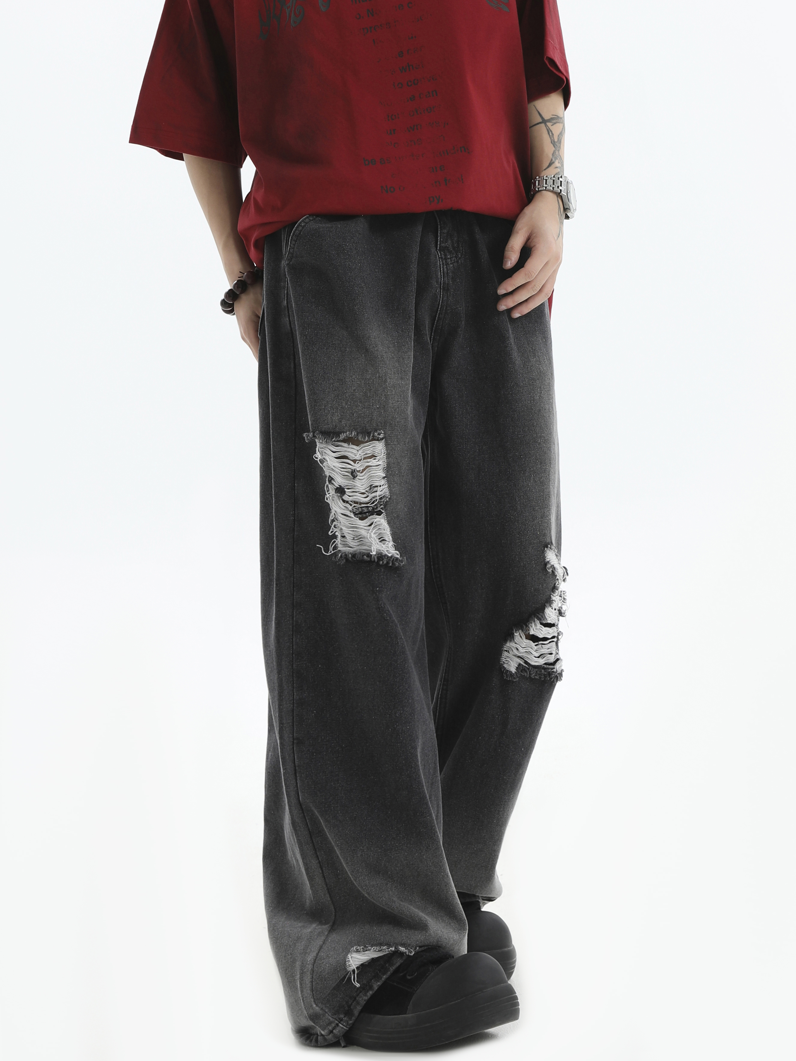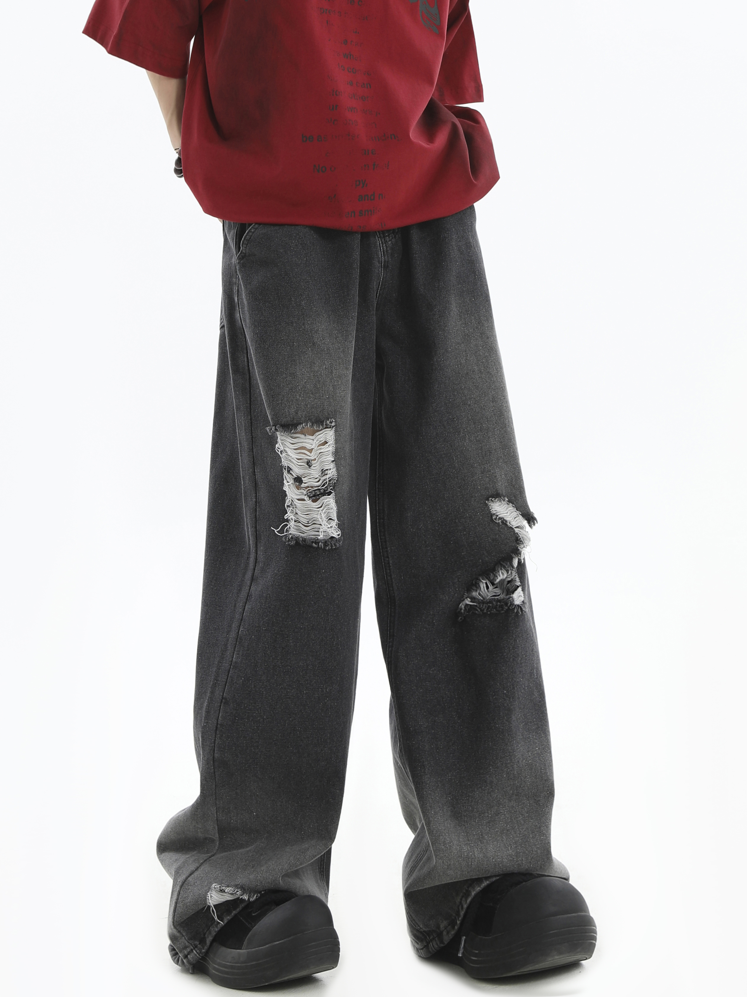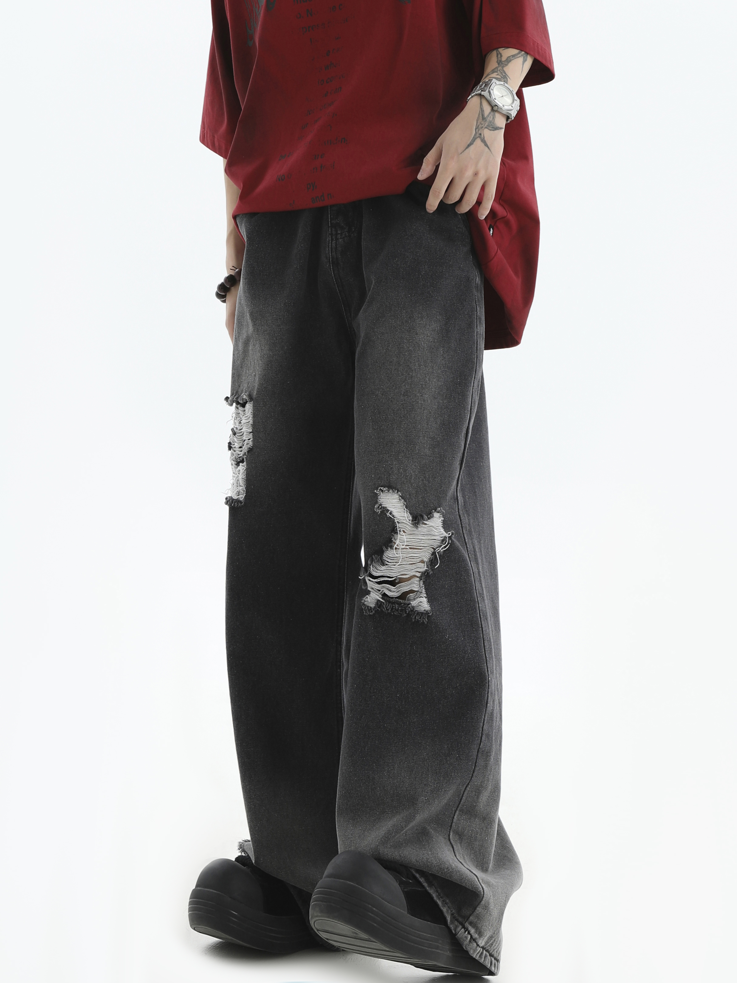 Damage Wide-Leg Straight Denim Jeans WN7176