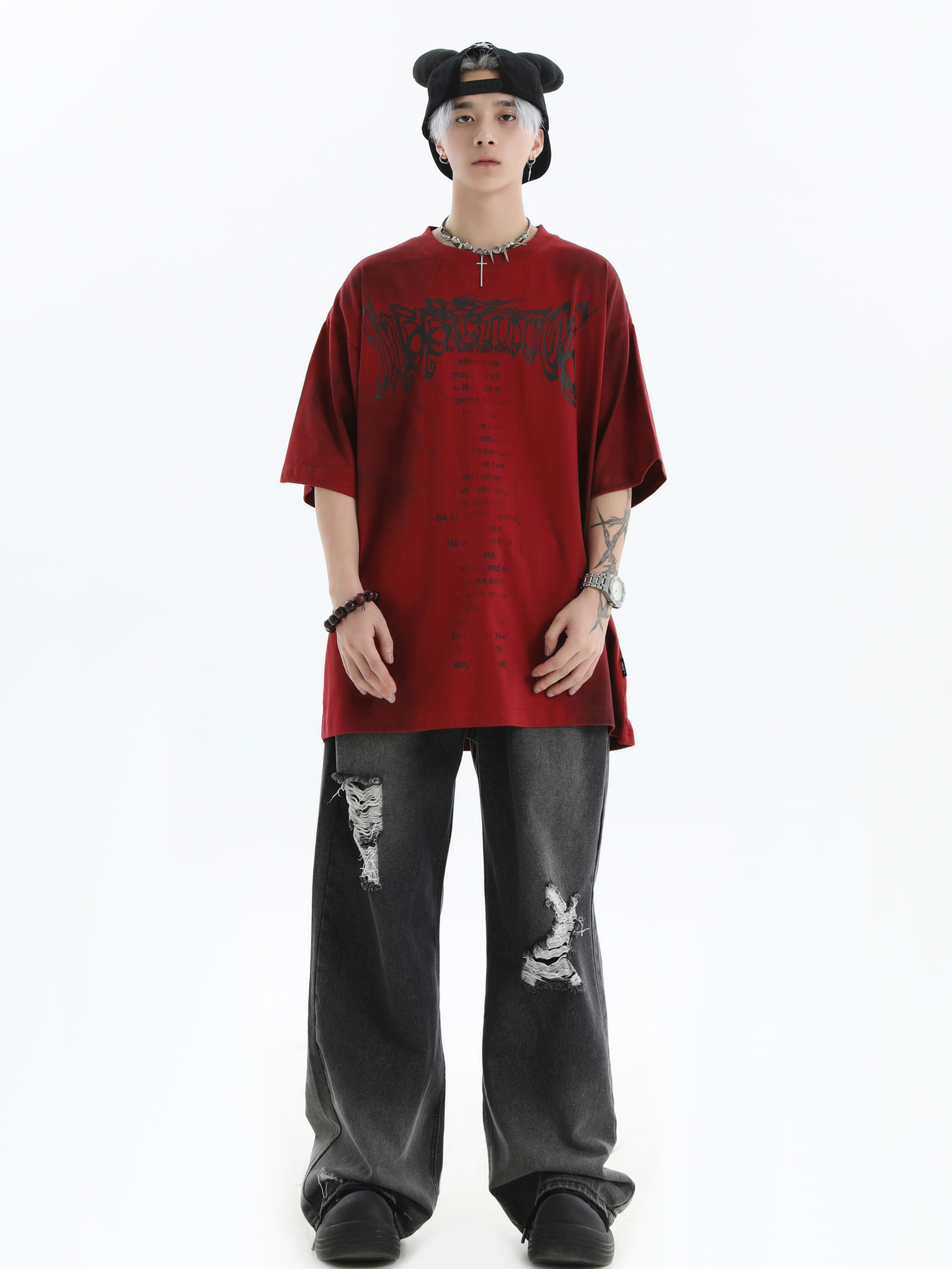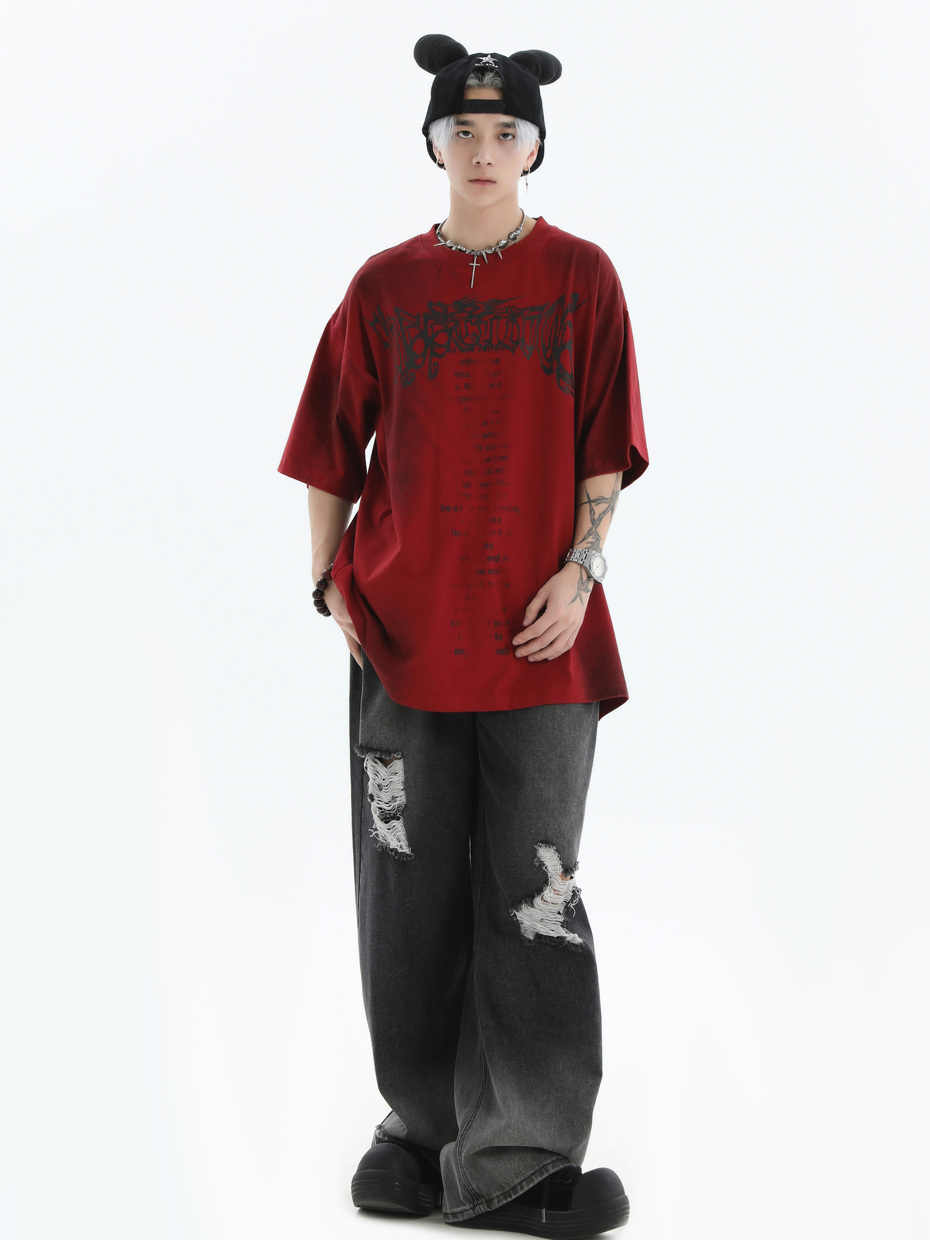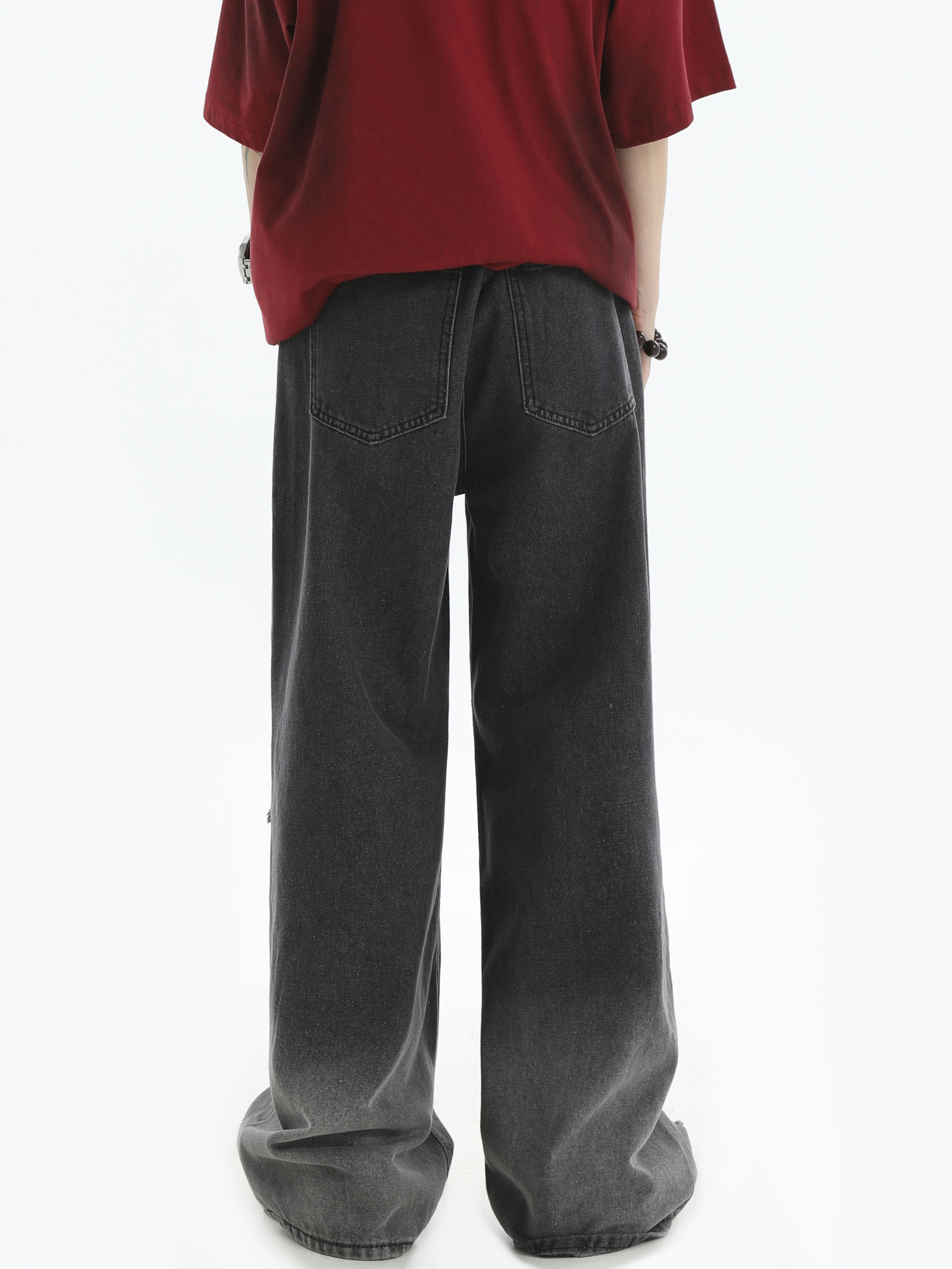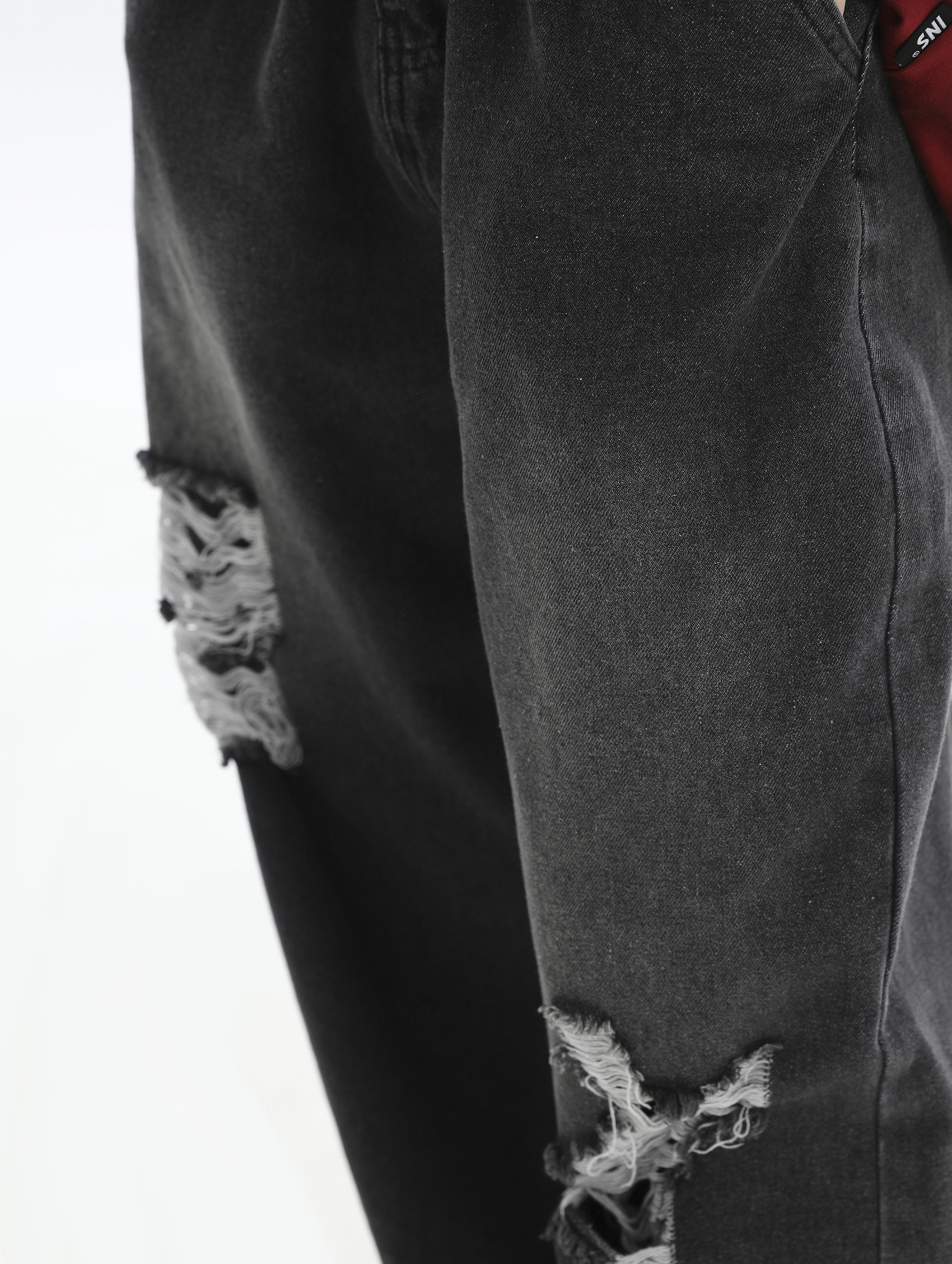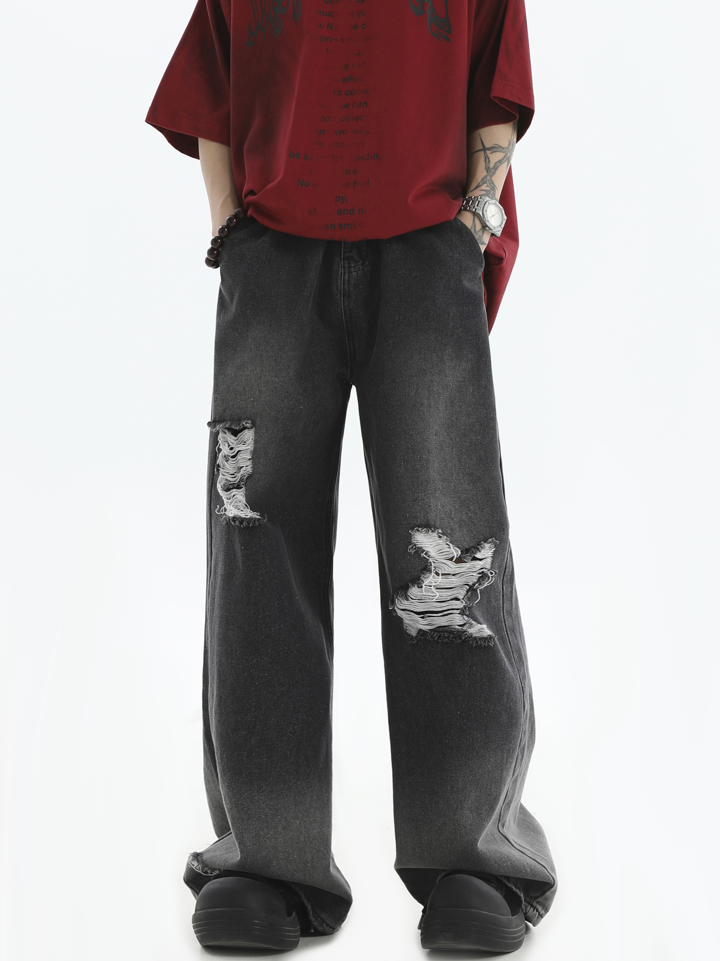 Damage Wide-Leg Straight Denim Jeans WN7176