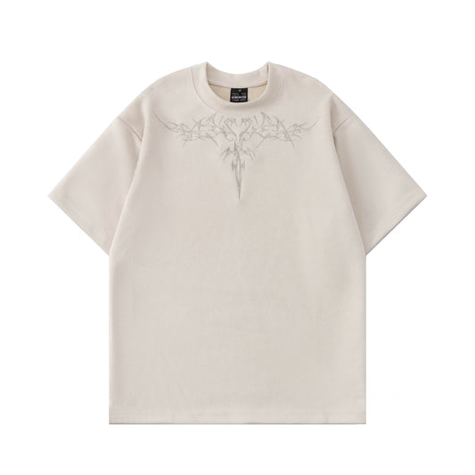 Wing Embroidery Suede Short Sleeve T-Shirt WN16189