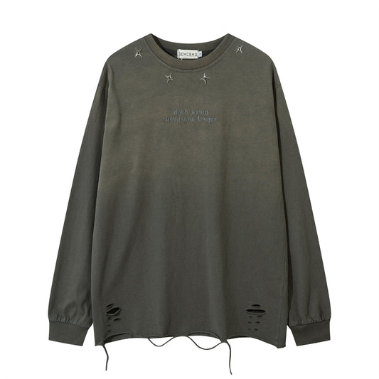 Metallic Detail Washed Gradient Long Sleeve T-Shirt WN11579