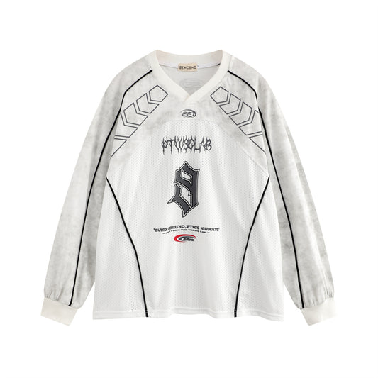Patchwork Badge Graphic Long Sleeve T-Shirt WN11962