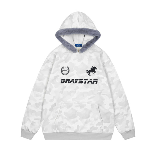 Camouflage Letter Embroidery Oversize Hoodie WN11519